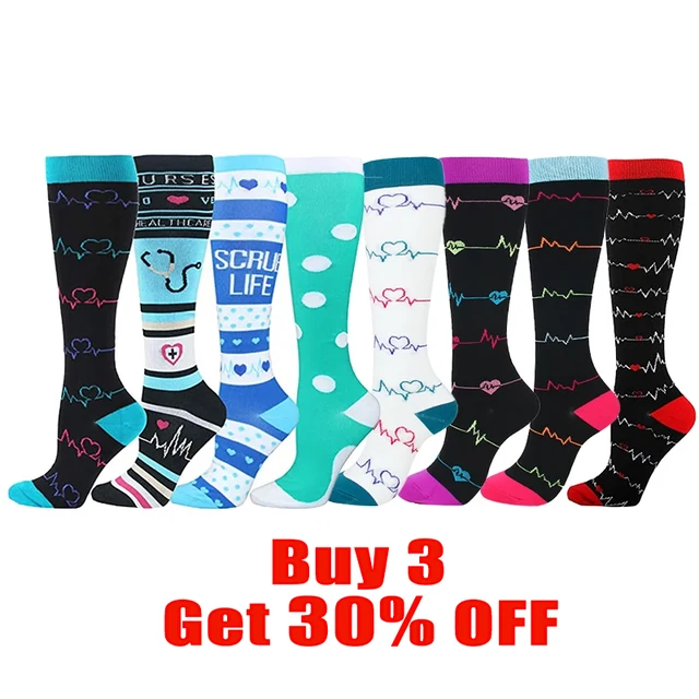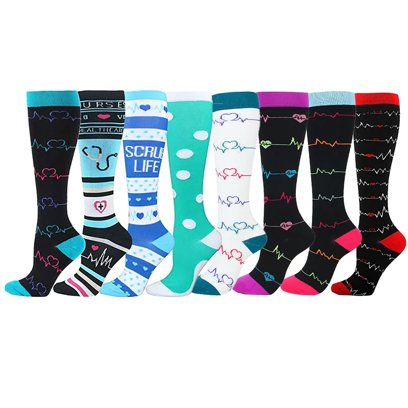 Men Women ECG Wave Compression Sport Socks Running Socks Compress Stockings Pressure Nylon Long Varicose