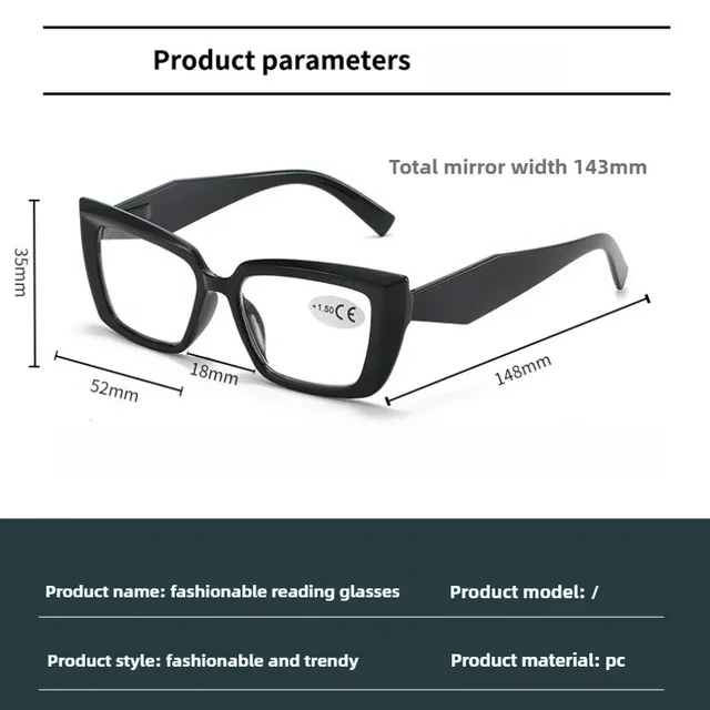 2025 New Style Reading Glasses for Women Fashion Men Oversized Square Prescription Glasses Large Frame Anti-blue Presbyopia