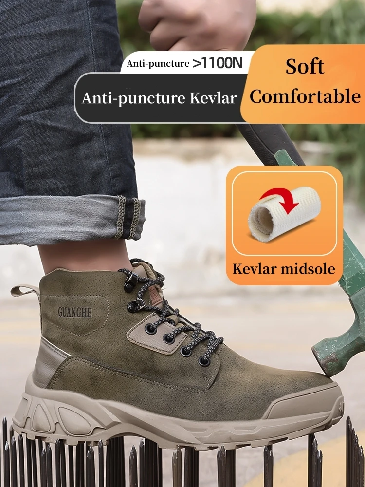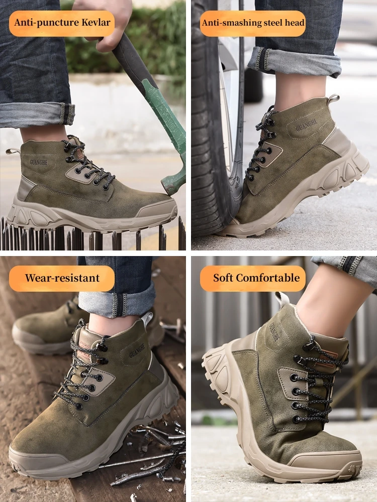 Men Work Safety Boots Steel Toe Shoes Protective Work Shoes Autumn Winter Anti-smash Anti-puncture Industrial Safety Shoes