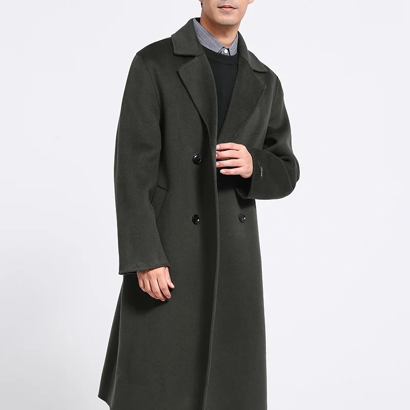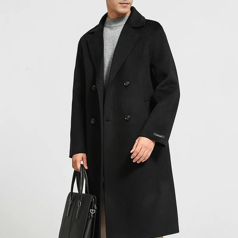 Men’s 100% cashmere thick double-sided extended coat, classic and versatile fashion for business