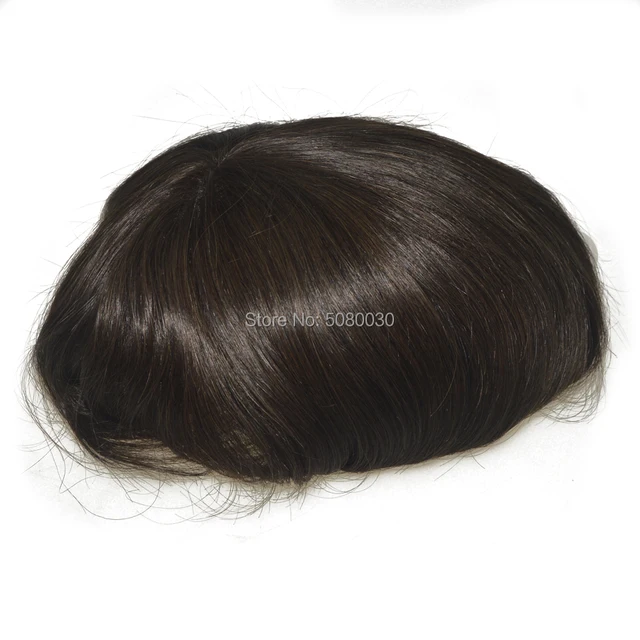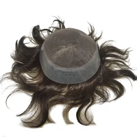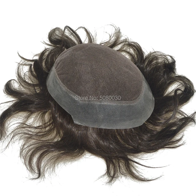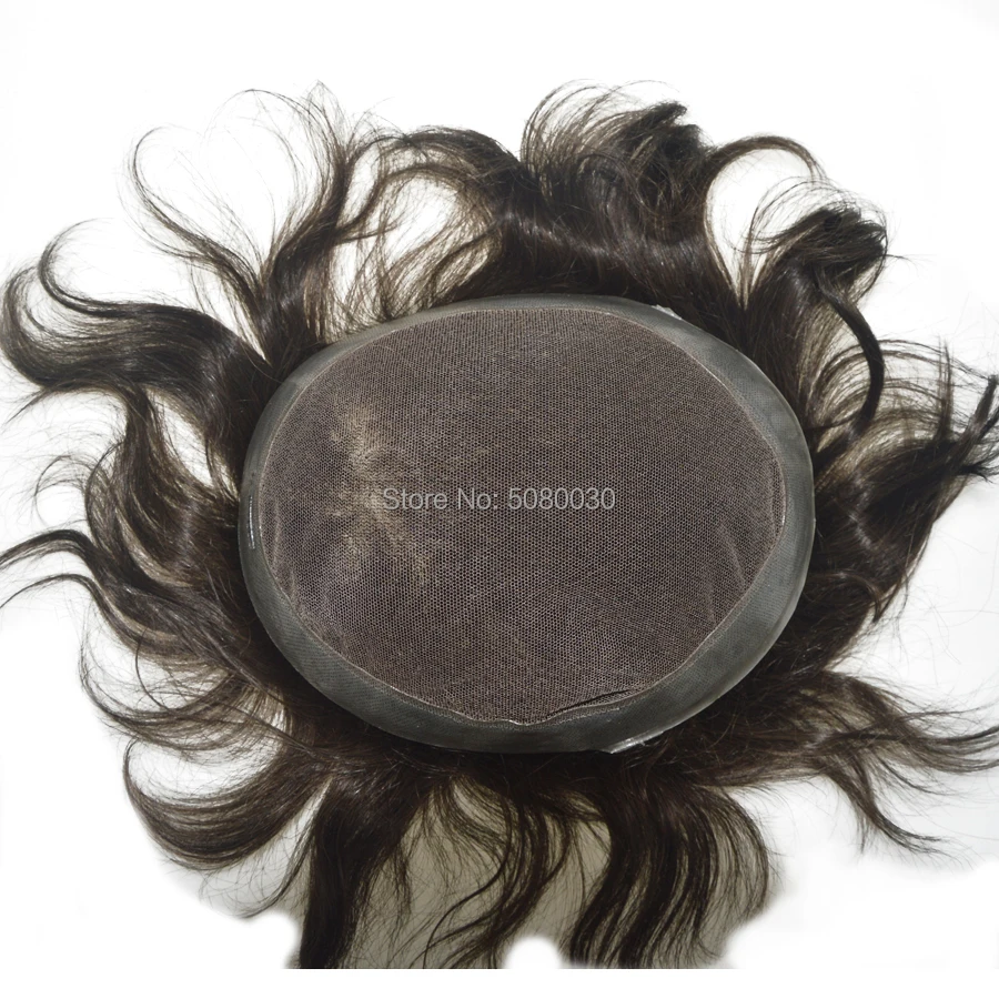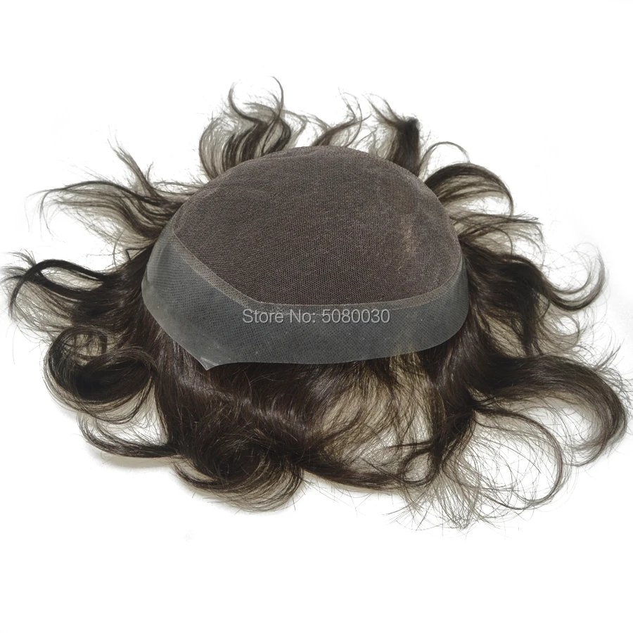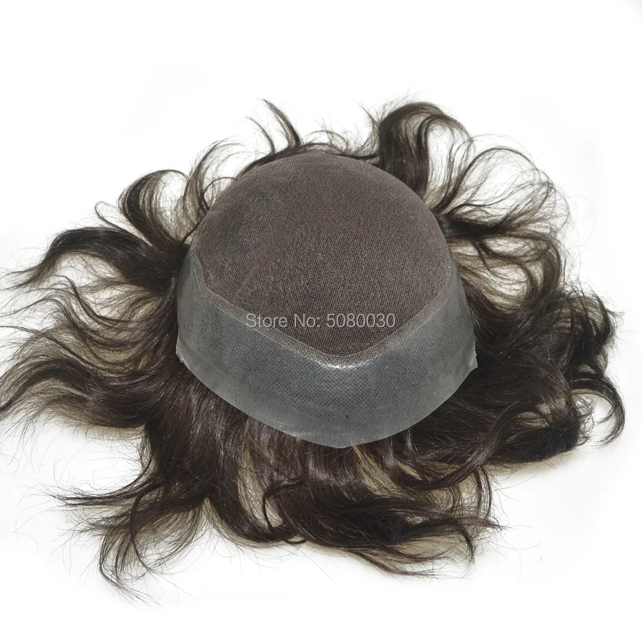 Men's 100% Human India Hair Toupee 8x10 Inch Top Swiss Lace Front with Natural Thin Skin 6 Inch Length Hair Base Stock