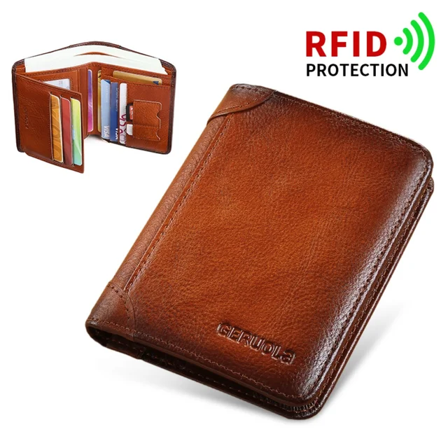 Featuring anti-theft RFID blocking technology, this leather wallet ensures your information remains secure from electronic theft. Being made of authentic cowhide leather, this wallet will gain a more vibrant appearance as time goes on.