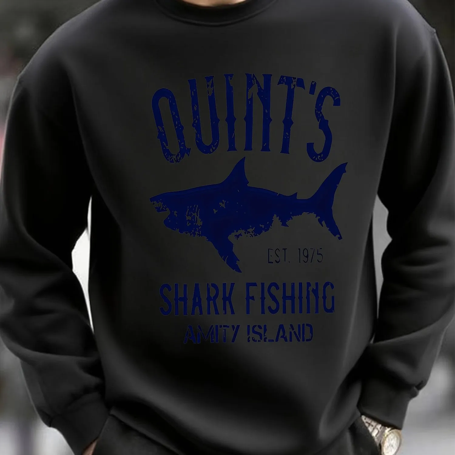 Men's Black Casual Graphic Fleece Pullover - Warm for Weekend