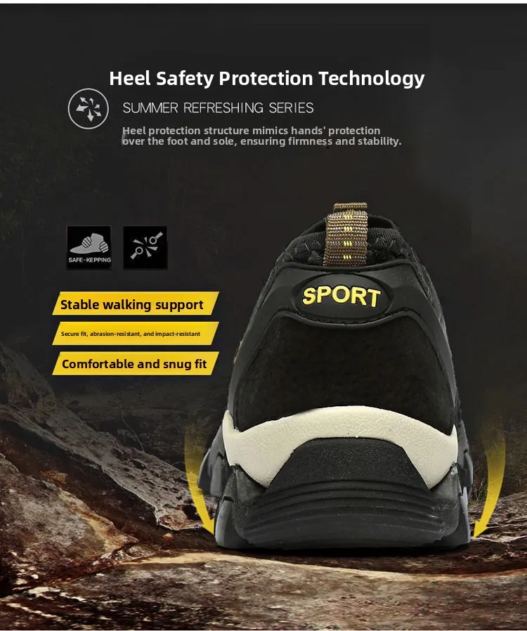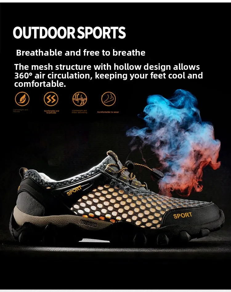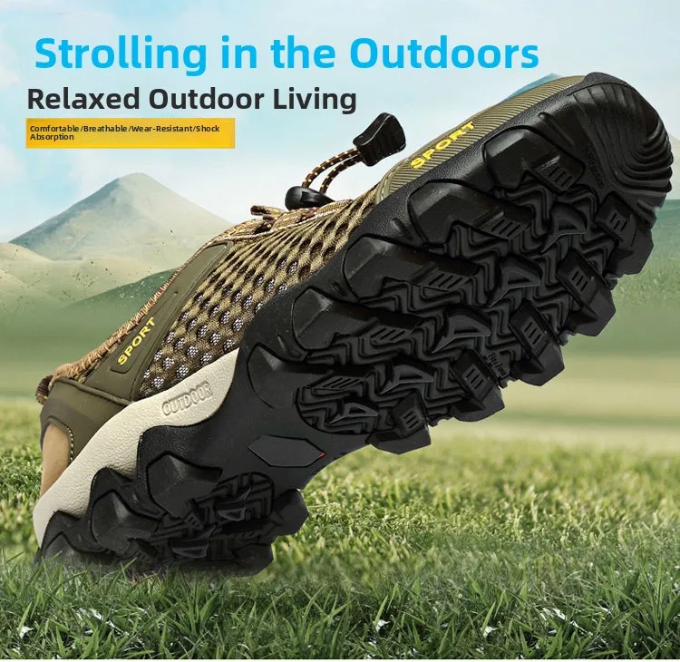 Men's Breathable Hiking Shoes Water-Resistant Hollow out Design Lightweight Mesh Upper Anti-Slip Soaking Wet Outdoor Shoes