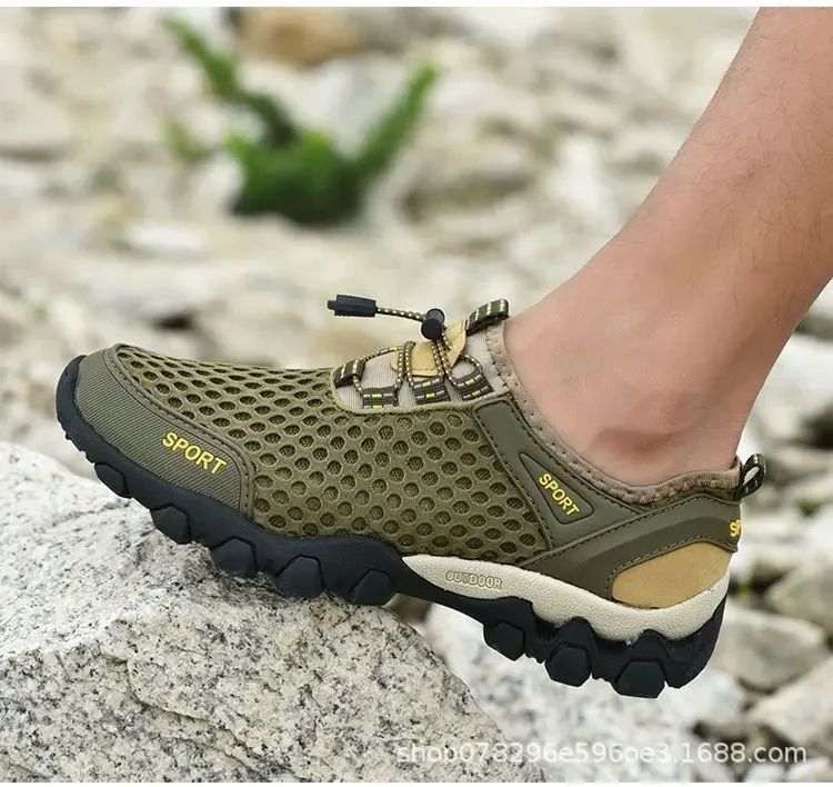 Men's Breathable Sports Casual Running Shoes Summer Mesh Upper Water-Resistant Mountain Climbing Shoes Korean Style
