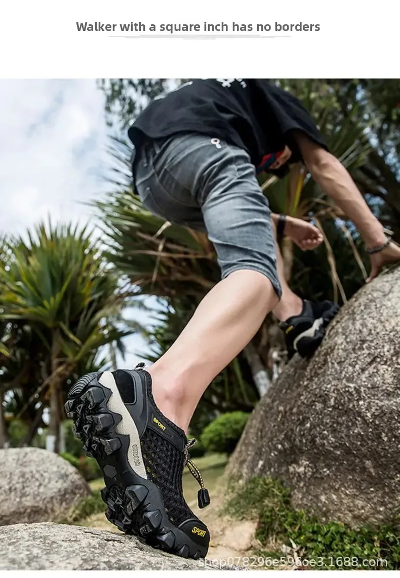 Men's Breathable Sports Casual Running Shoes Summer Mesh Upper Water-Resistant Mountain Climbing Shoes Korean Style