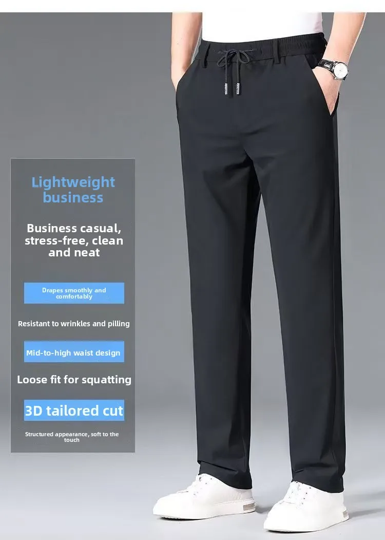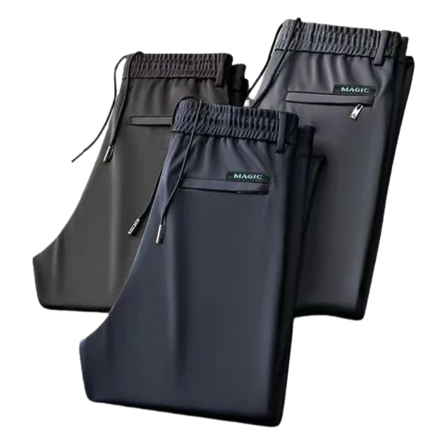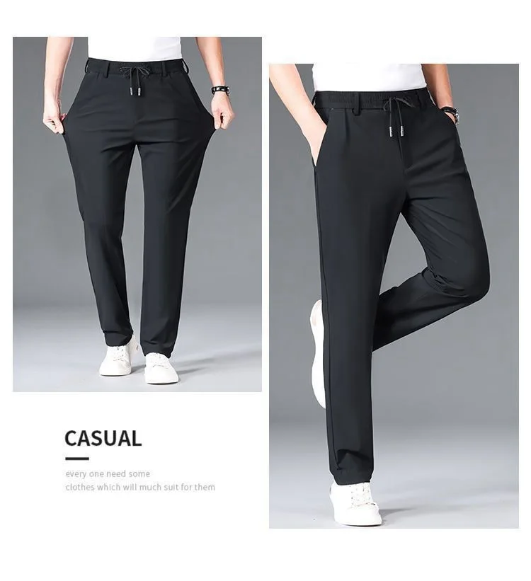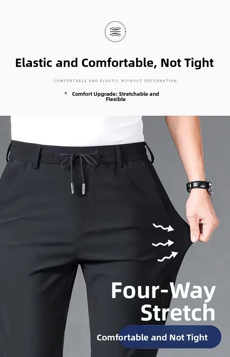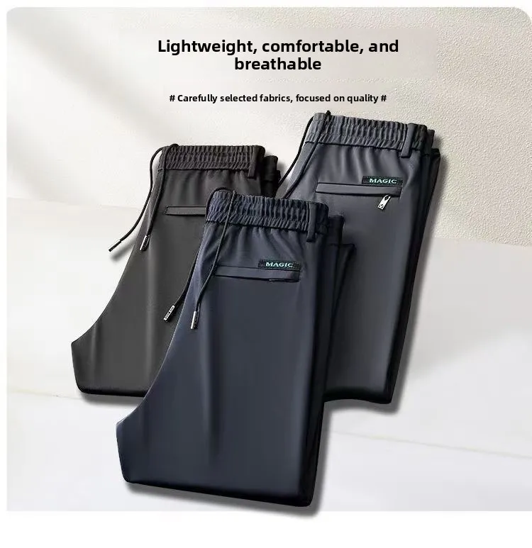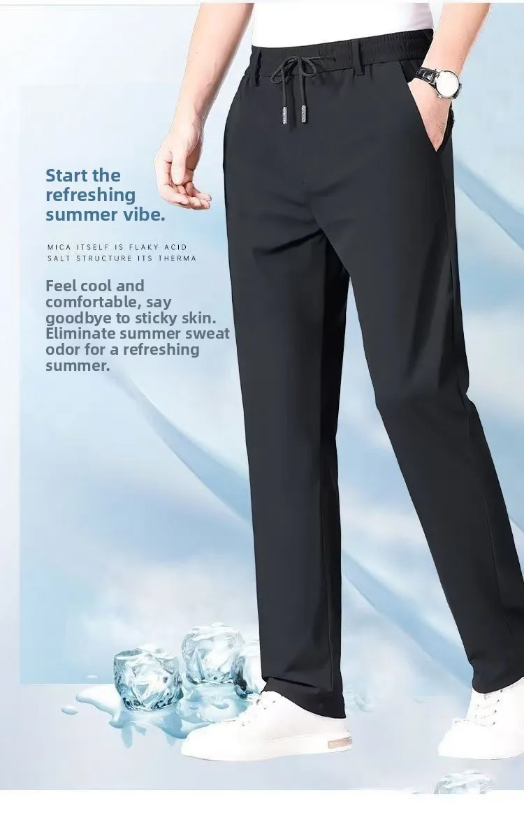 Crafted from ice silk, these pants offer a cool and breathable experience, ideal for summer wear.