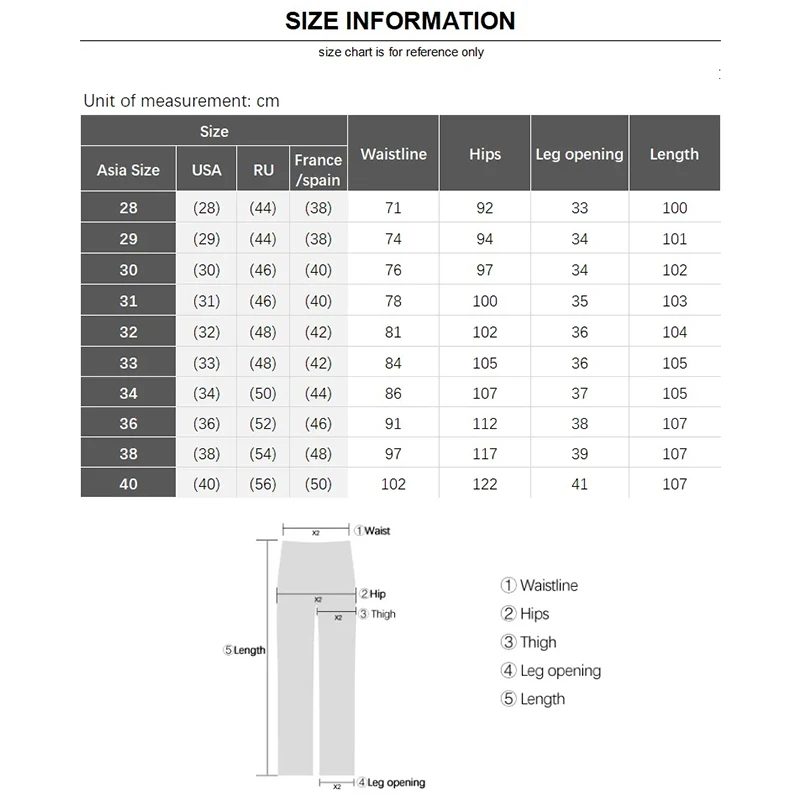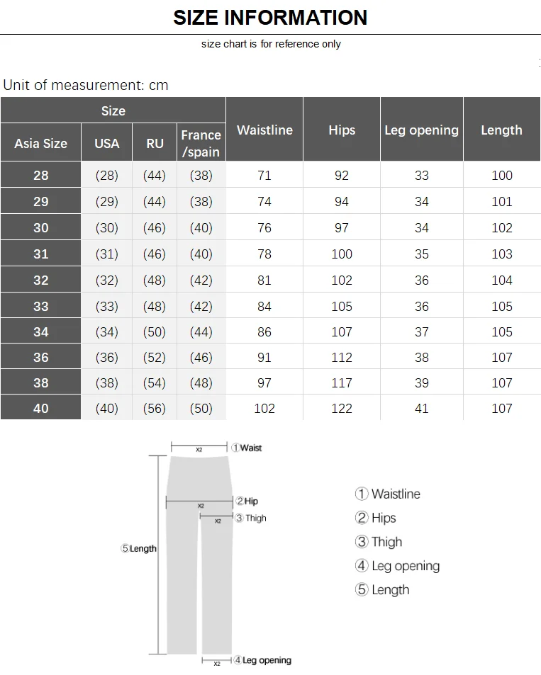 1. The manufacturer is a China size,32 Size ≈ 32 inches Waist Please tell us your height and weight, and we suggest a suitable size for you.