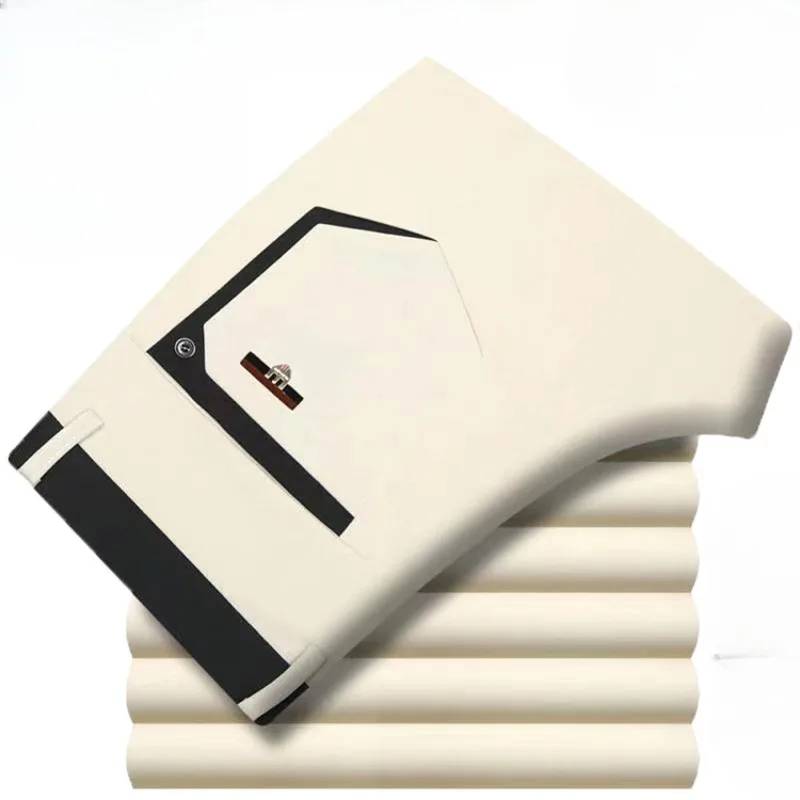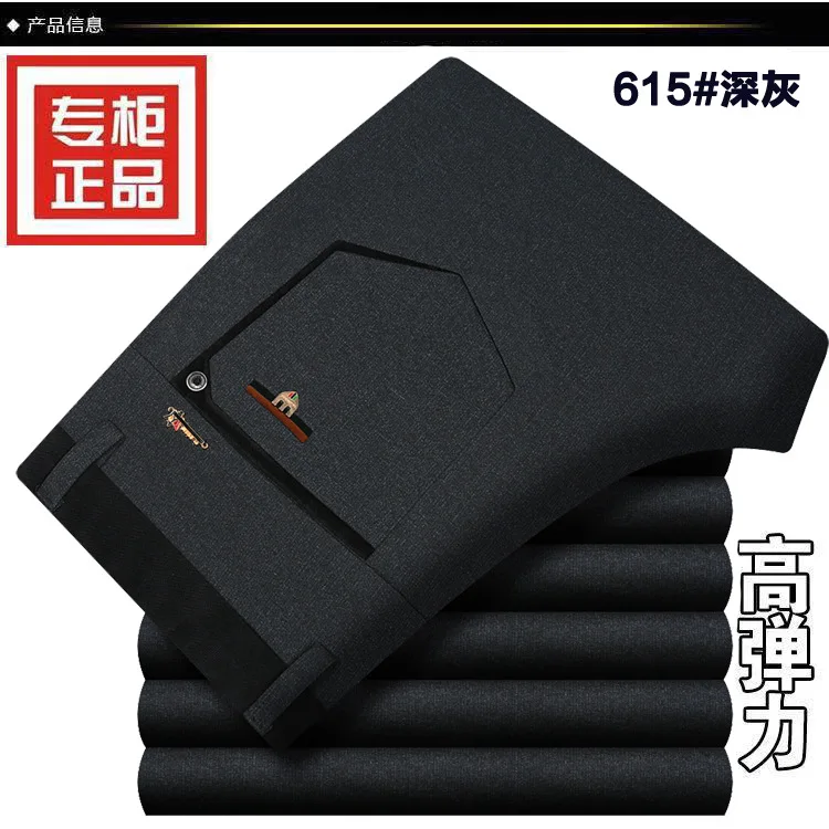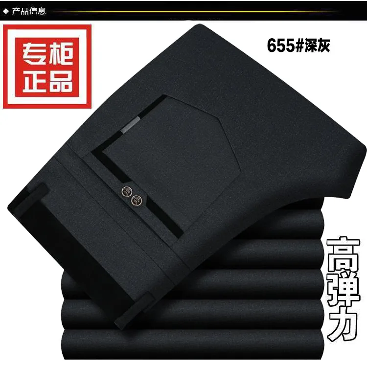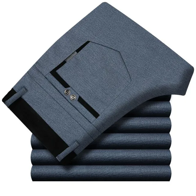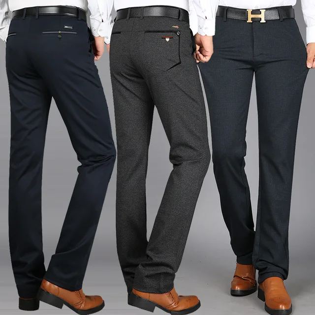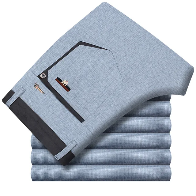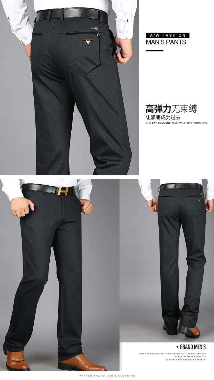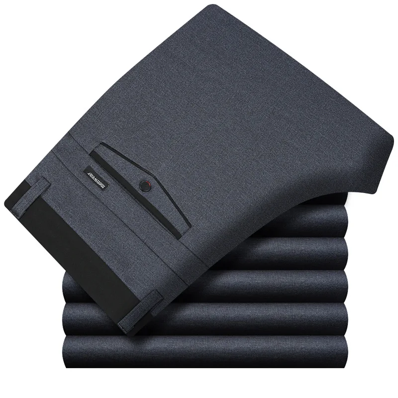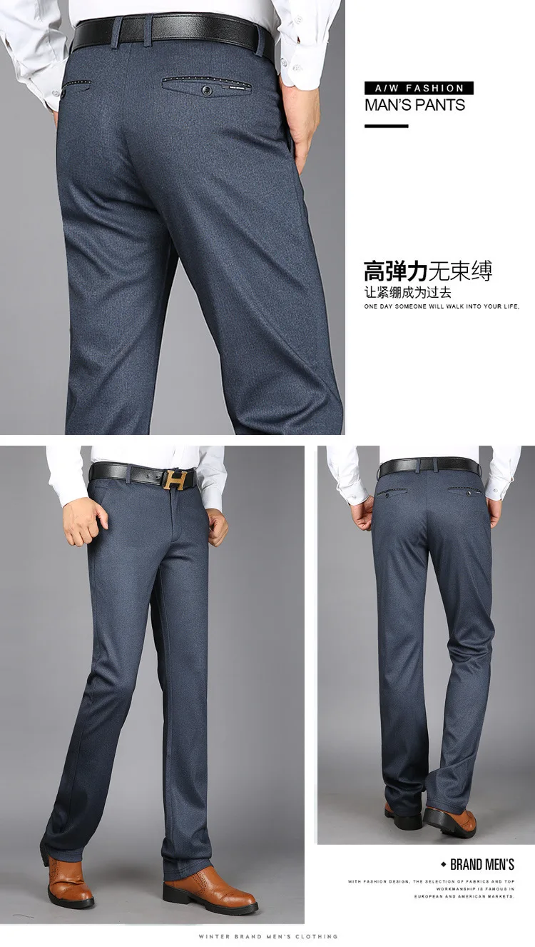 Men’s Business Casual Pants Classic Straight Soft Stretch Solid Color Formal Office Trousers Male