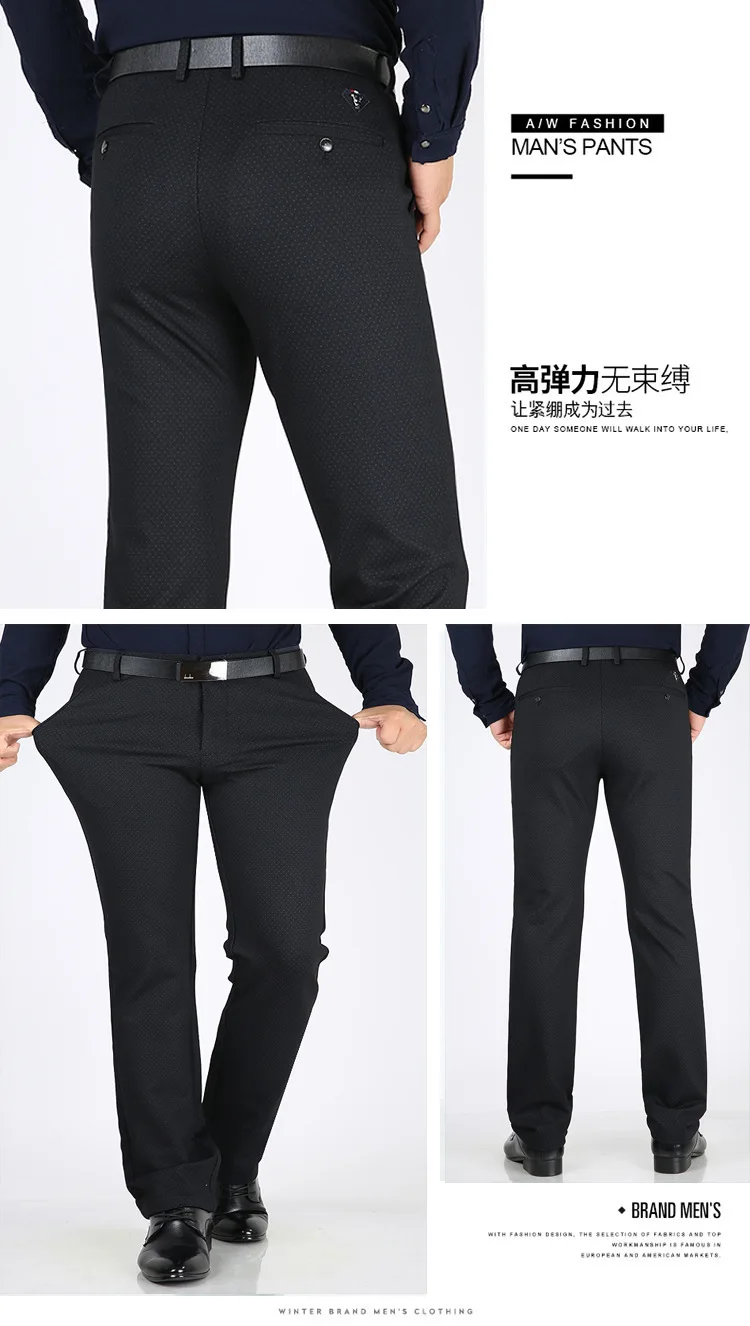 Fleece Warm Winter Men Pants Stretch Thick Straight Basic Classic Cotton Black Khaki Flat Casual Pants Men Plus Size 40 42