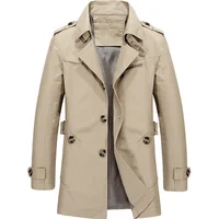 Men’s Business Windbreaker Long Jackets Pure Cotton Trench Coats Casual 2024 Spring Fall Winter