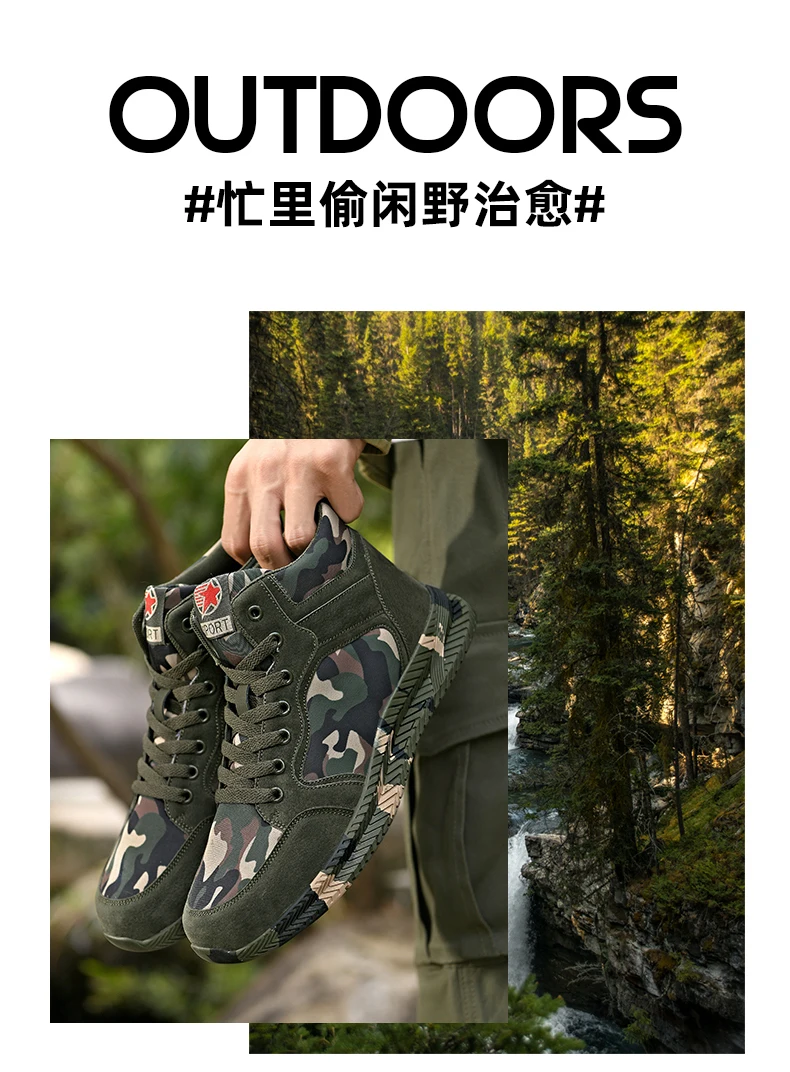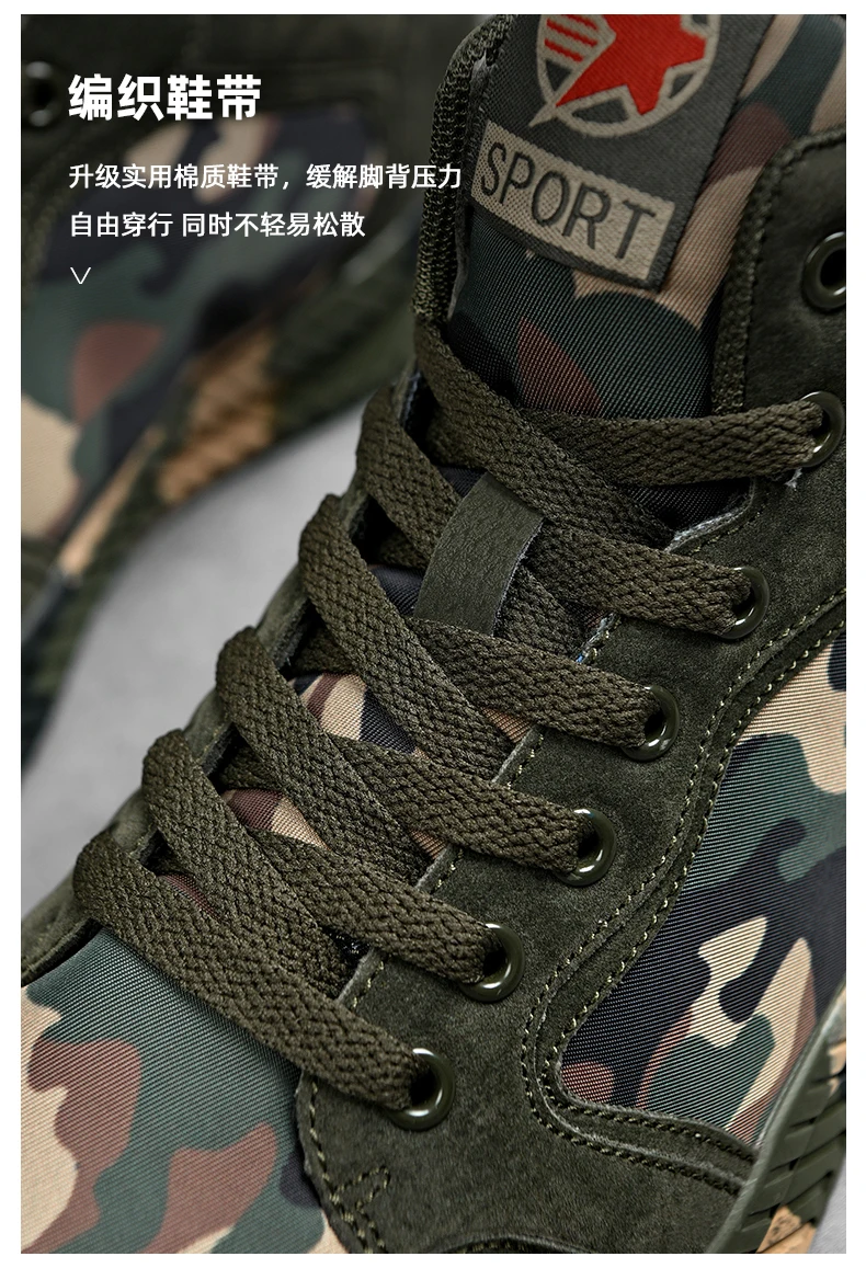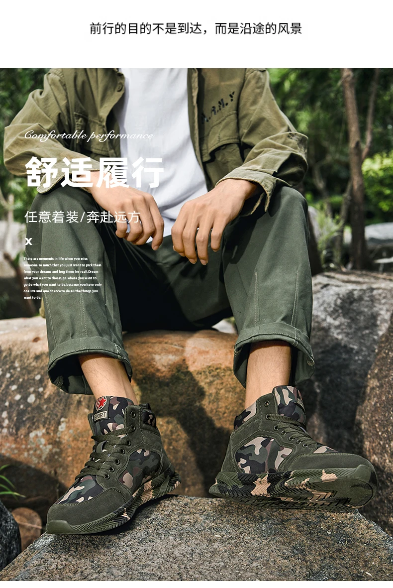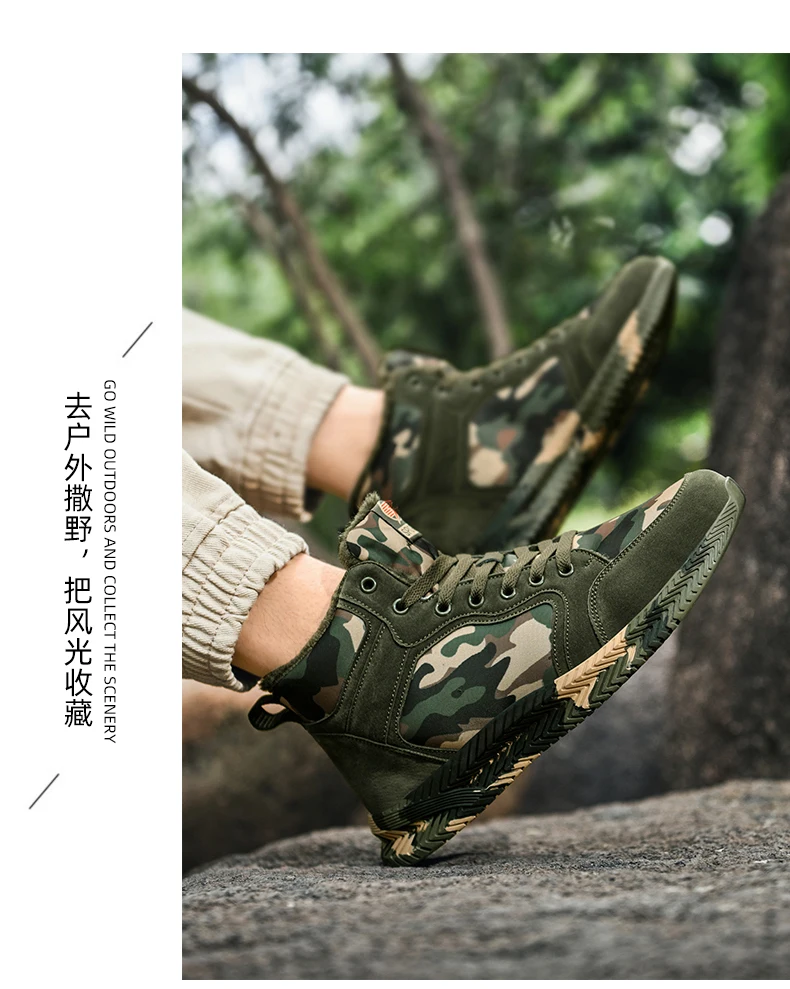 Men’s Camouflage High-Top Canvas Sneakers Lace-Up Non-Slip Outdoor Hiking Running Casual Walking