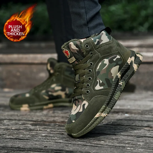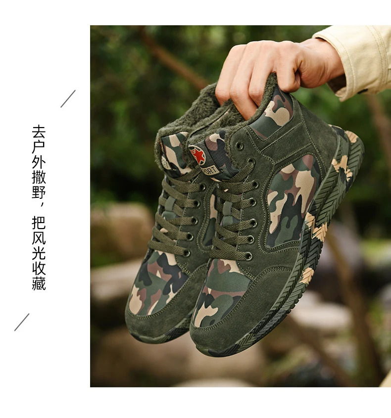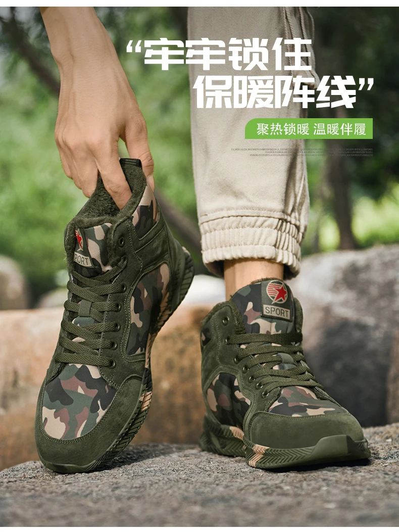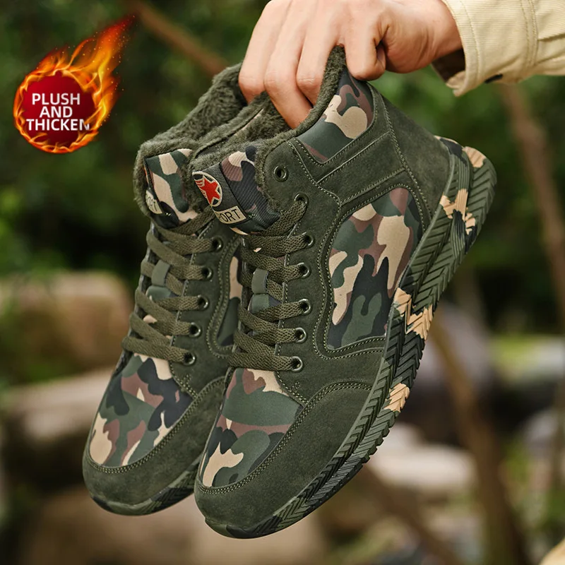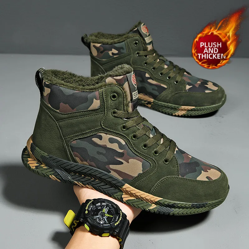 Men’s Camouflage High-Top Canvas Sneakers Lace-Up Non-Slip Outdoor Hiking Running Casual Walking