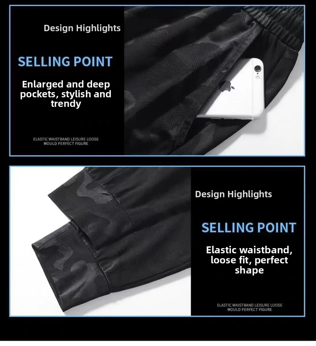 Men’s Camouflage Ice Silk Me Breathable Qui Dry Loose Fit Casual Pants Faionable Urban Sle High