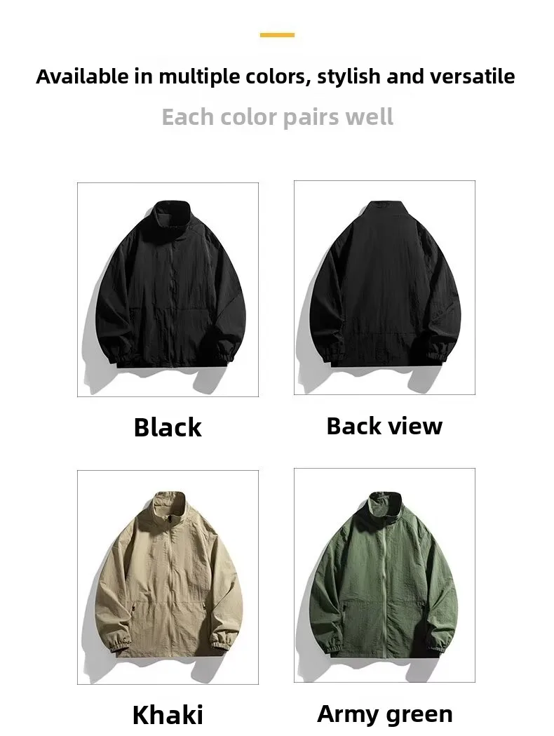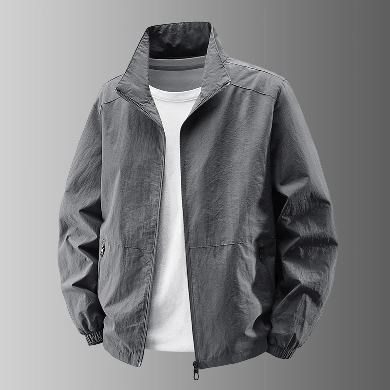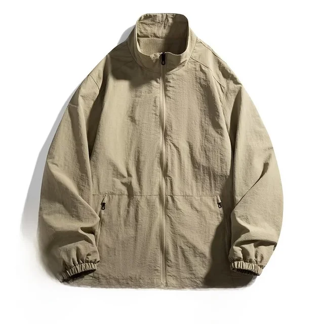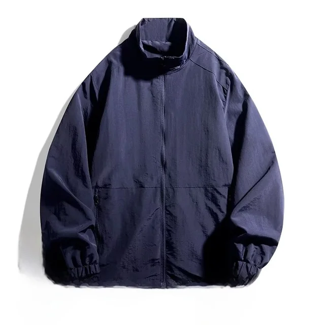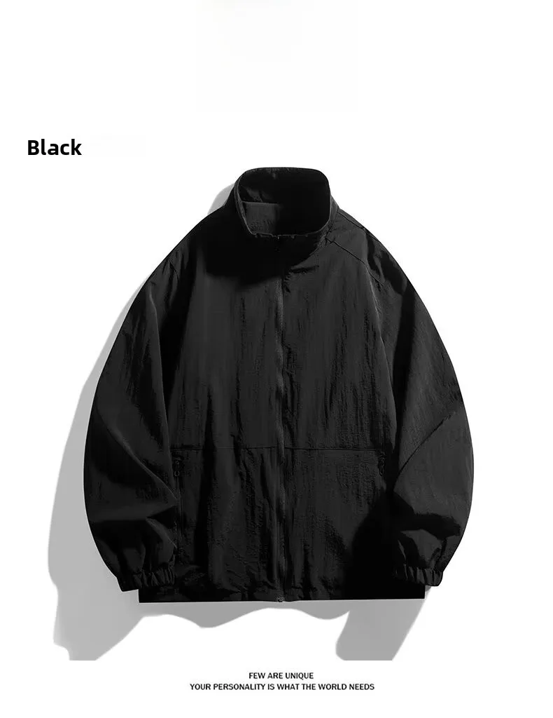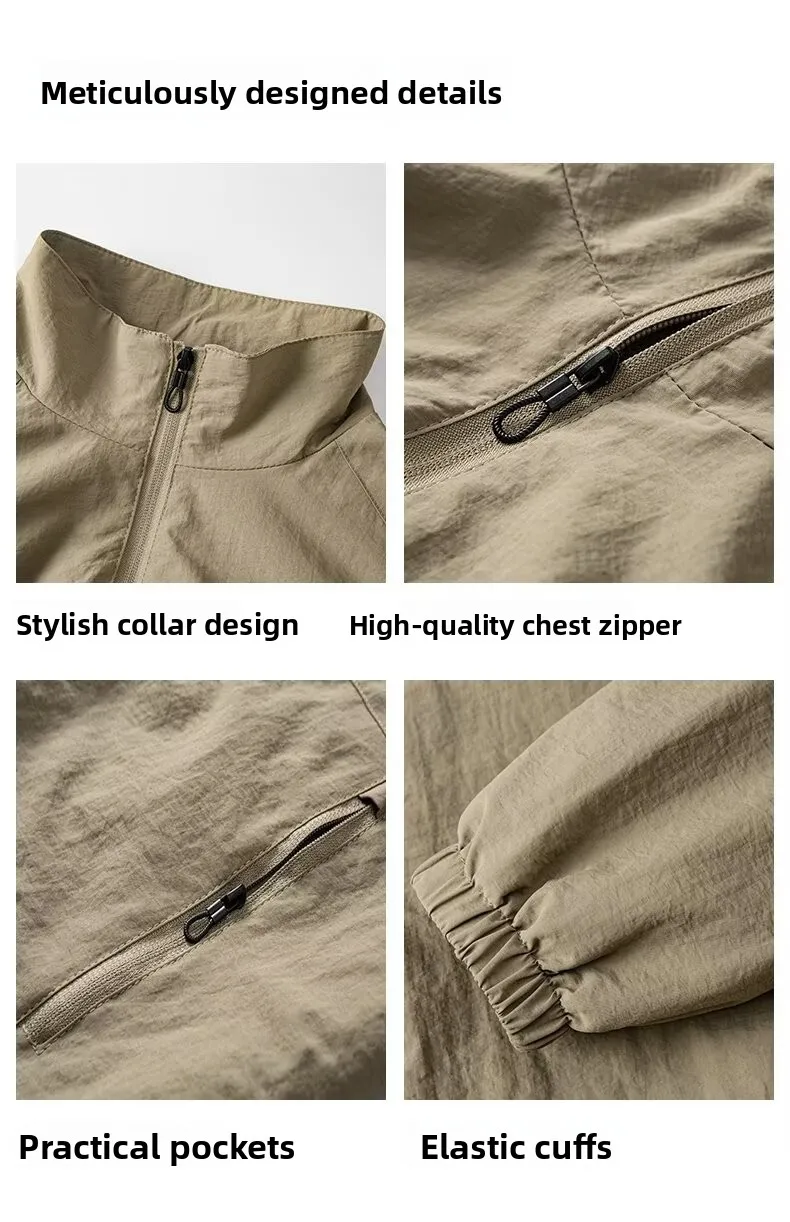 Men’s Casual Busin Jaet Stand Collar Loose Fit Tee-Proof Polyester Fiber ort Sle Zipper Closure