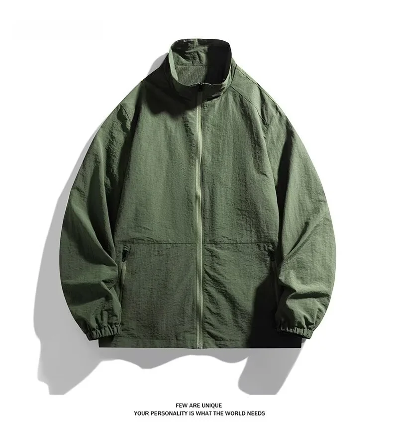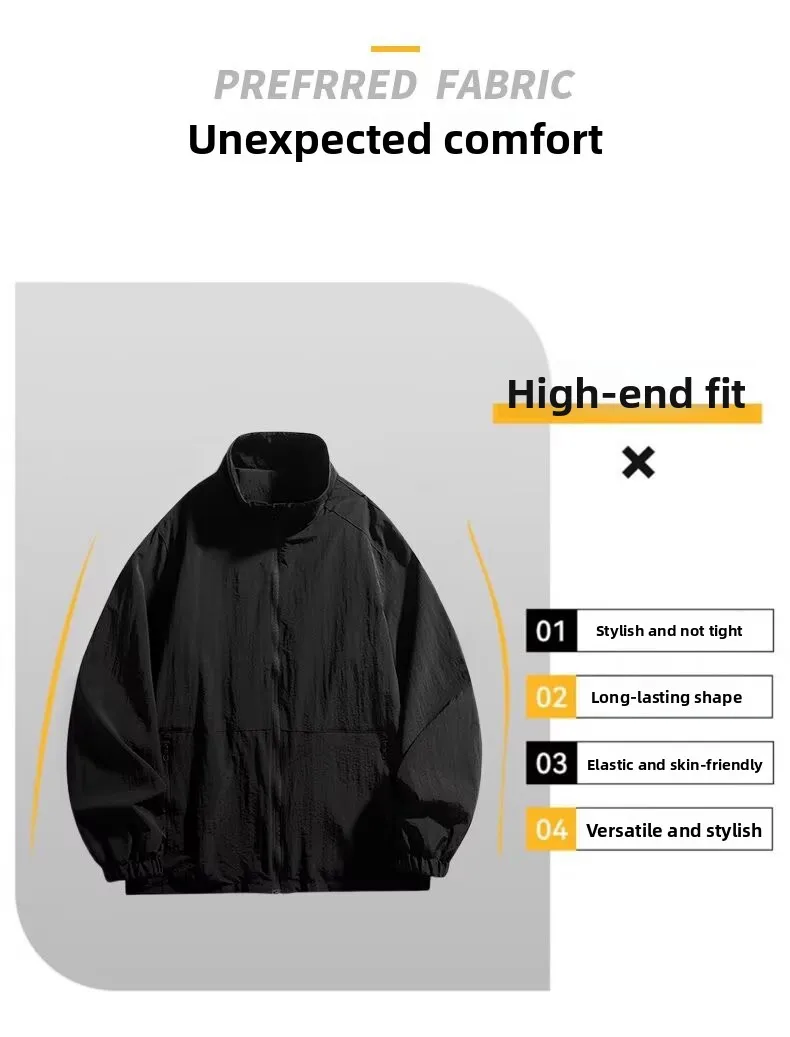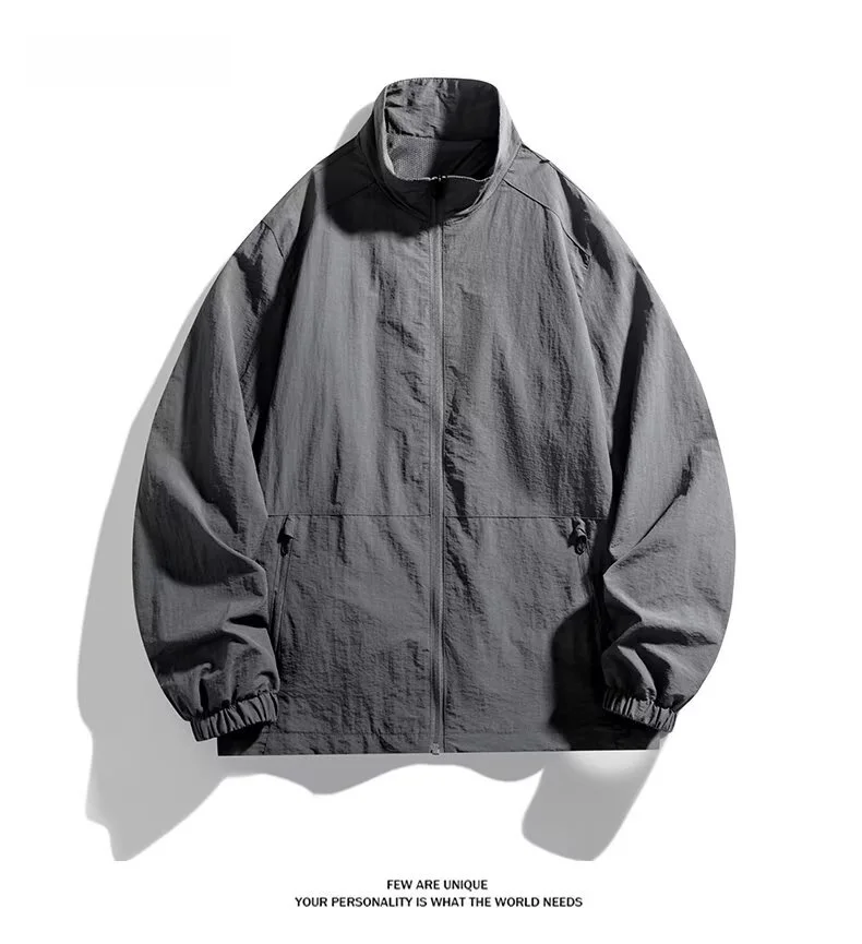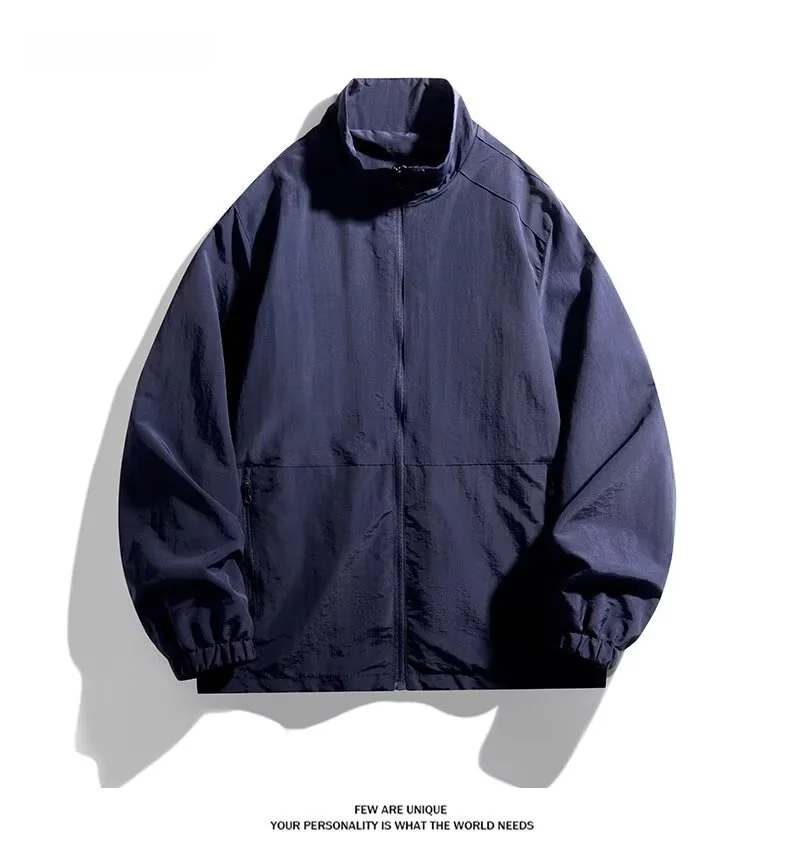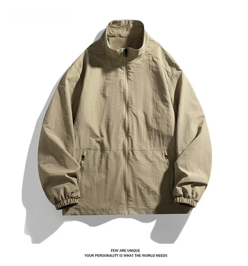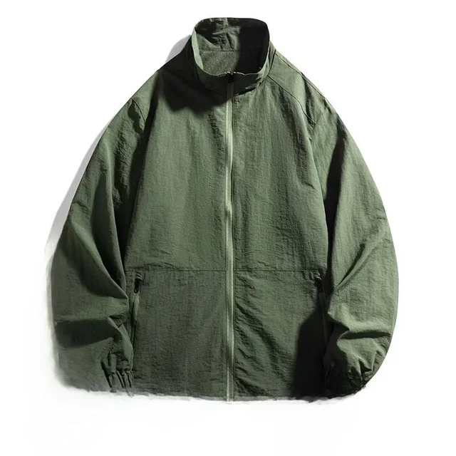 Men’s Casual Busin Jaet Stand Collar Loose Fit Tee-Proof Polyester Fiber ort Sle Zipper Closure