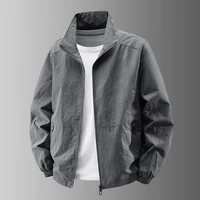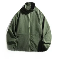 Men's Casual Busin Jaet Stand Collar Loose Fit Tee-Proof Polyester Fiber ort Sle Zipper Closure Pure Color Large Size