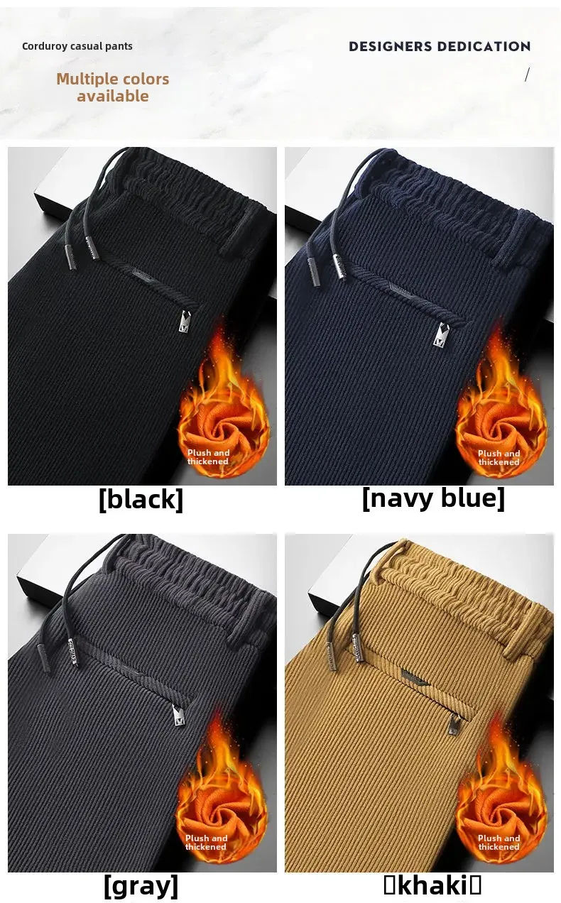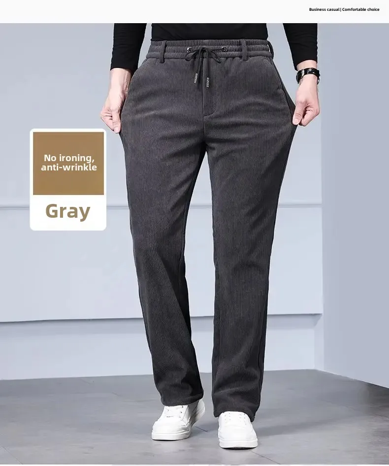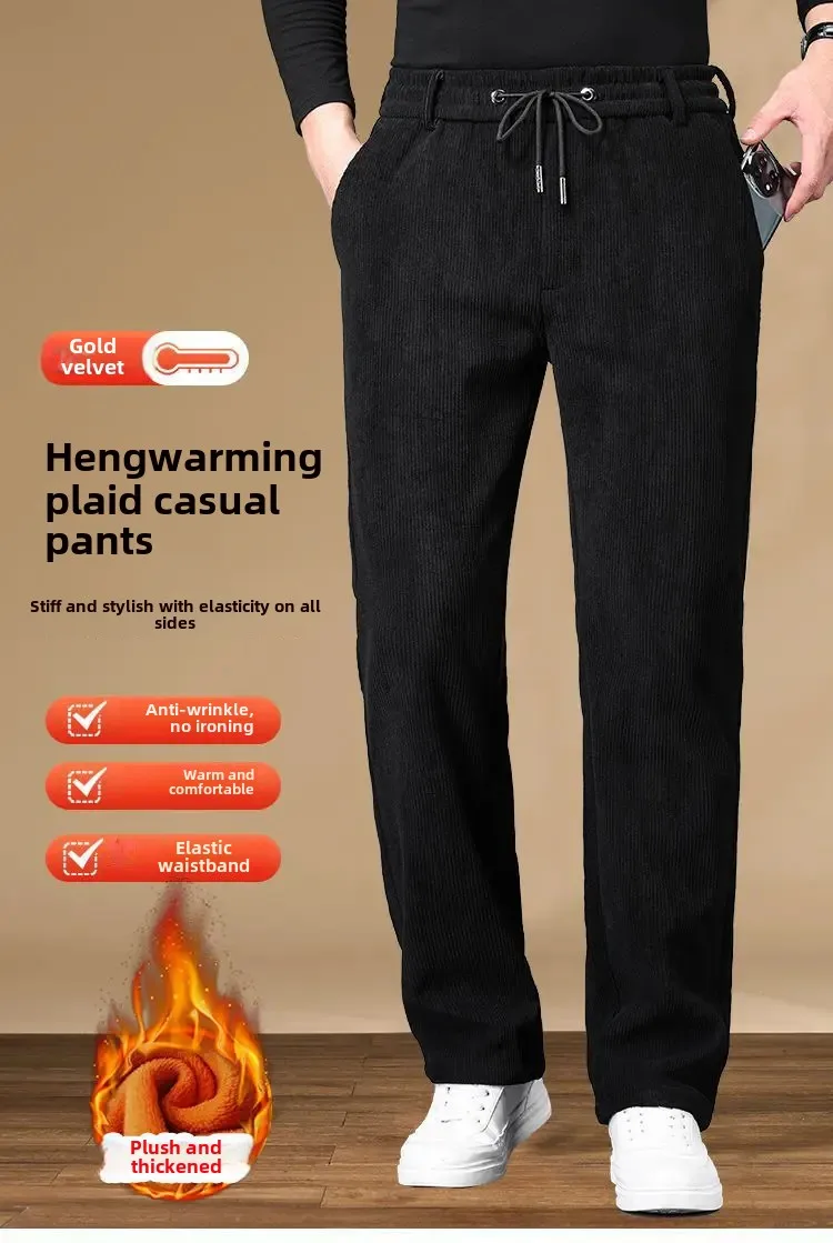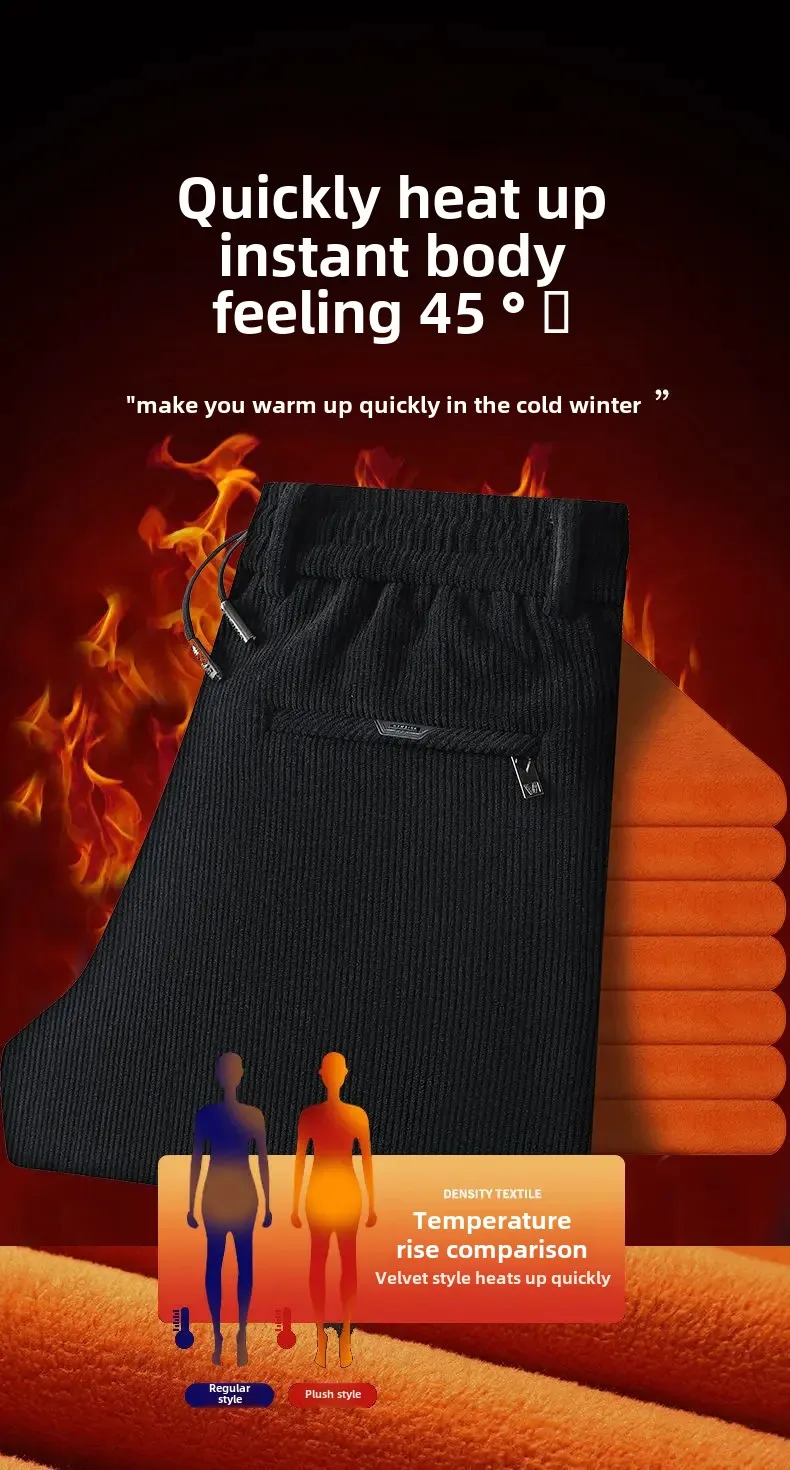 Men's Casual Fleece-Lined Corduroy Pants Loose-Fit Straight-Leg Thickened Mid-Waist Dad Slim Fit Velvet Pants