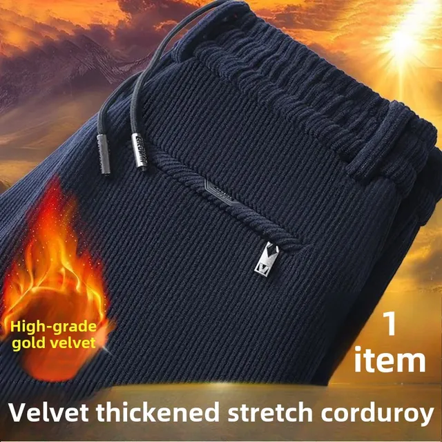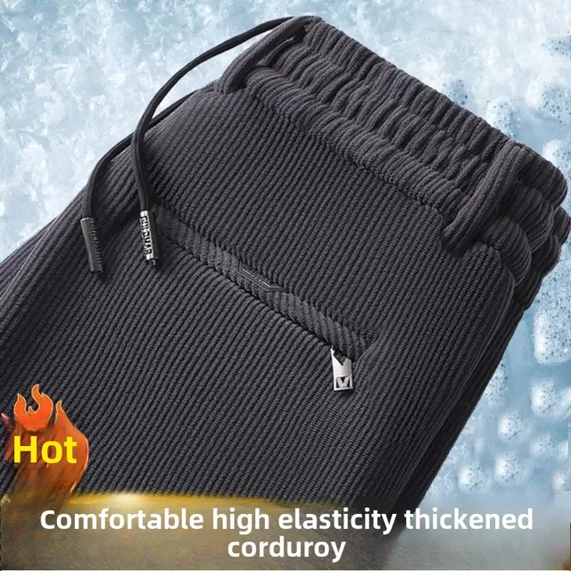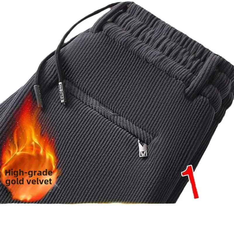 Men's Casual Fleece-Lined Corduroy Pants Loose-Fit Straight-Leg Thickened Mid-Waist Dad Slim Fit Velvet Pants