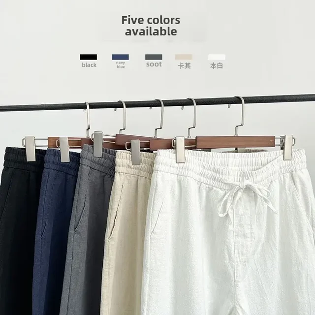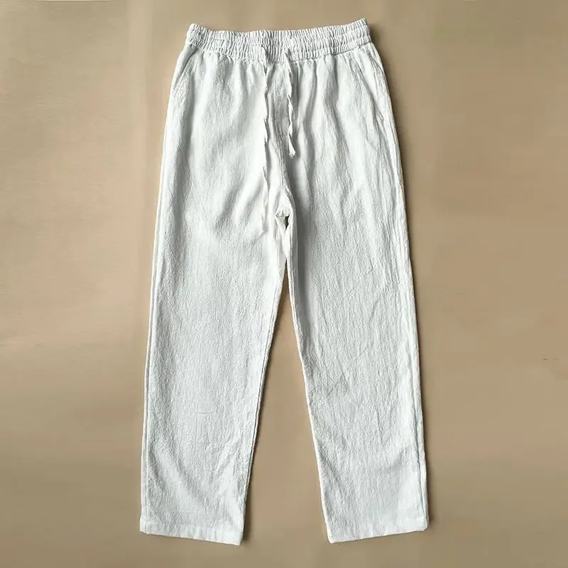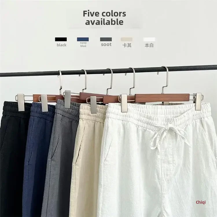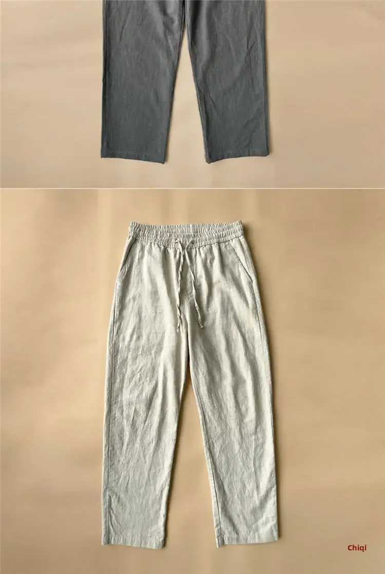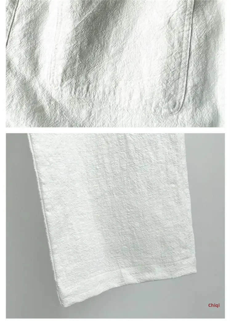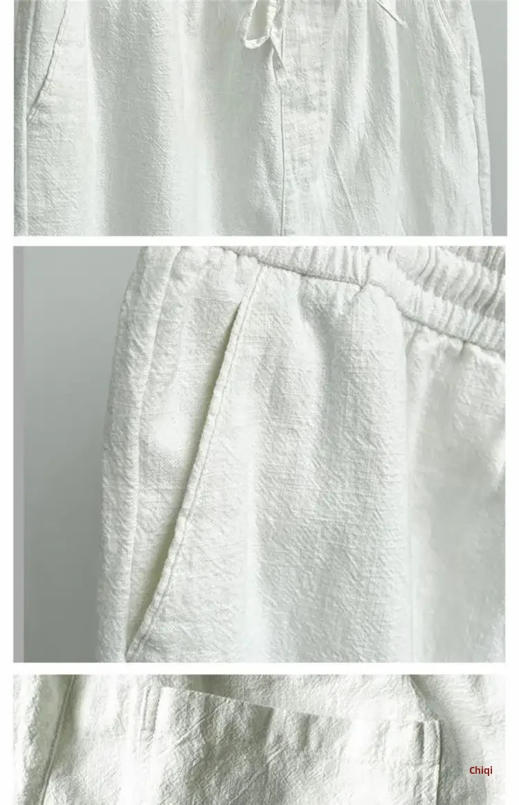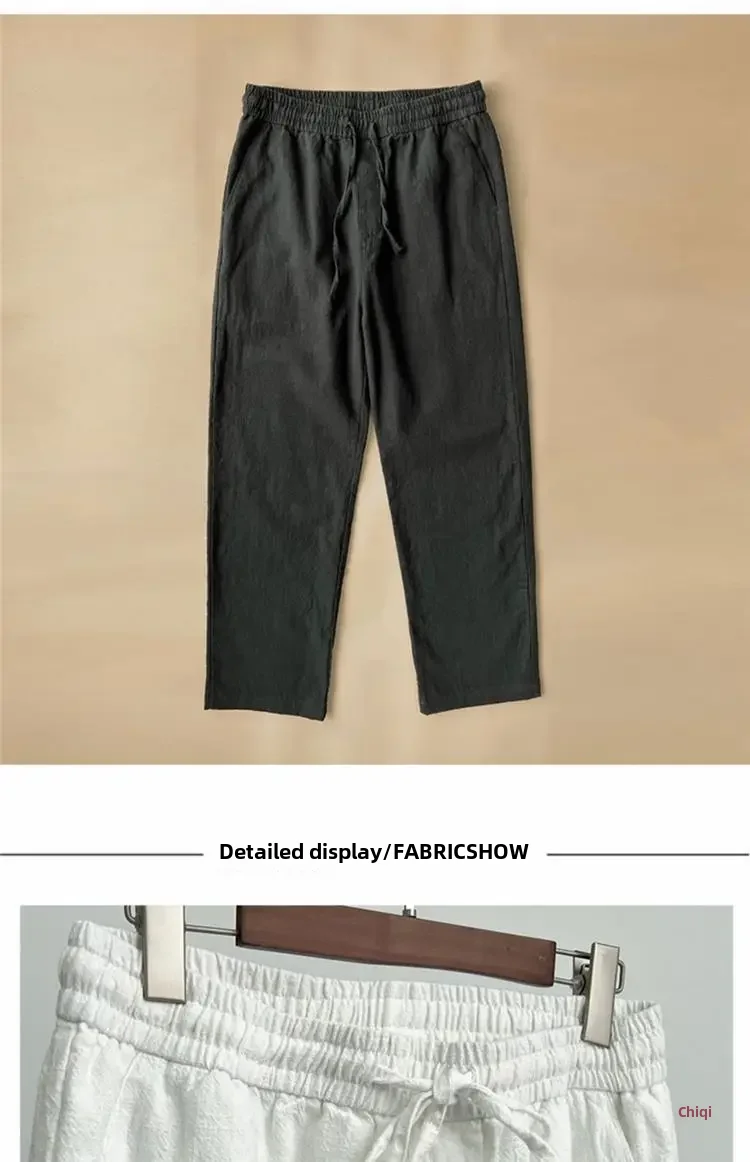 Men’s Casual High-end Hemp Pants Summer Thin Style New Chinese Cotton Hemp Trousers White Loose-fit