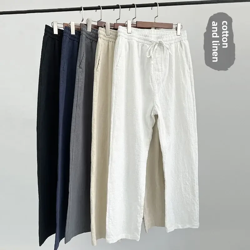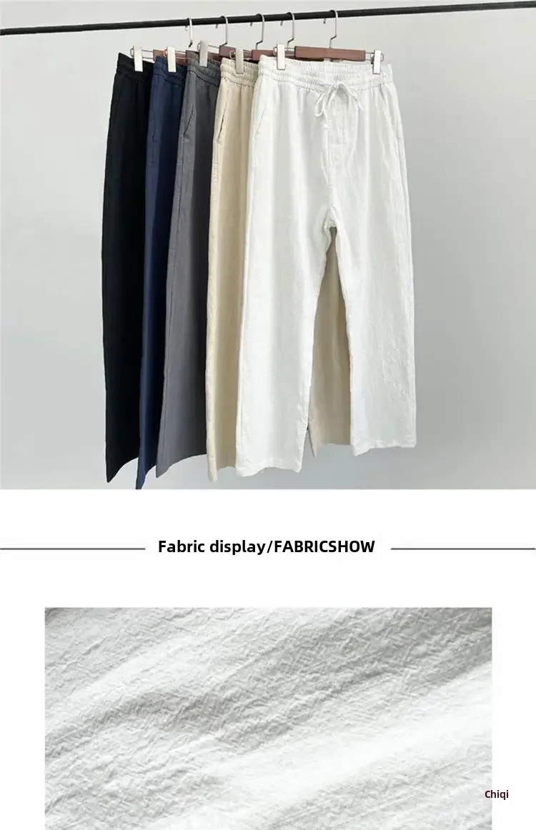 Men's Casual High-end Hemp Pants Summer Thin Style New Chinese Cotton Hemp Trousers White Loose-fit Straight-leg Pants