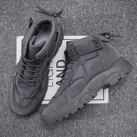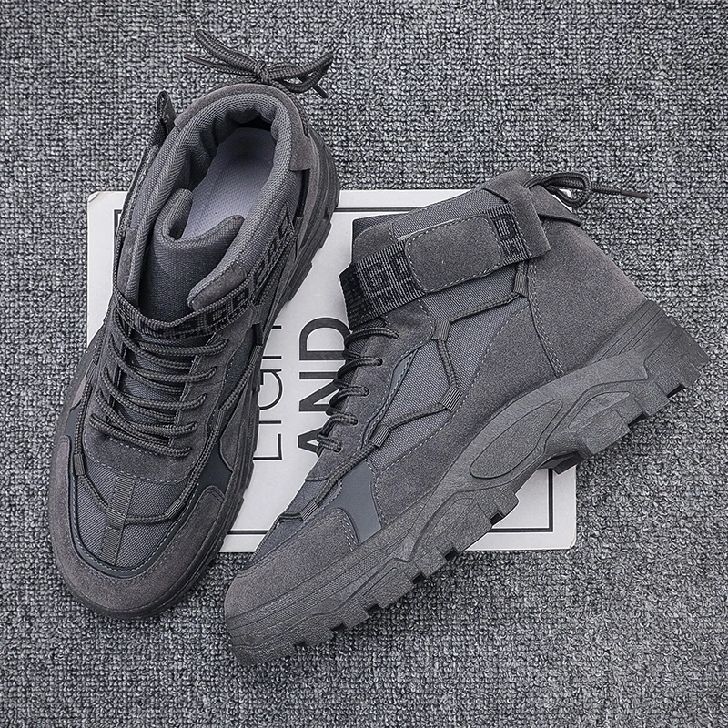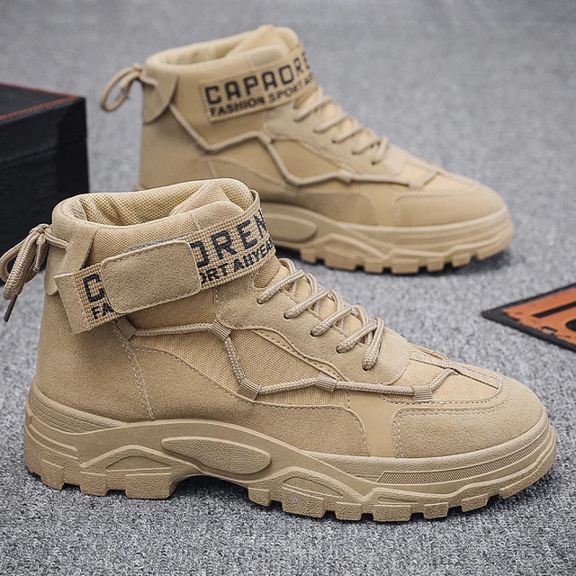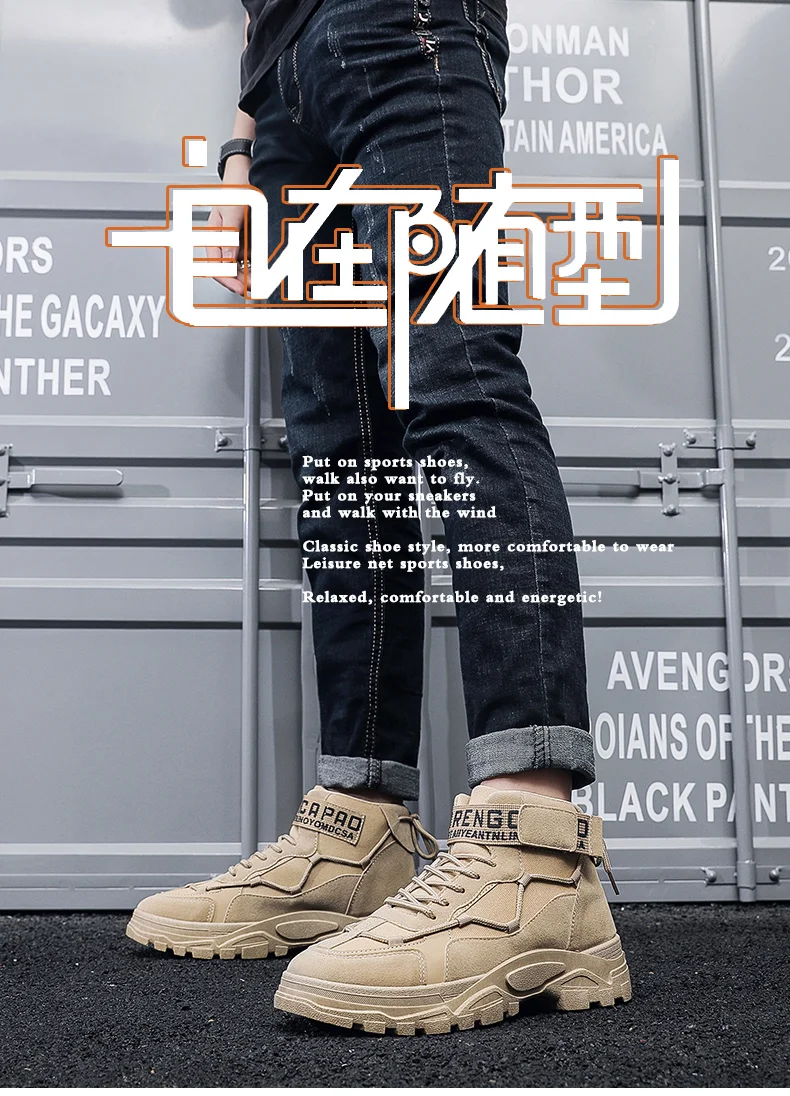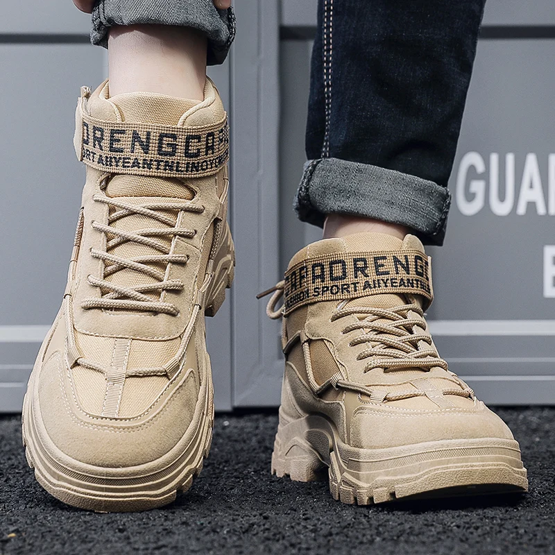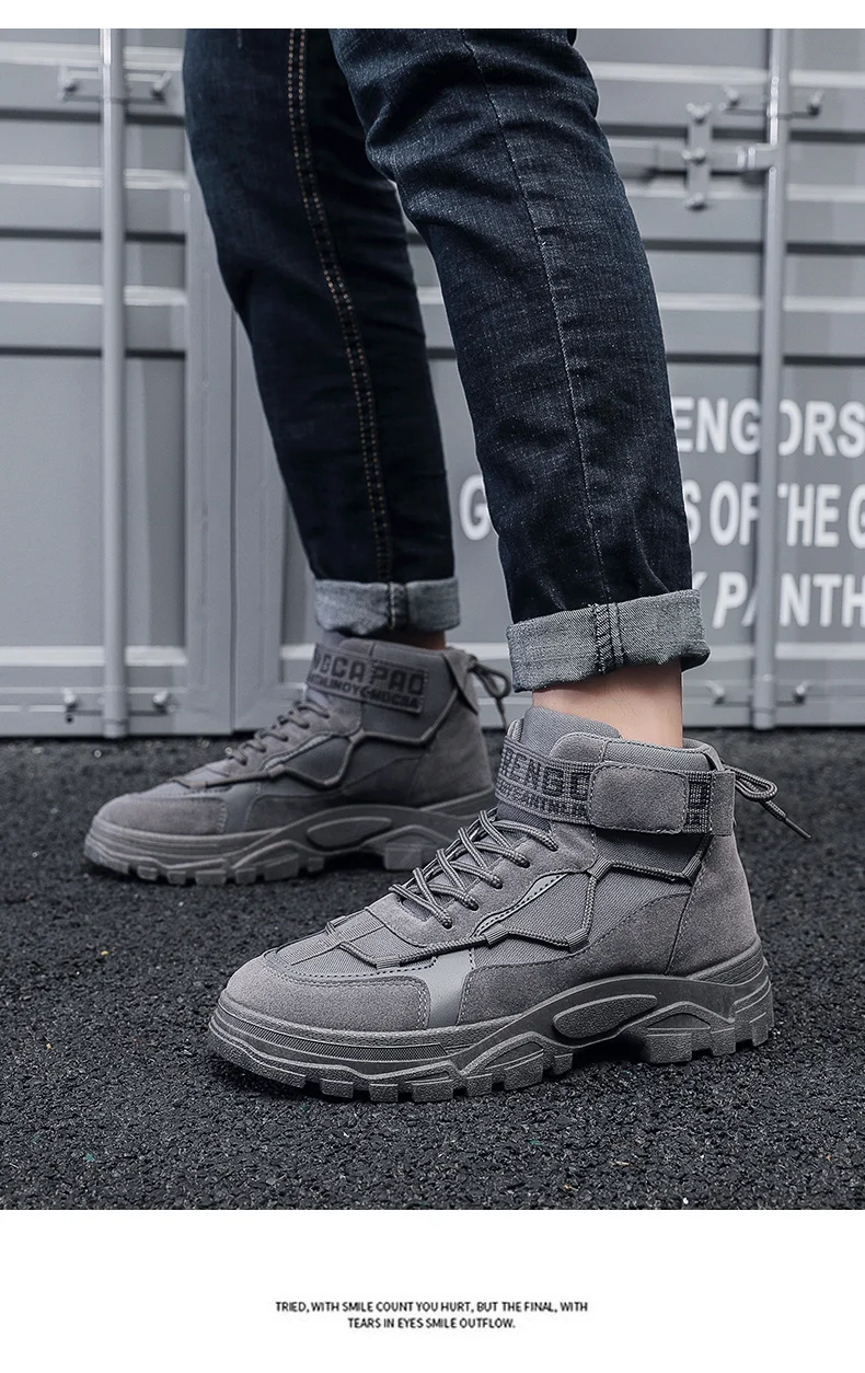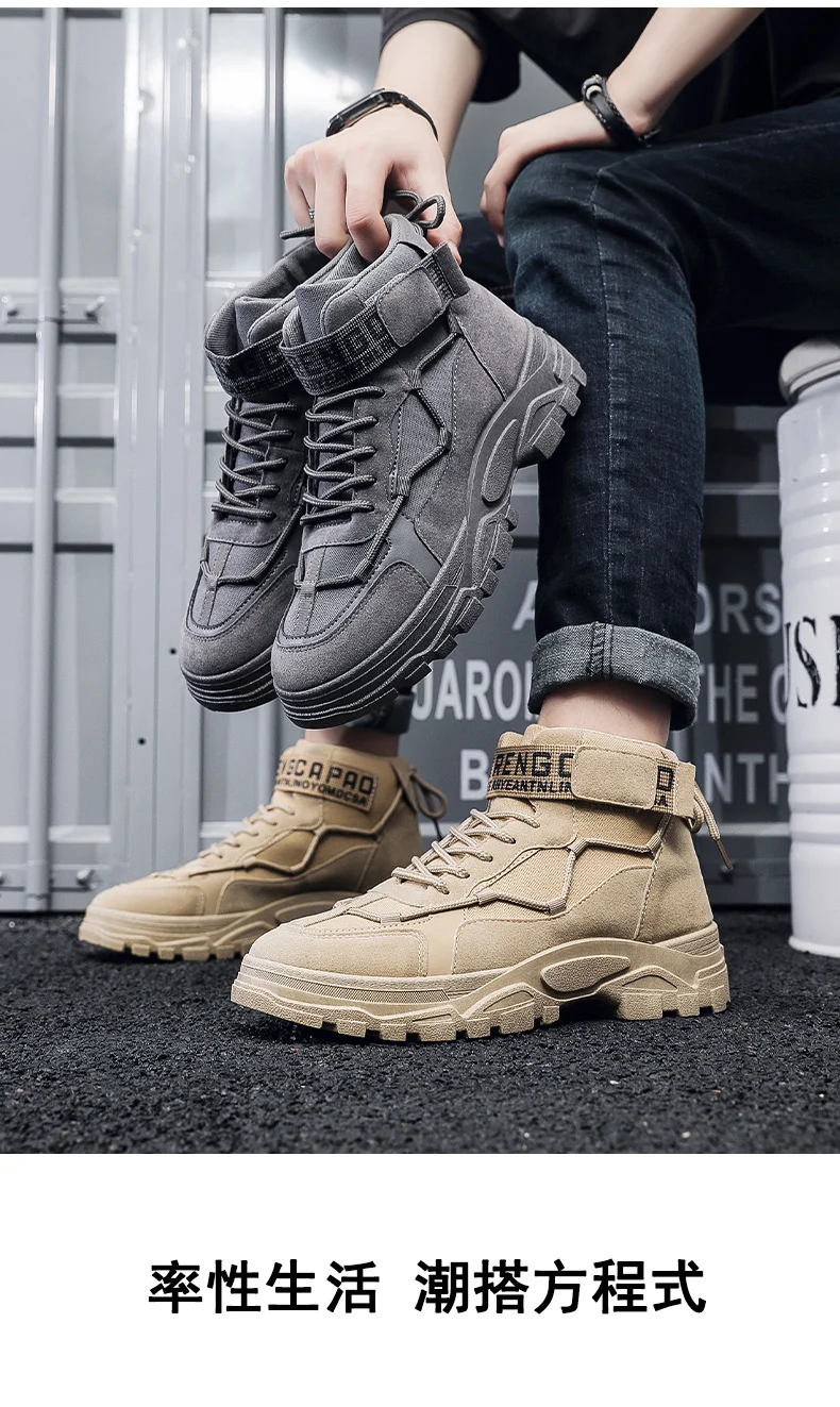 Men’s Casual Leather Boots Four Seasons Outdoor Hiking Boots Fashion Retro Work Boots Thick Bottom