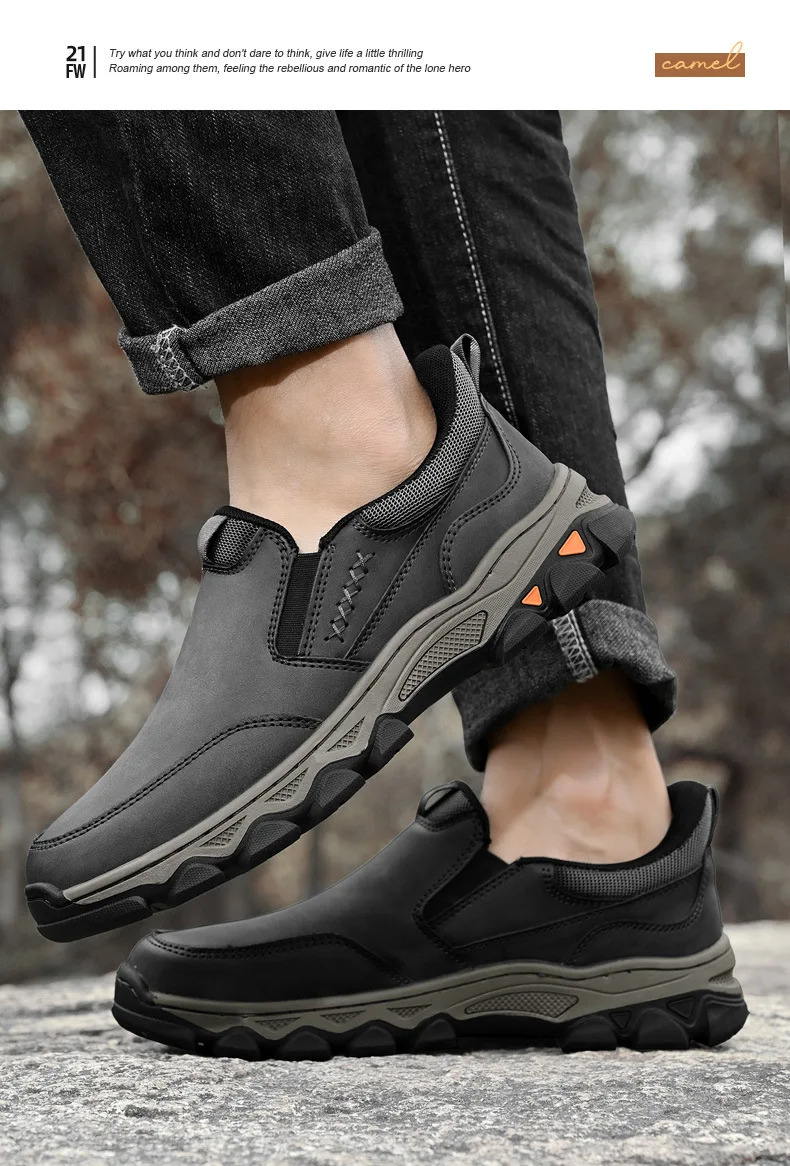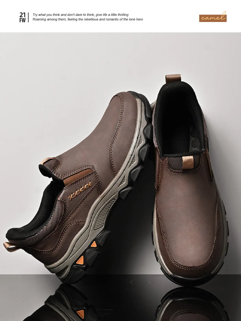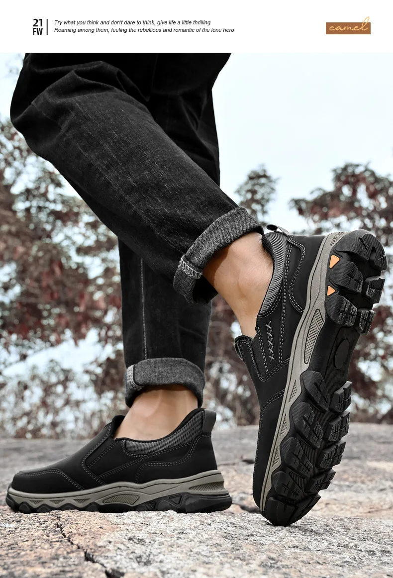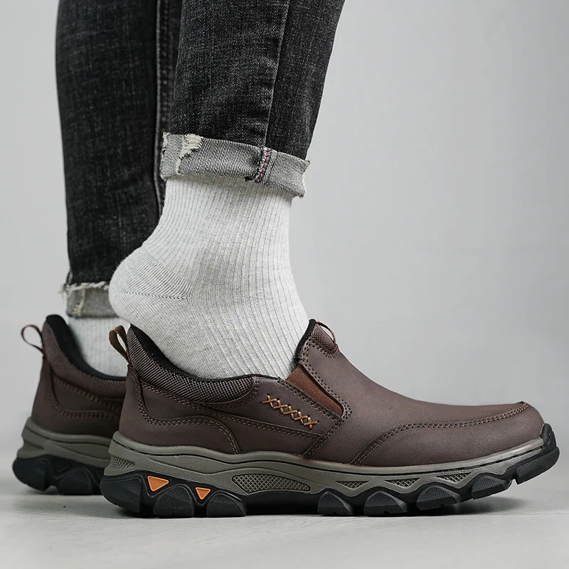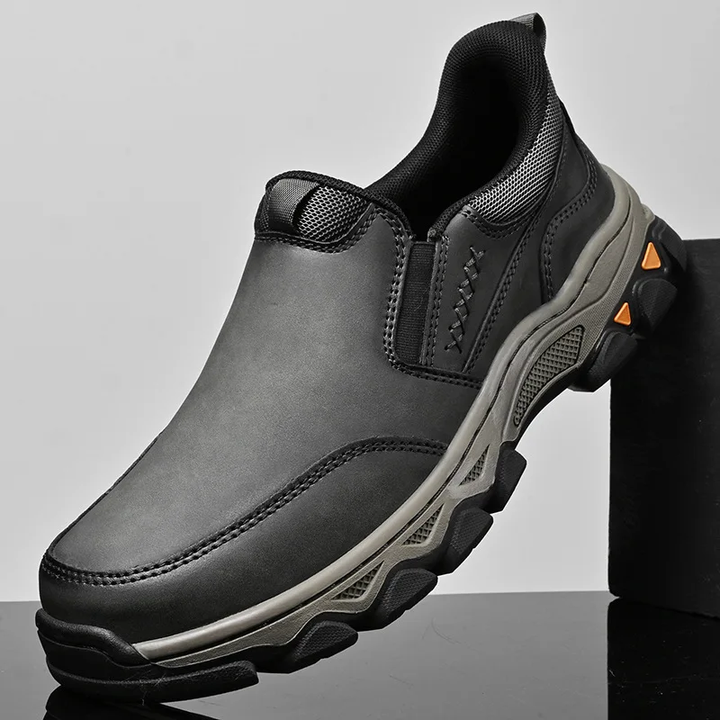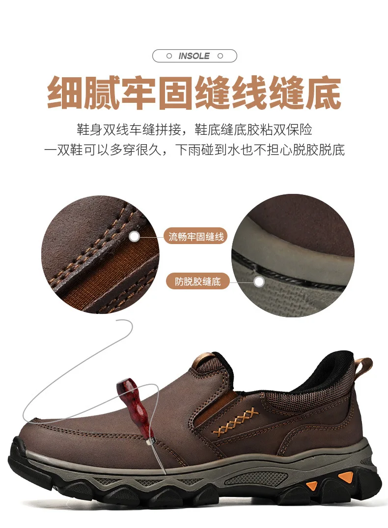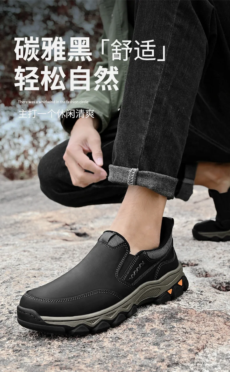 Genuine leather men's loafers for spring, autumn, and winter business casual shoes, flat bottomed and one foot slip board shoes