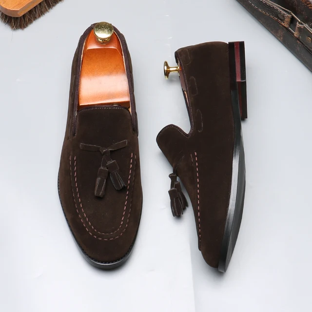 Men's Casual Leather Shoes Mens Classic Retro British Style Tassels Loafers Moccasins Fashion Party Wedding Flats for Men