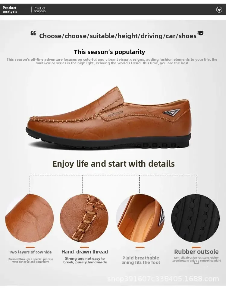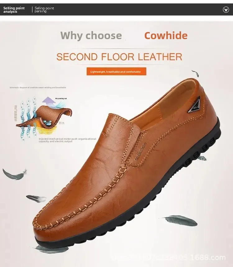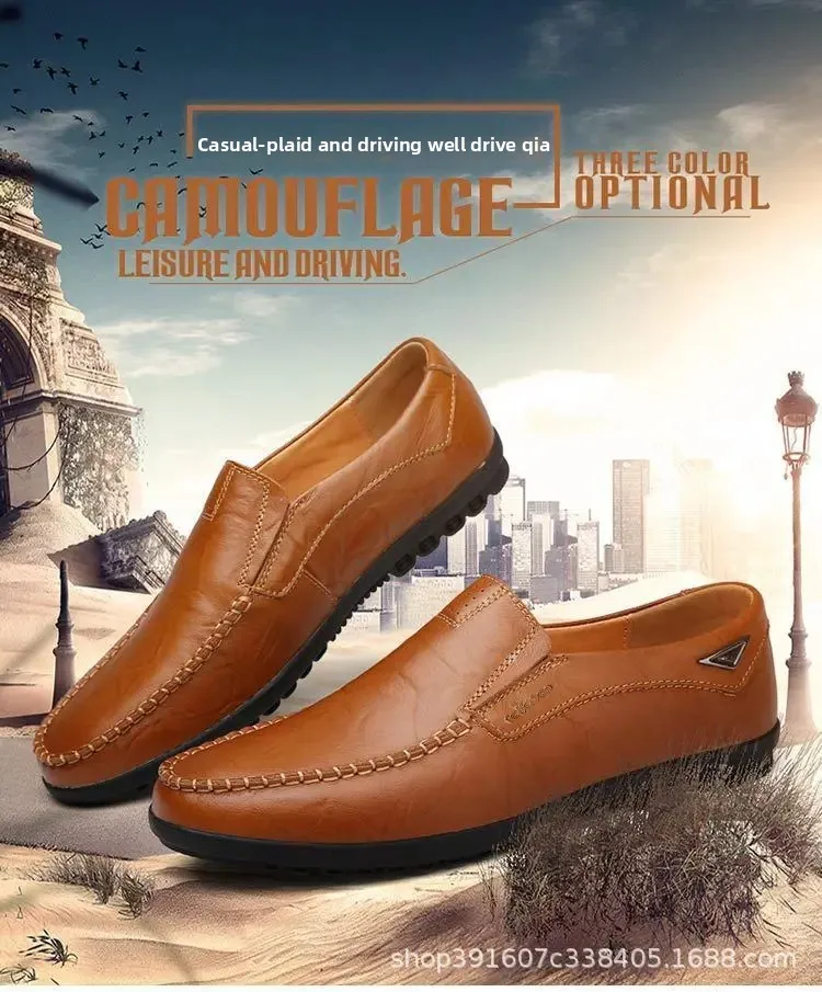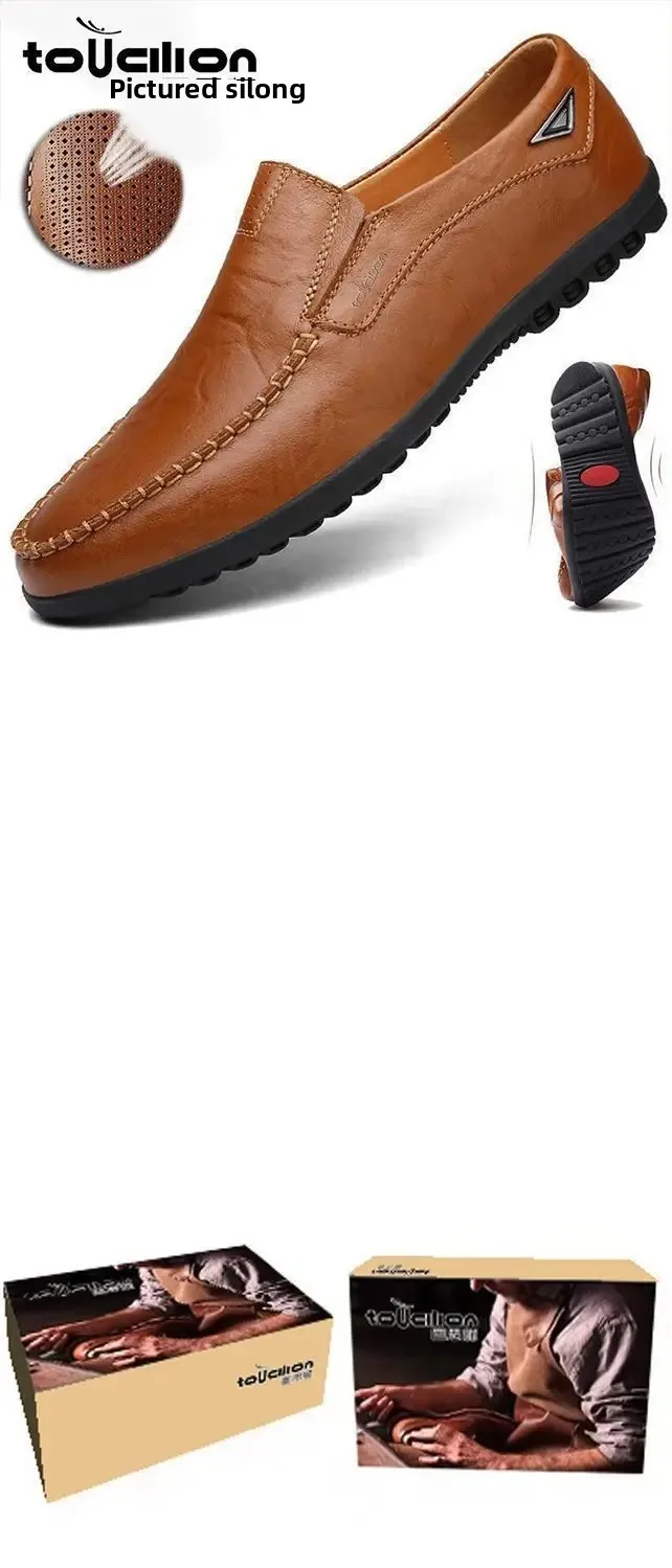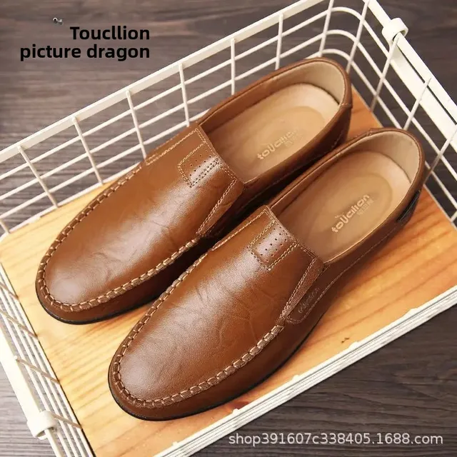 Men's Casual Leather Shoes Soft Leather Flexible Bottom Business Boots Comfortable Slip-On Dad Shoes Breathable Spring Autumn