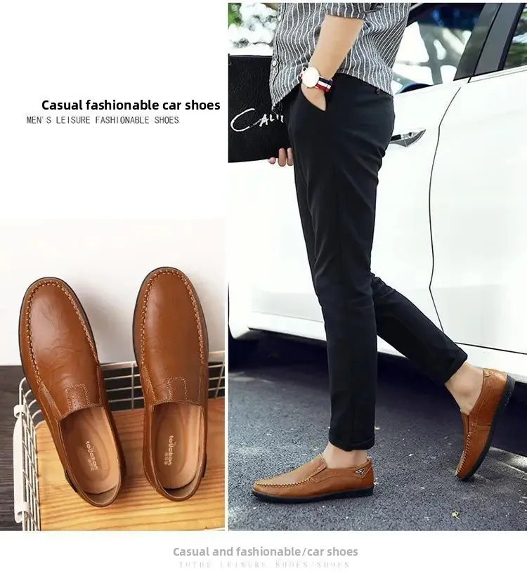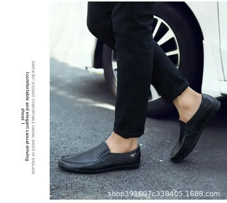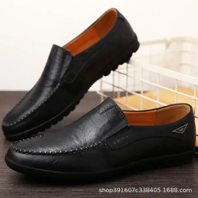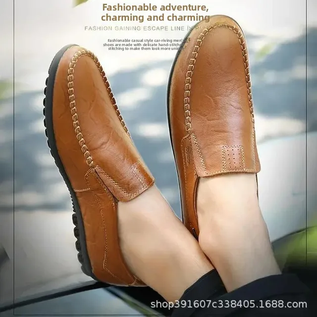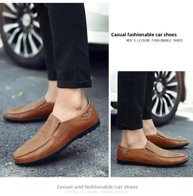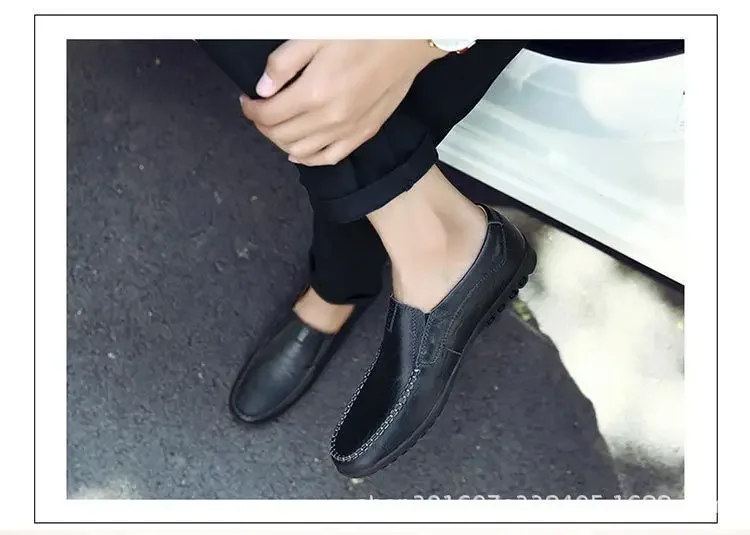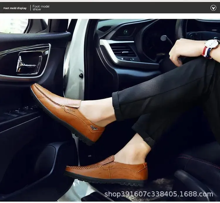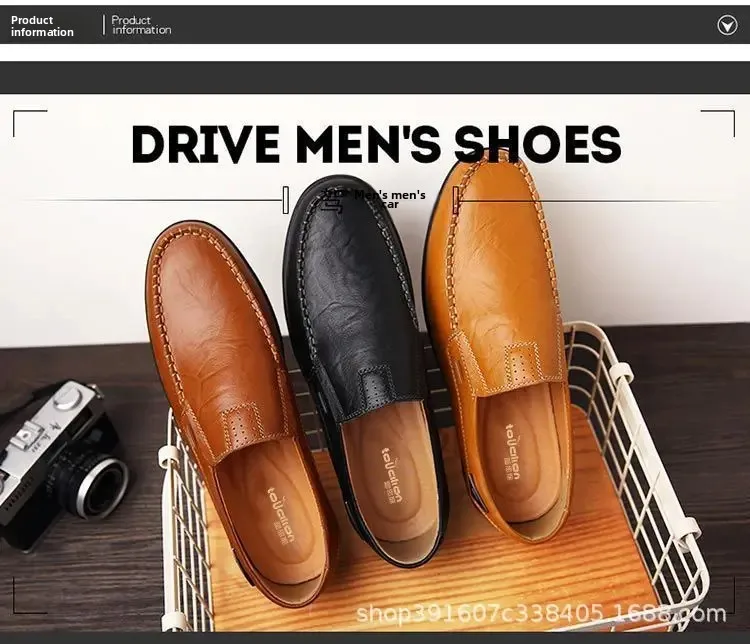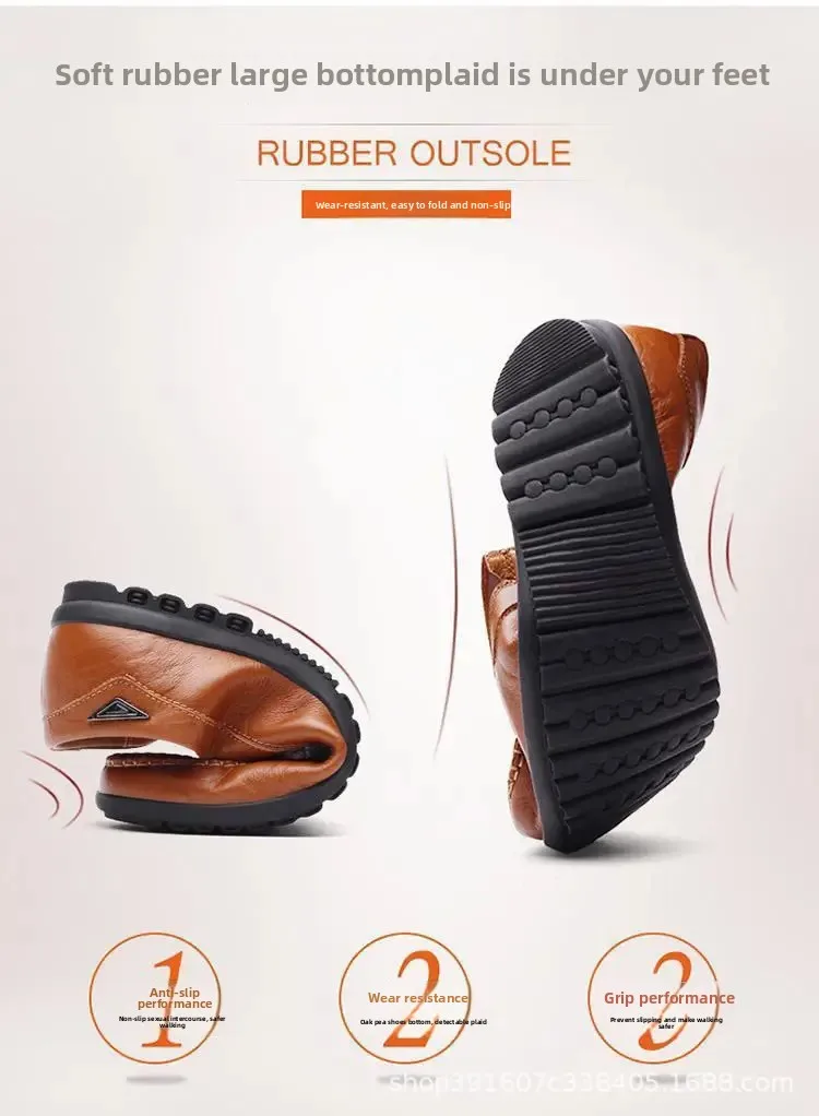 Men’s Casual Leather Shoes Soft Leather Flexible Bottom Business Boots Comfortable Slip-On Dad