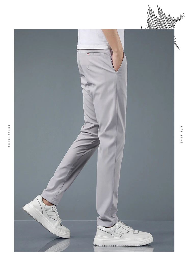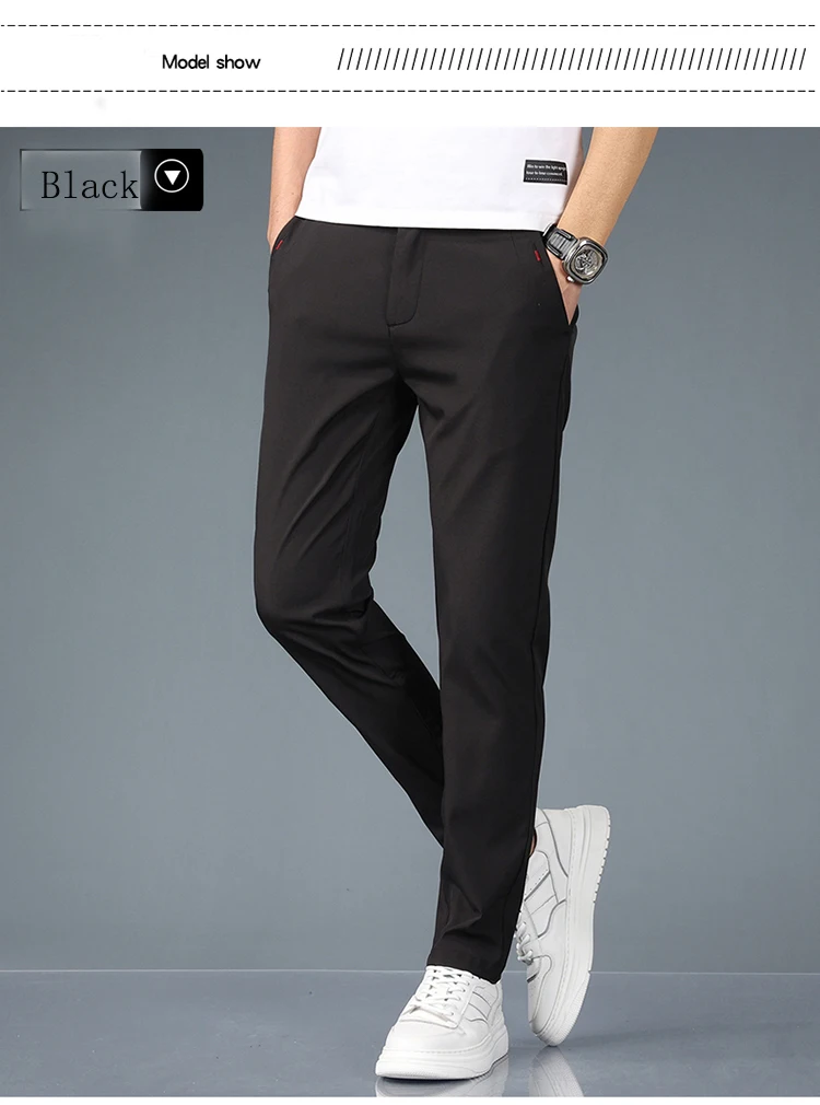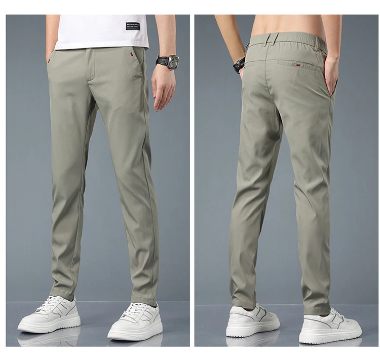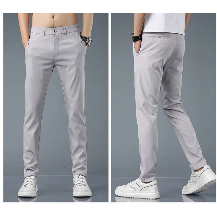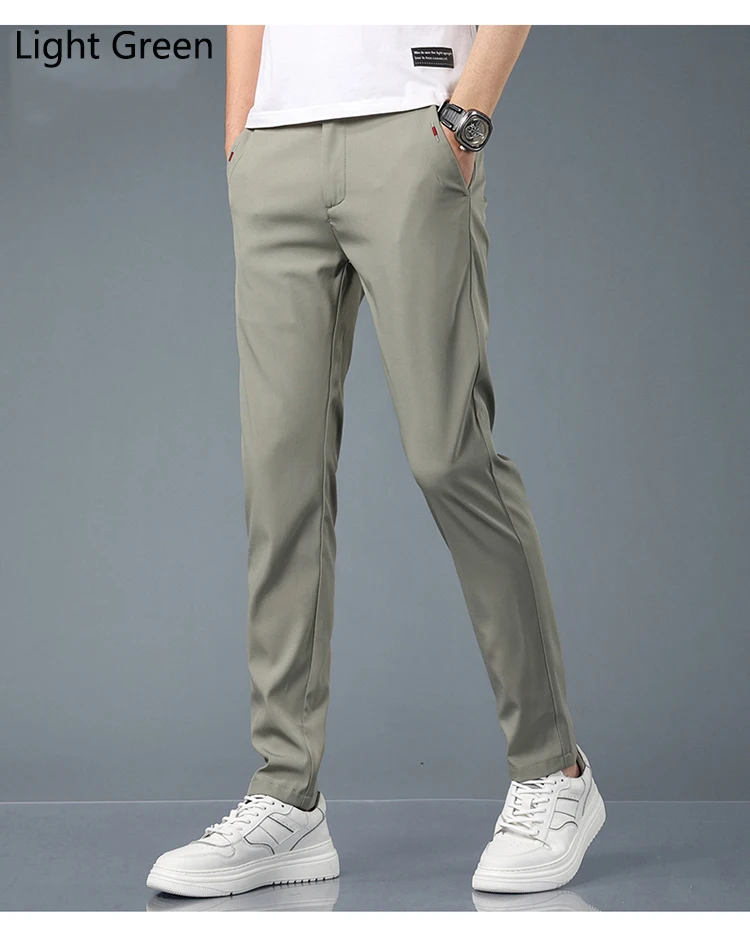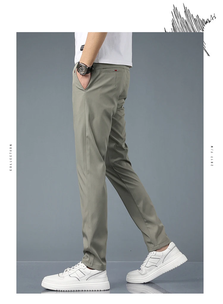 Ultra-thin Ice Silk Quick-dry Casual Pants Men Straight High Elastic Draped Business Korean Spring Summer Trousers Brand Clothes