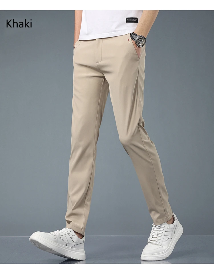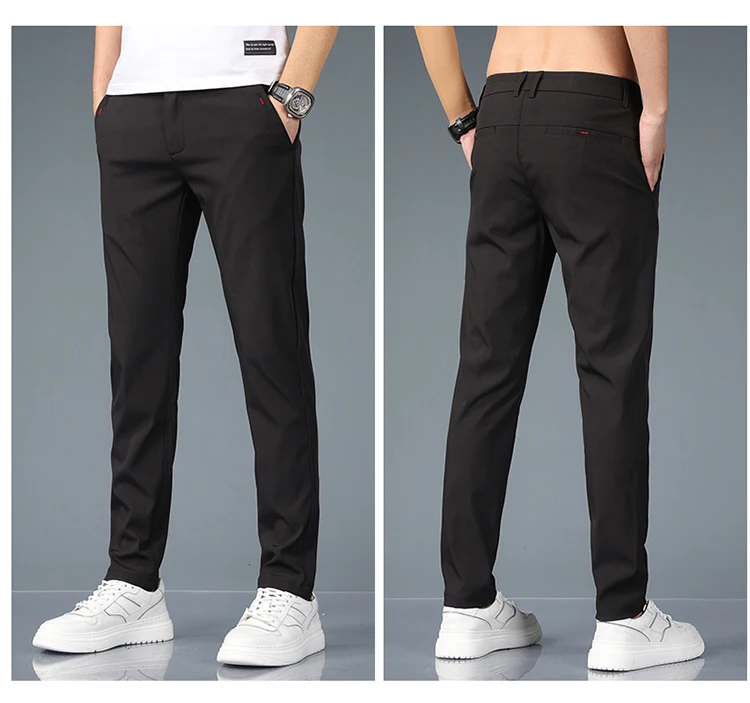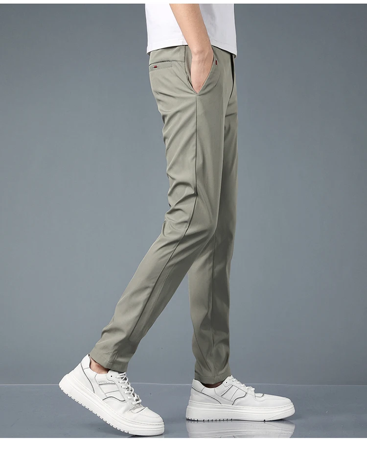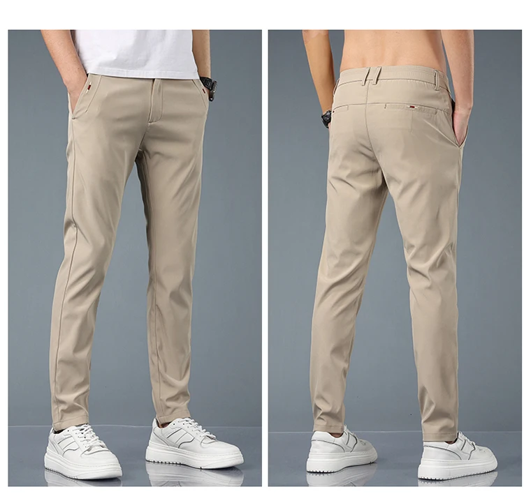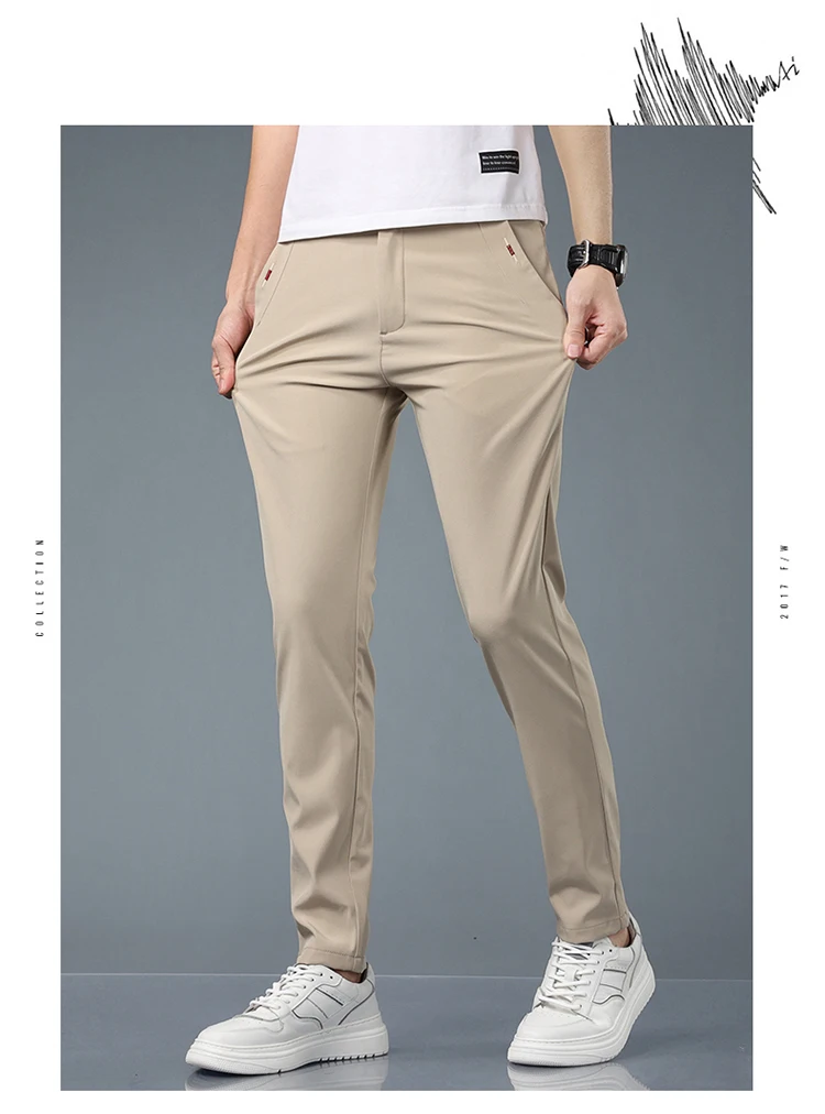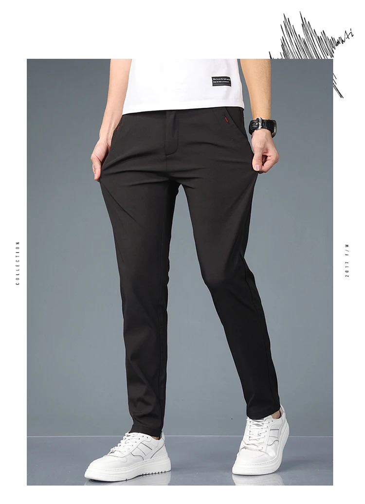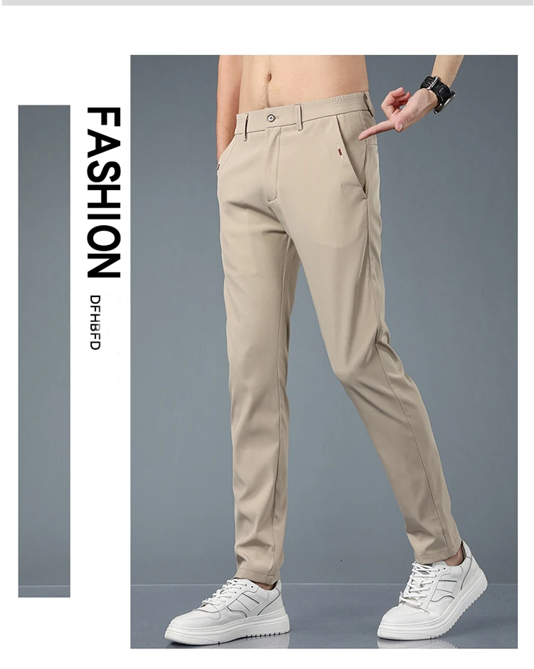 Ultra-thin Ice Silk Quick-dry Casual Pants Men Straight High Elastic Draped Business Korean Spring Summer Trousers Brand Clothes