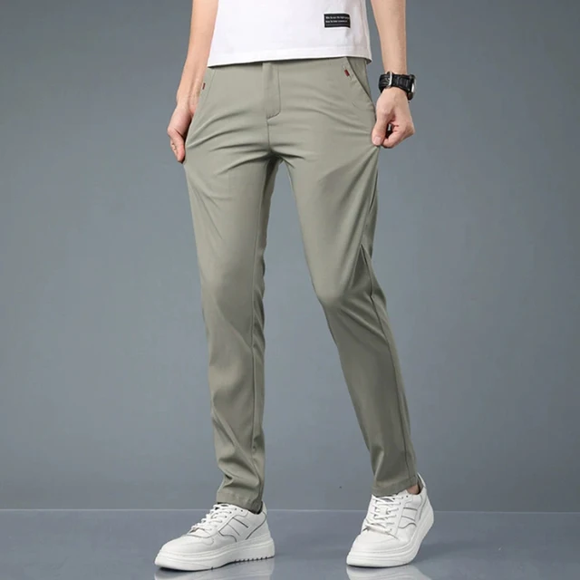 Ultra-thin Ice Silk Quick-dry Casual Pants Men Straight High Elastic Draped Business Korean Spring Summer Trousers Brand Clothes
