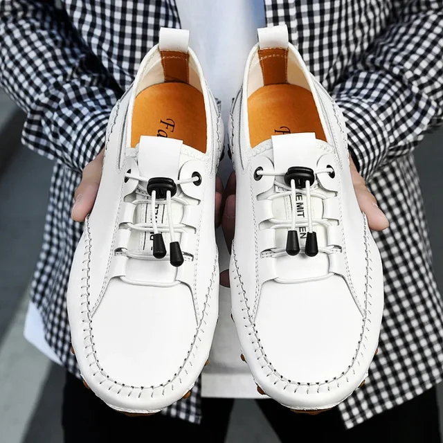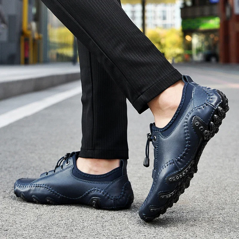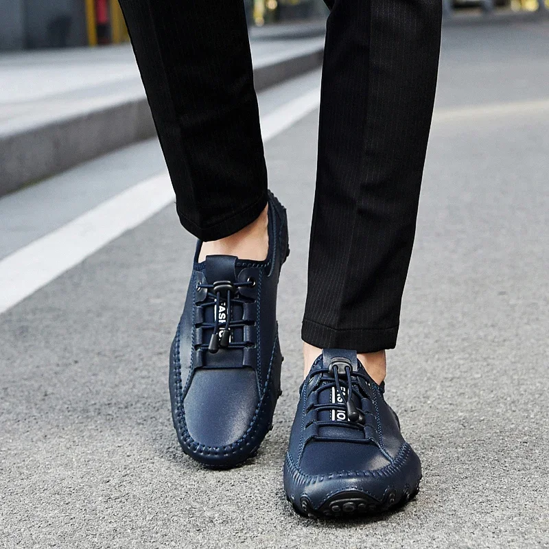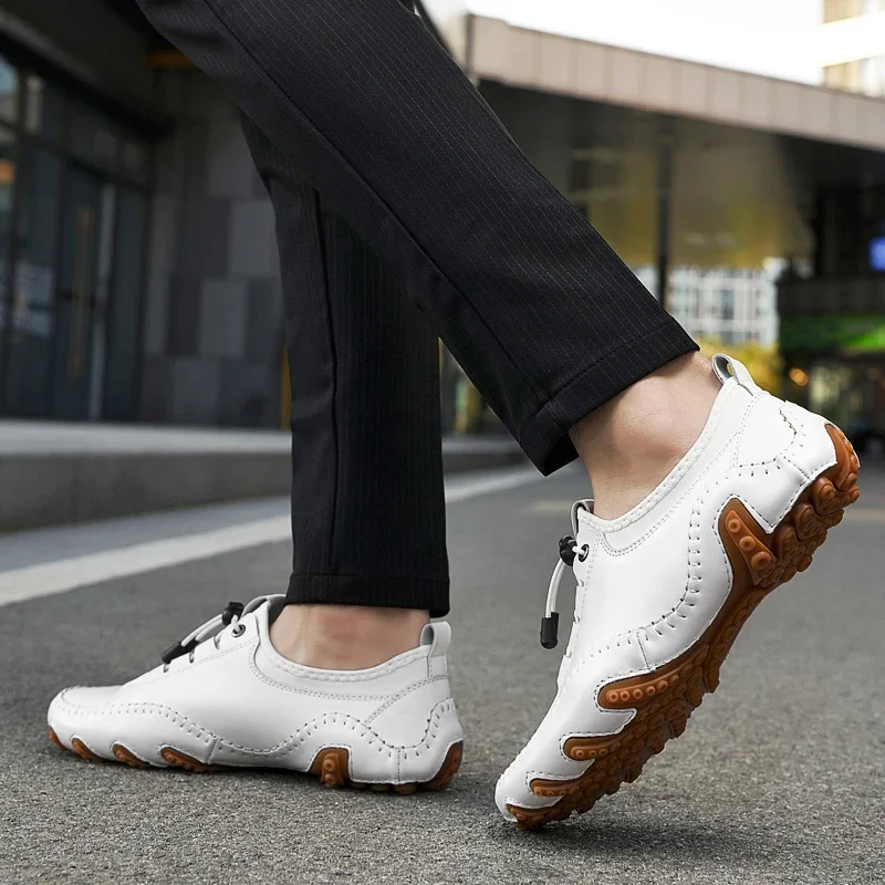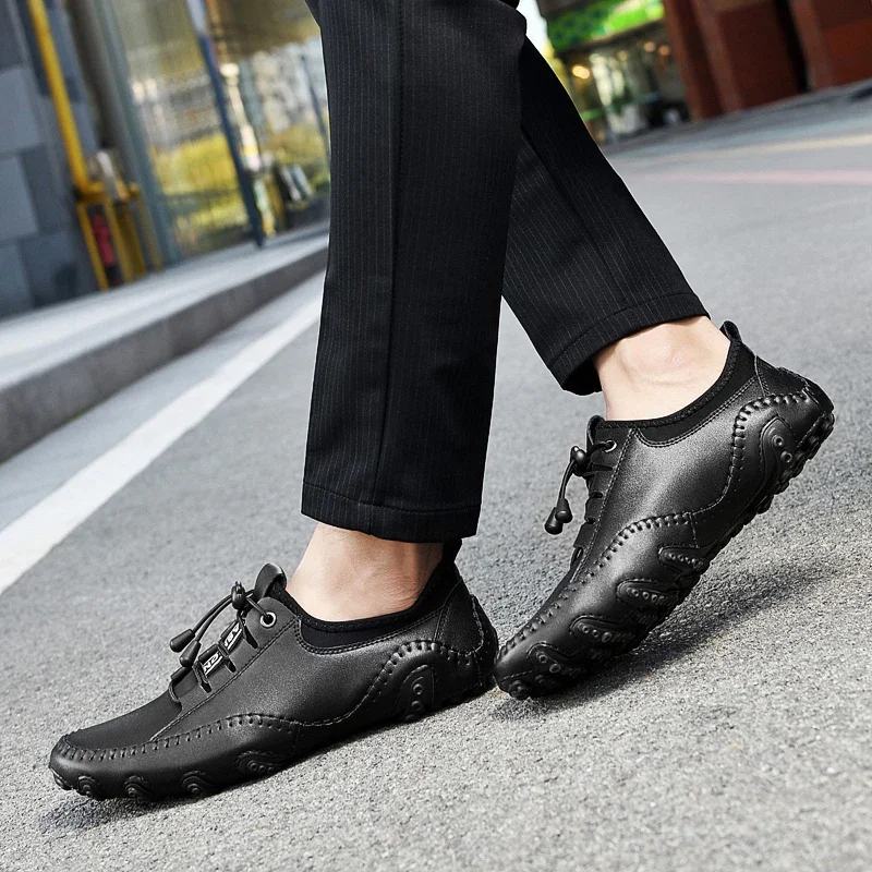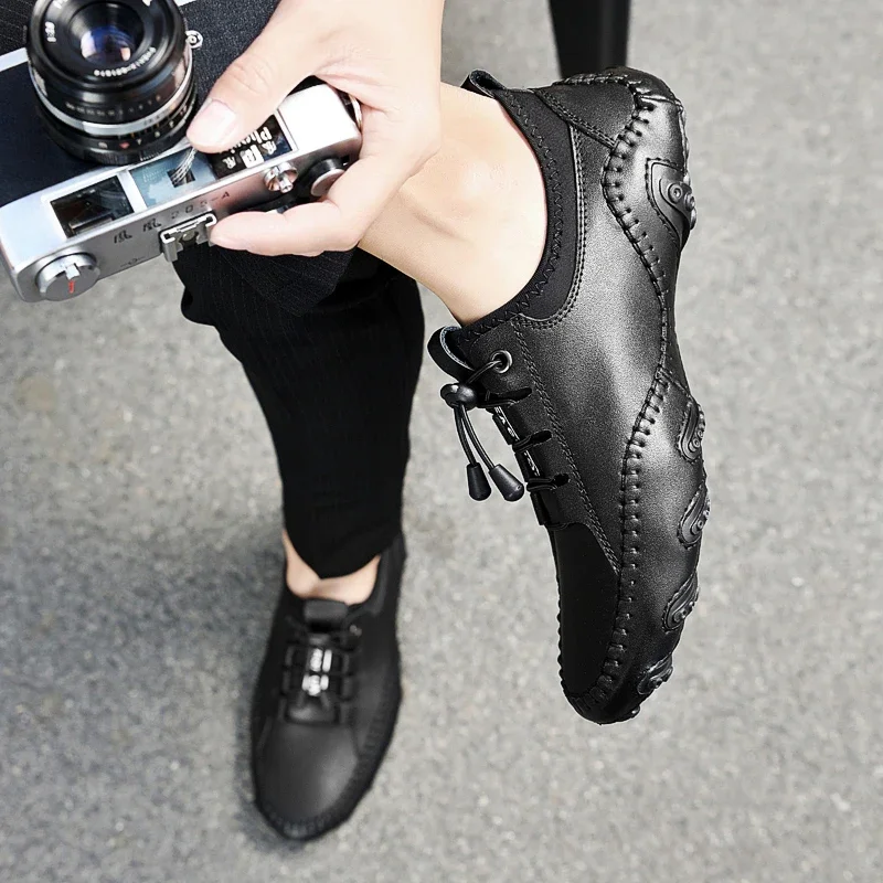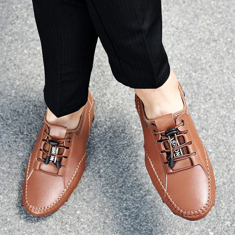 Leather Men Casual Shoes Lightweight Man Loafers Breathable Walking Running Shoes Fashion Slip on Comfortable Male Driving Shoes