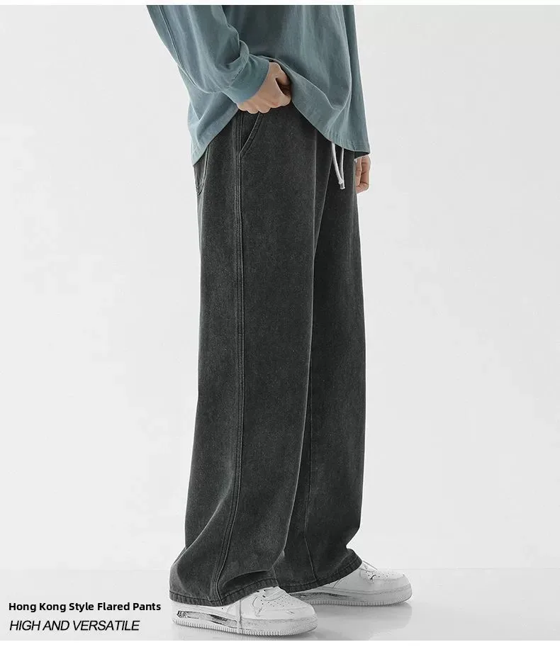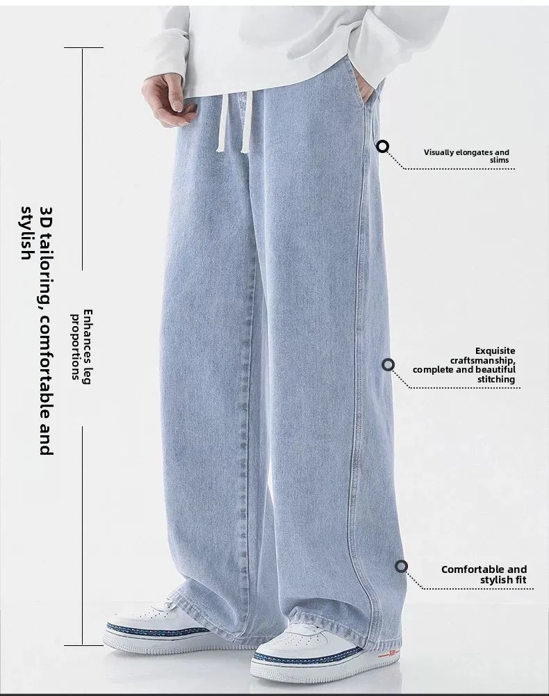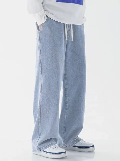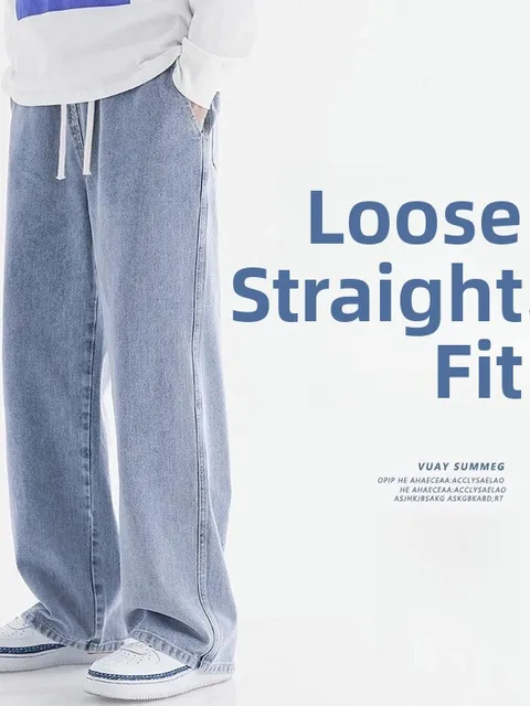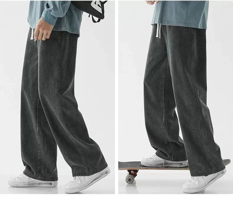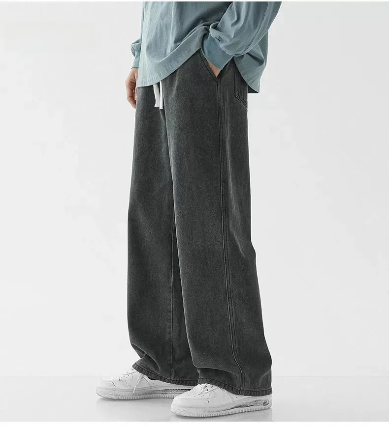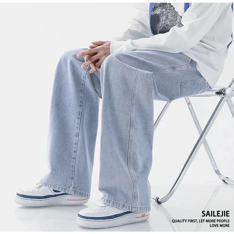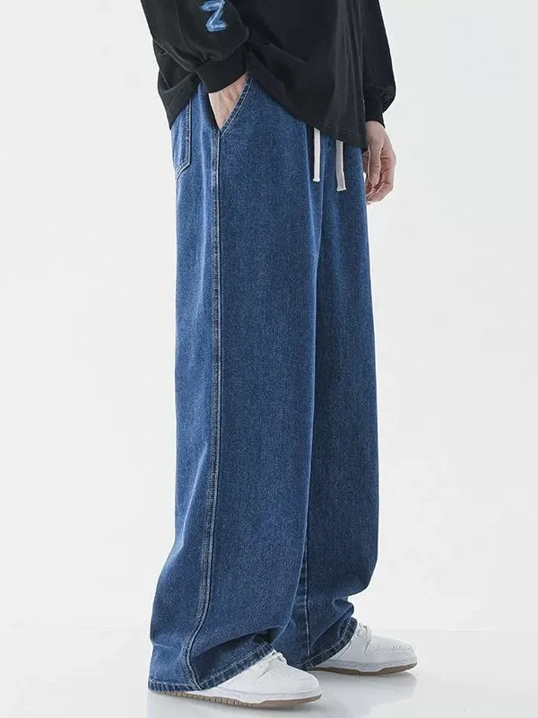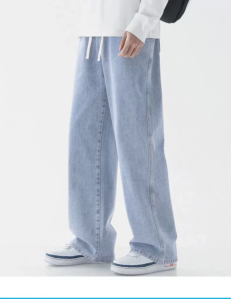 Men’s Casual Straight Leg Jeans Spring Autumn Loose Wide Leg Casual Pants Classic Brand Denim Jeans