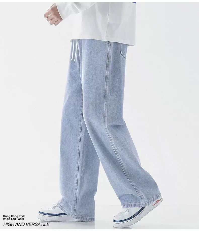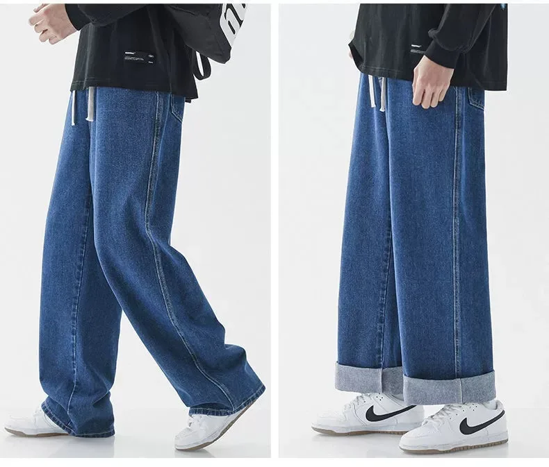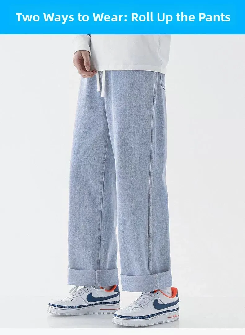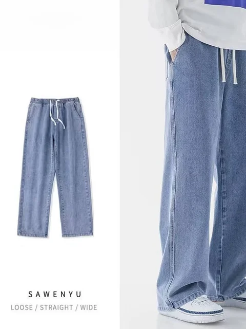 Men's Casual Straight Leg Jeans Spring Autumn Loose Wide Leg Casual Pants Classic Brand Denim Jeans mid Waist Waed