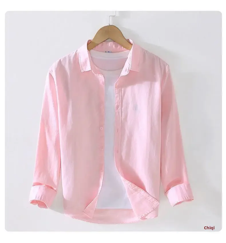 • Premium Linen Material :Crafted from high-quality linen, this men’s shirt offers a luxurious feel and breathable comfort, perfect for spring and summer.