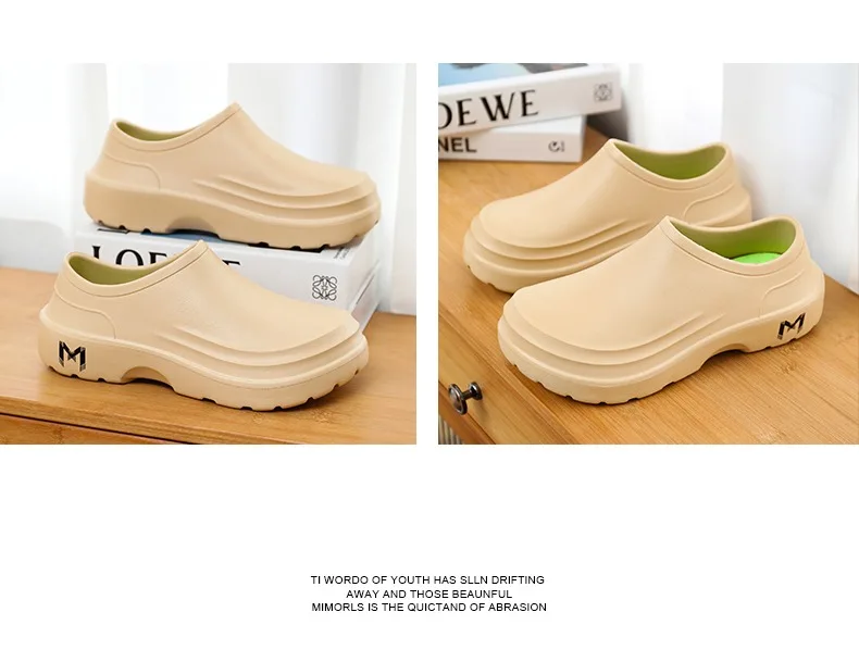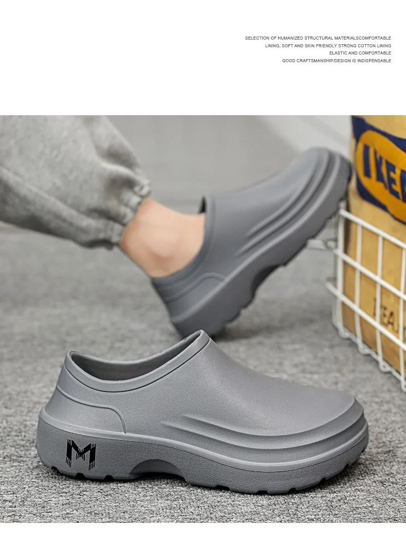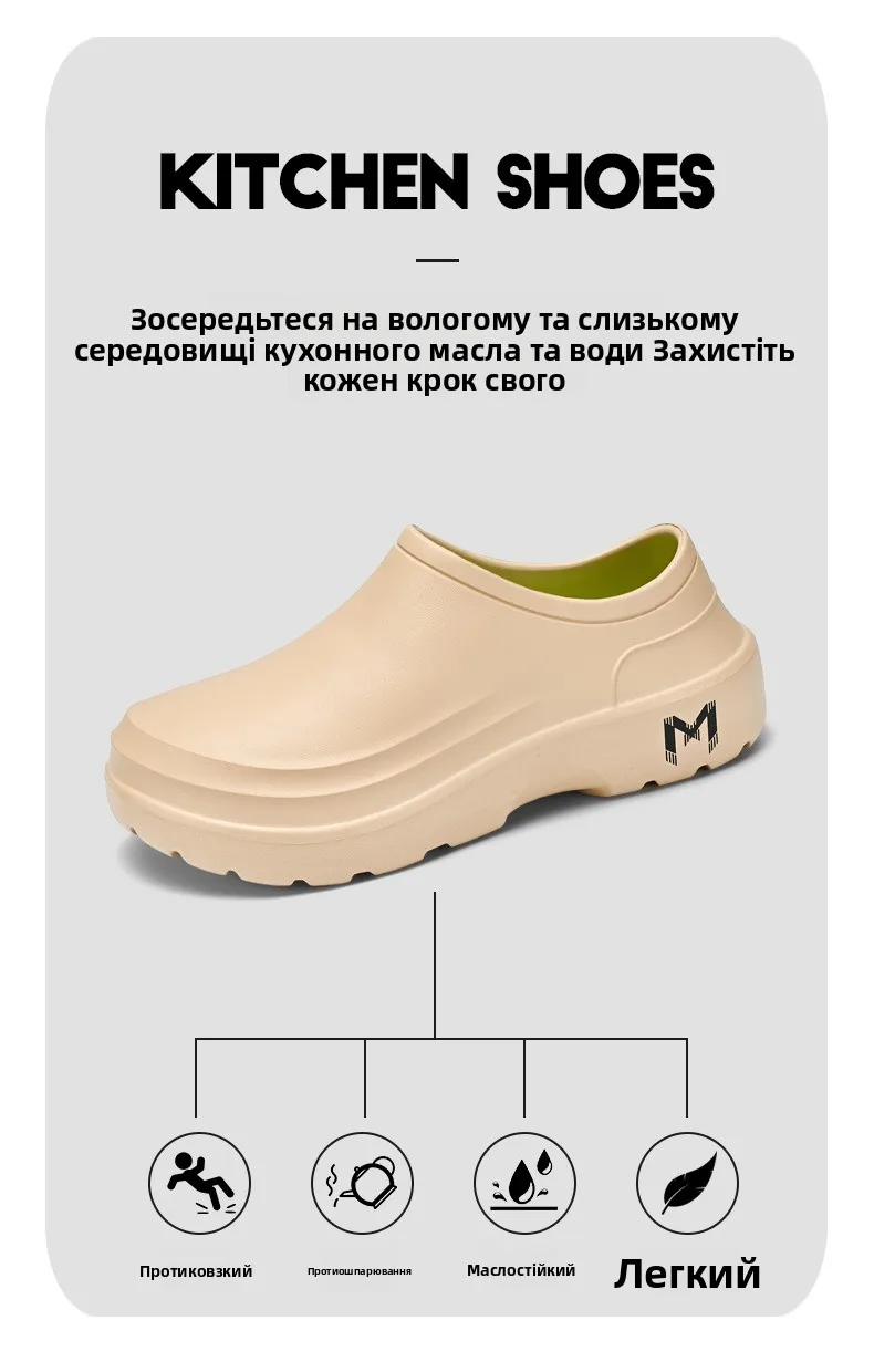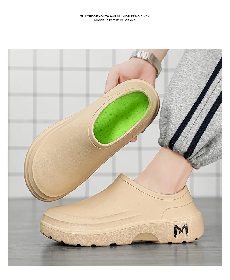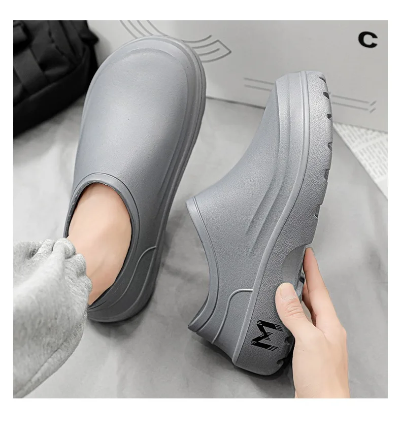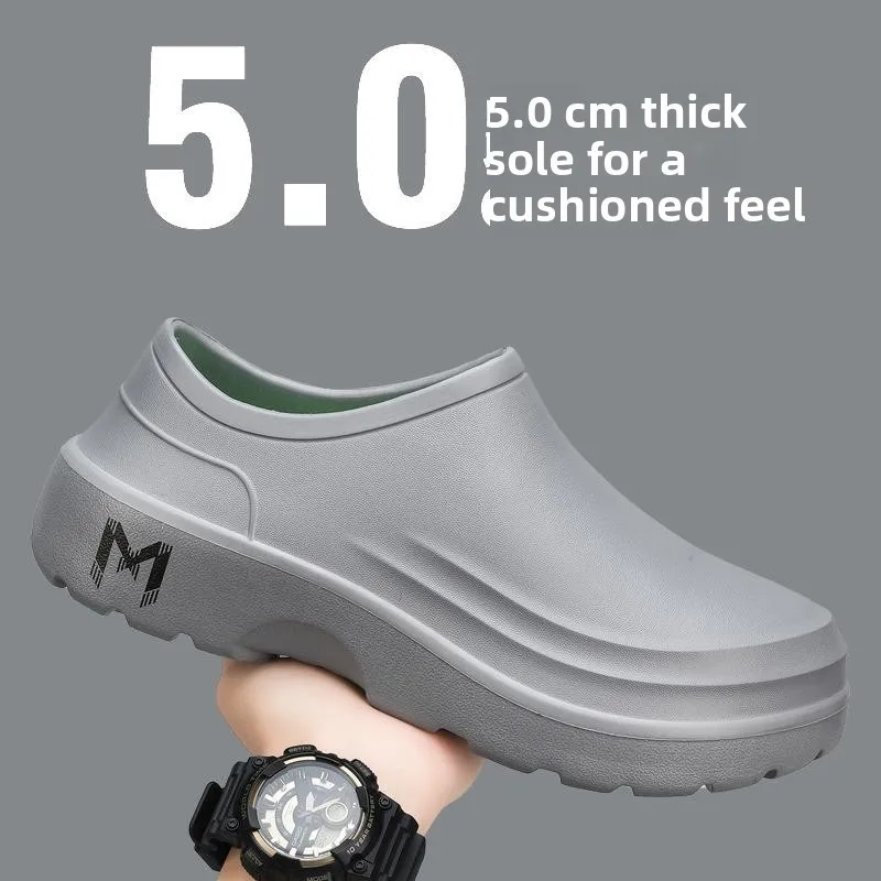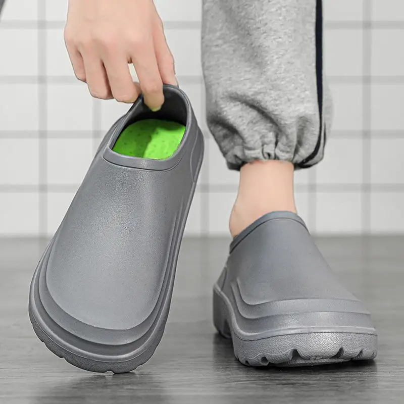 Crafted from high-quality PU and rubber, these shoes offer superior anti-slip and waterproof properties, perfect for kitchen use during summer.