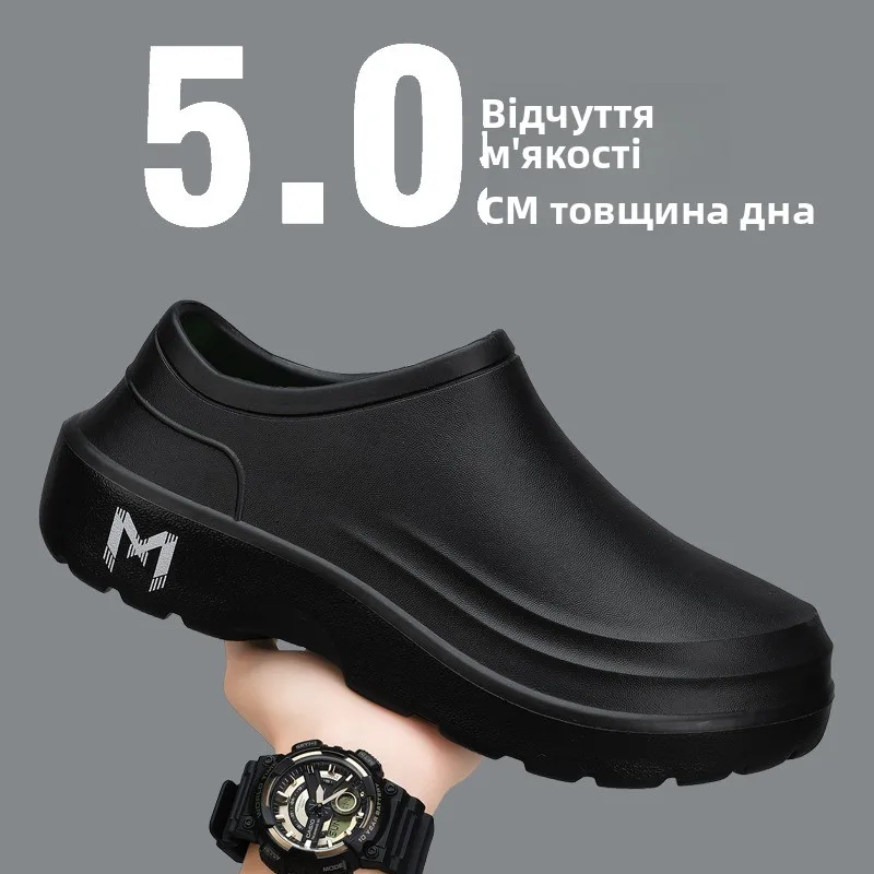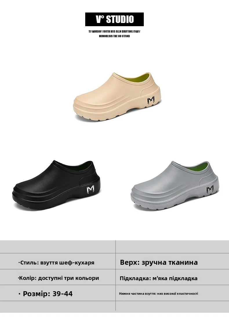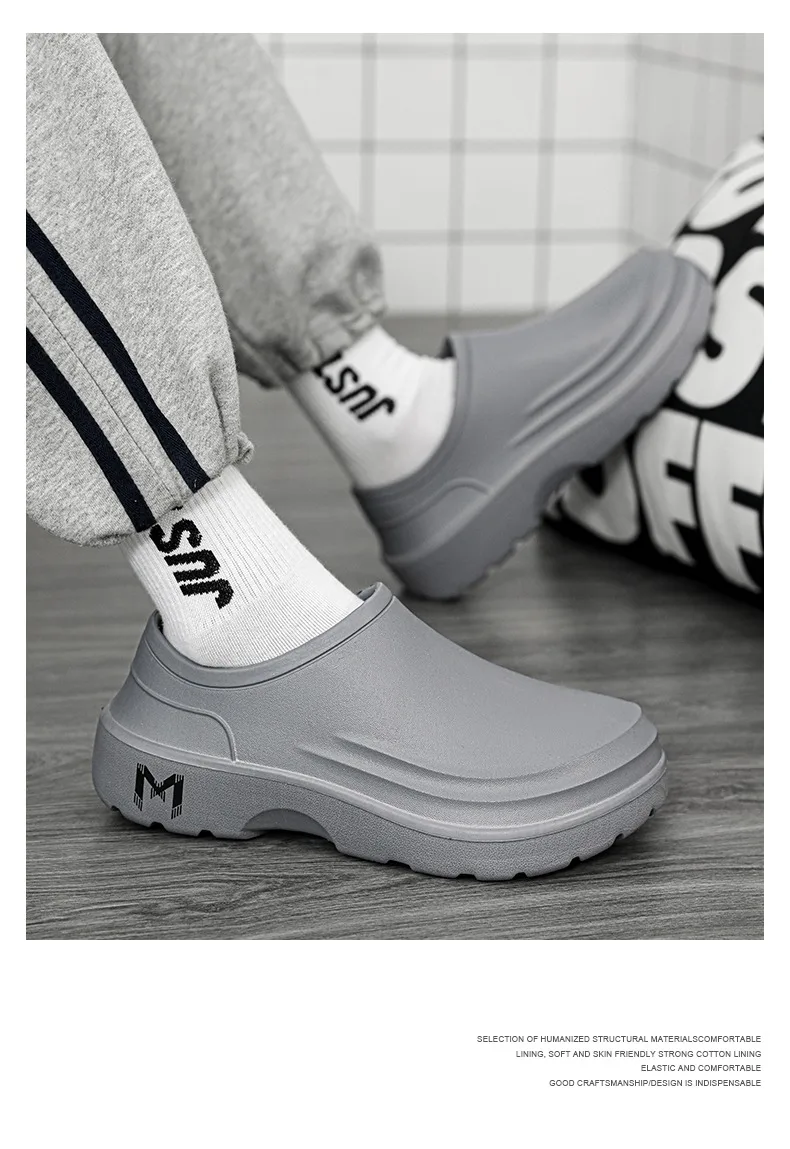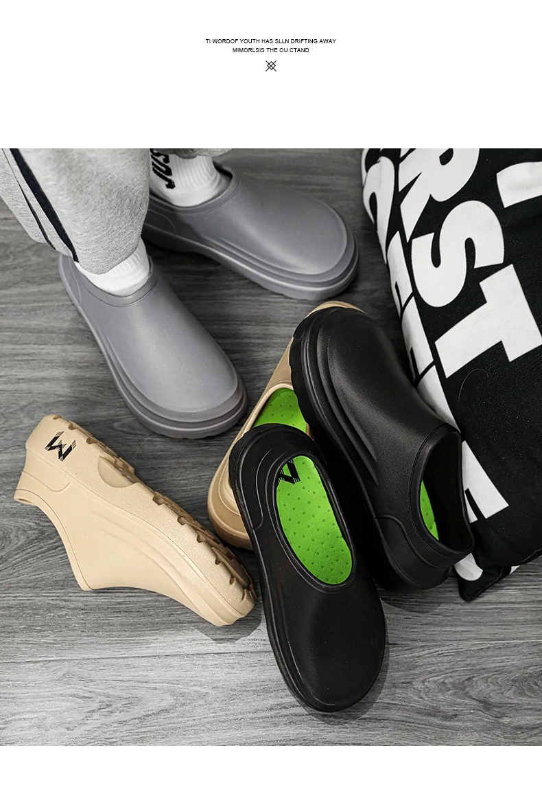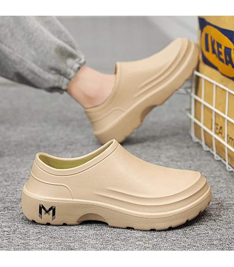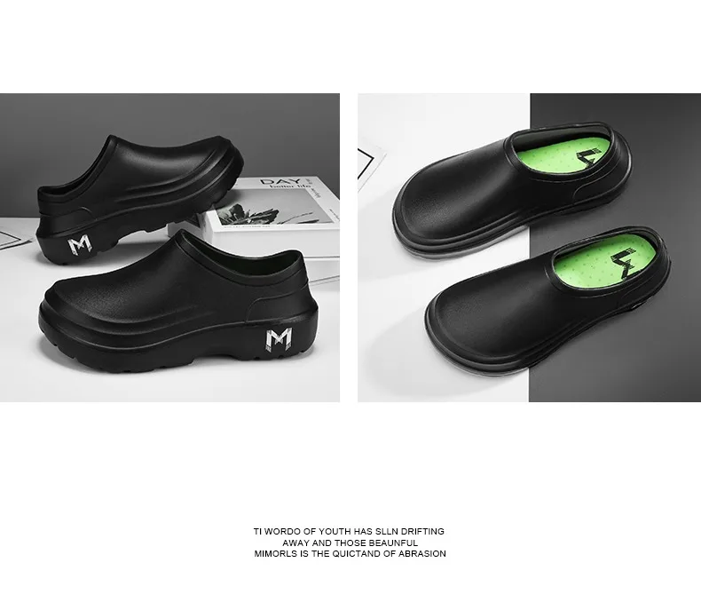 Crafted from high-quality PU and rubber, these shoes offer superior anti-slip and waterproof properties, perfect for kitchen use during summer.