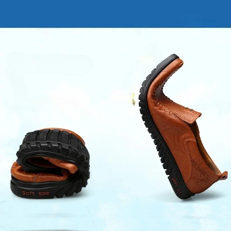 Summer New Men Leather Shoes soft soled Casual Flat Shoes Outdoor Walking shoes Comfort fashion soft leather shoes Loafers