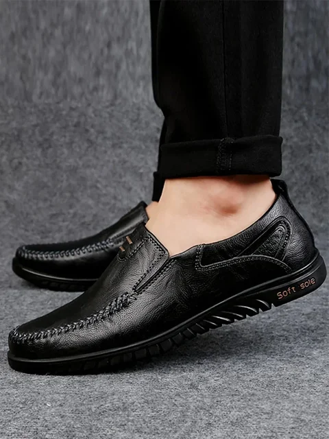 Men’s Comfortable Soft-Soled Slip-On Loafers Versatile Casual Business Formal Leather Shoes Sneakers