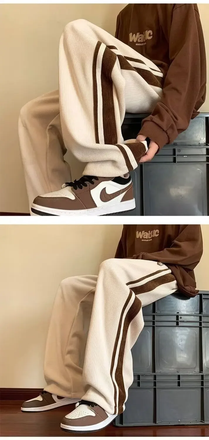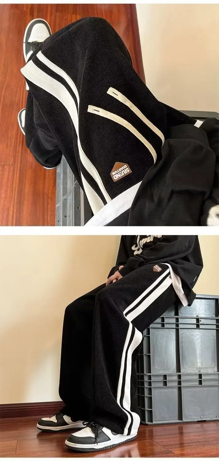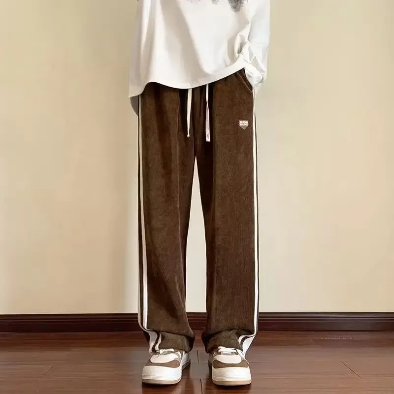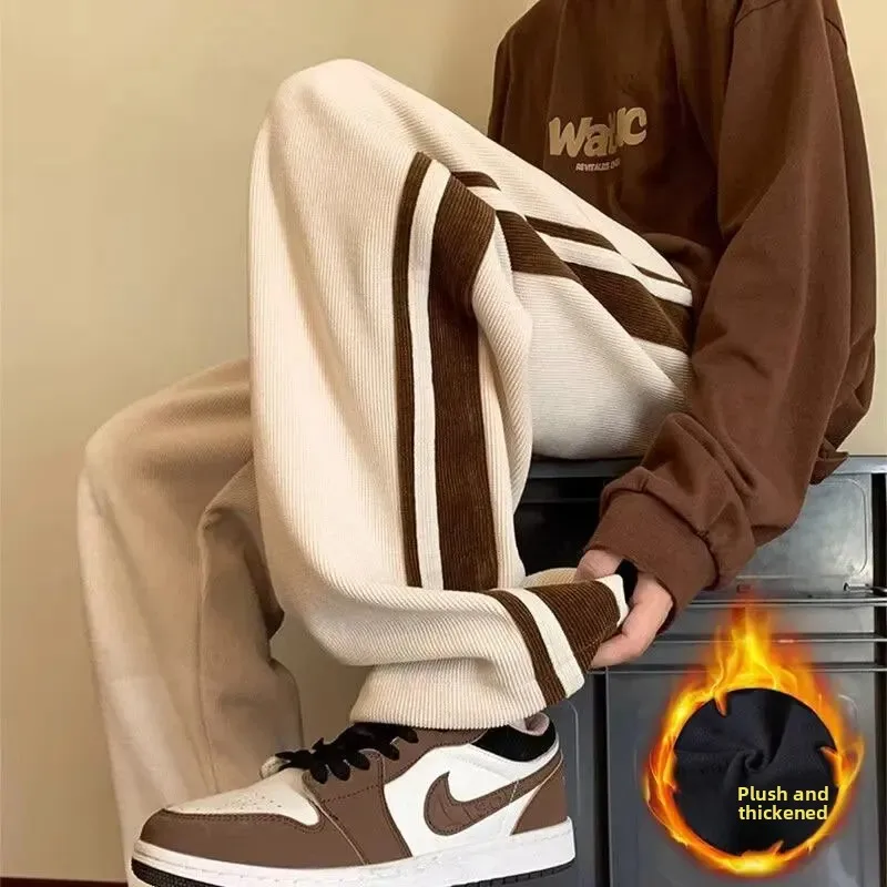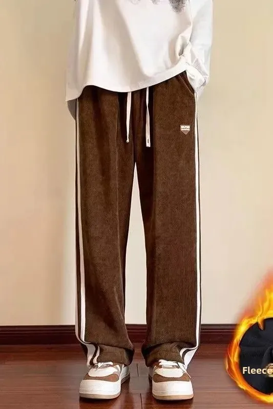 Men’s Corduroy Pants Autumn Winter Loose Drapey Trendy American Sweatpants Sporty Casual Fleece