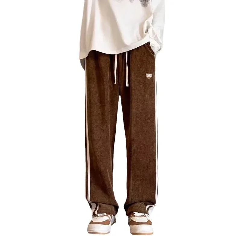 Men’s Corduroy Pants Autumn Winter Loose Drapey Trendy American Sweatpants Sporty Casual Fleece