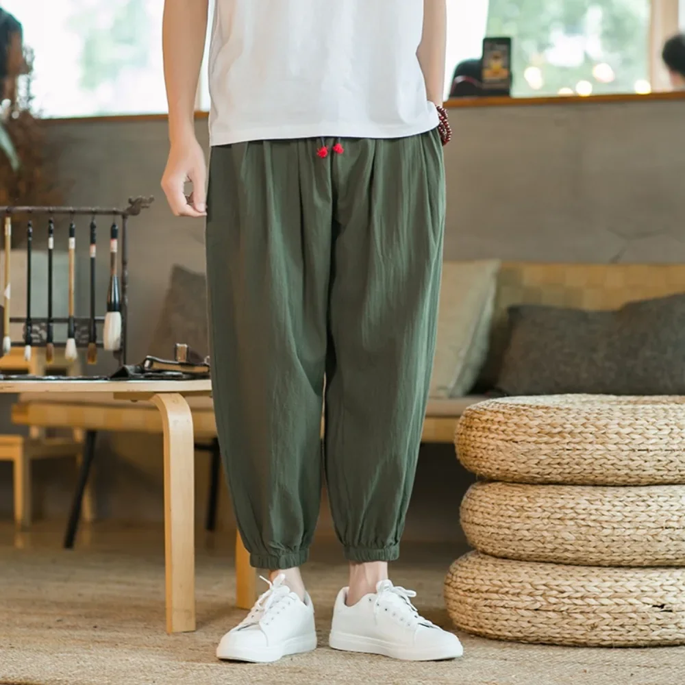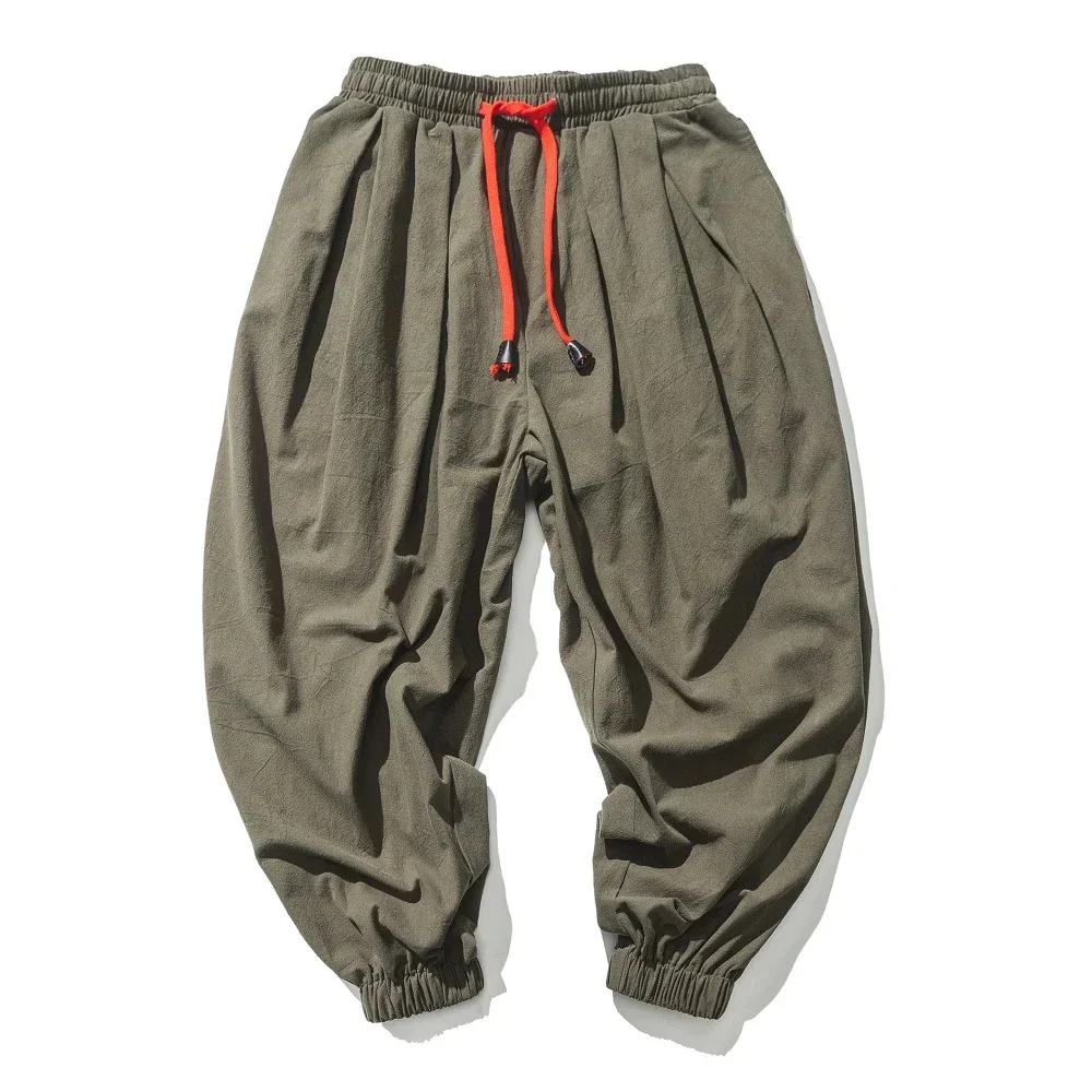 Men Drop Crotch Trousers Cotton and Linen Pants Harem Pants Baggy Casual Oversize Loose Joggers Wide Leg Pants Yoga Hip Hop