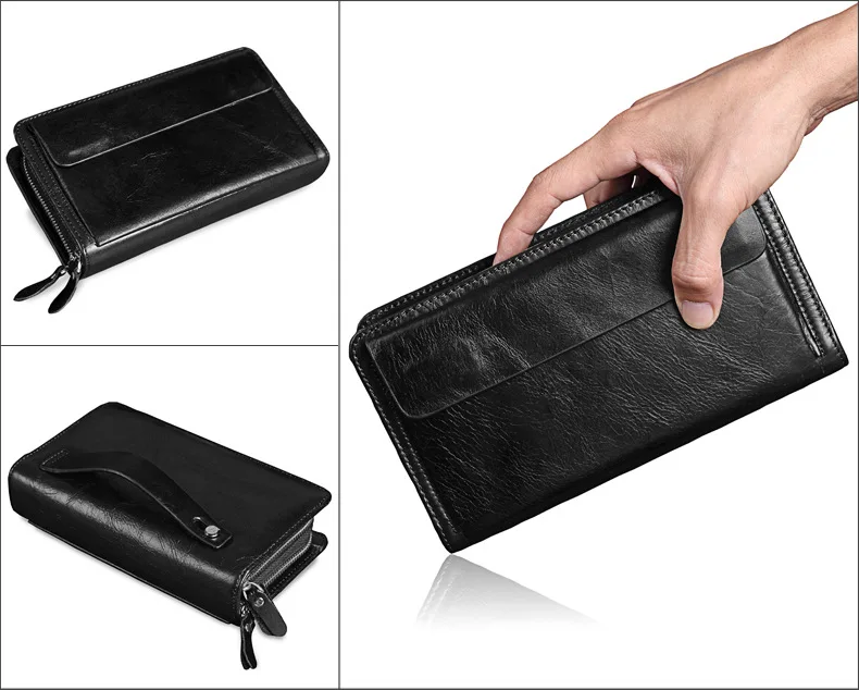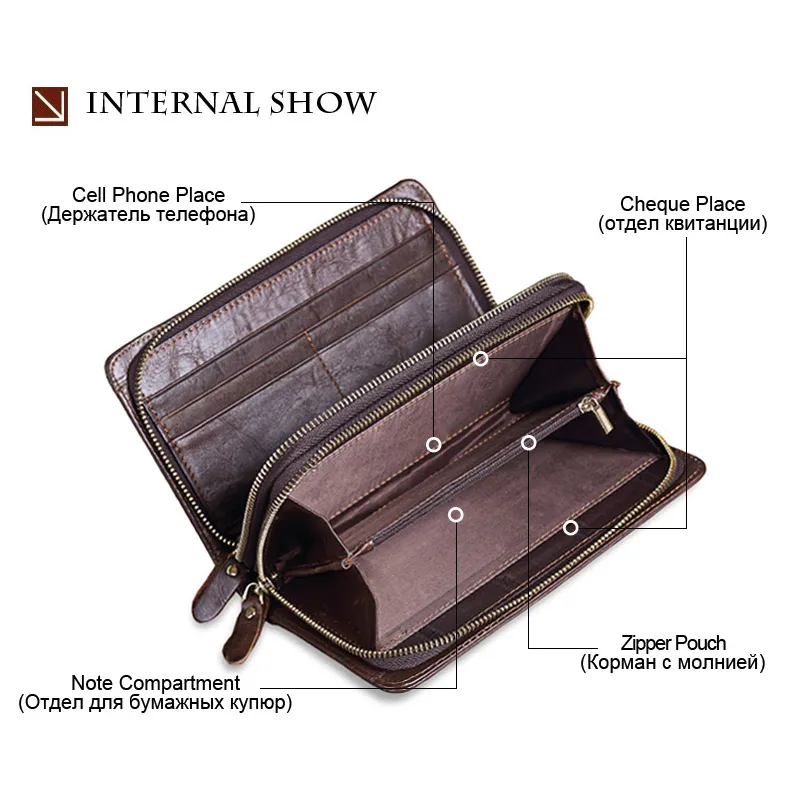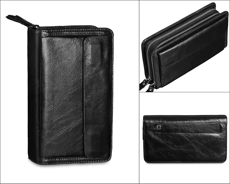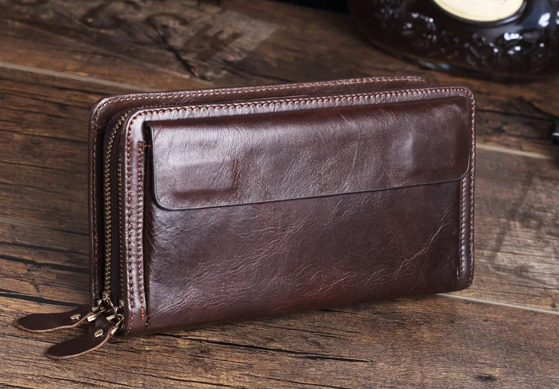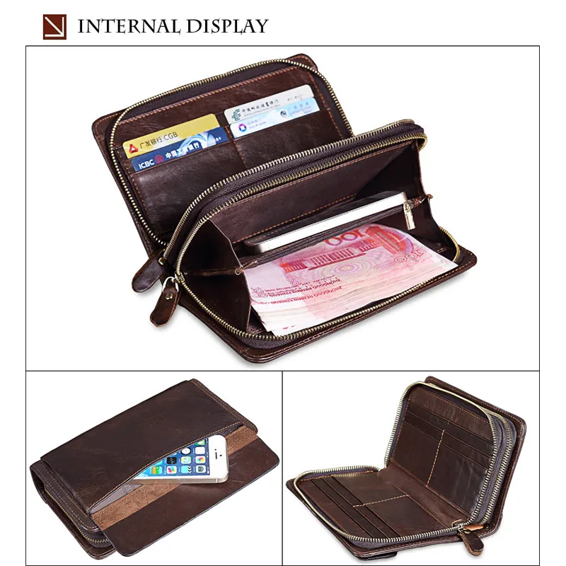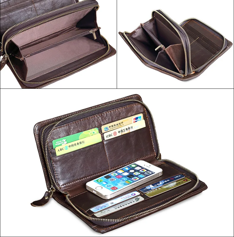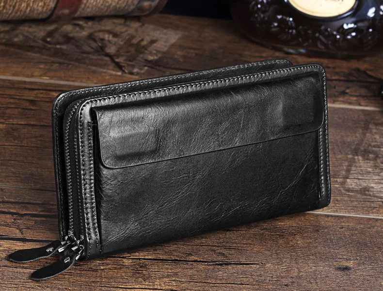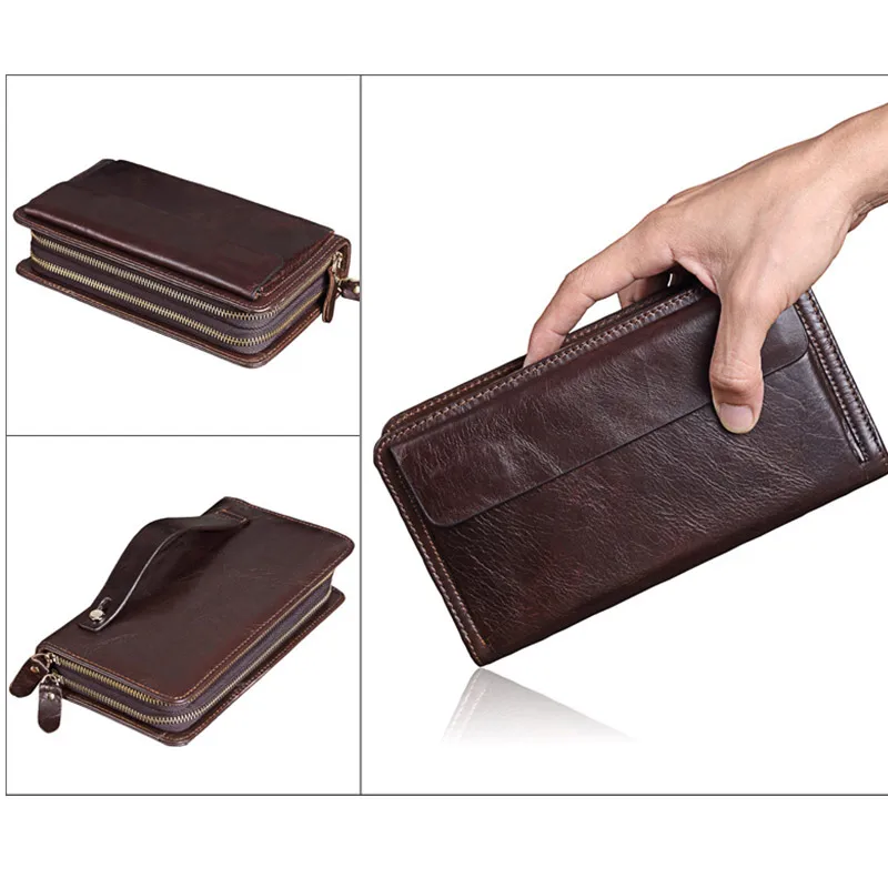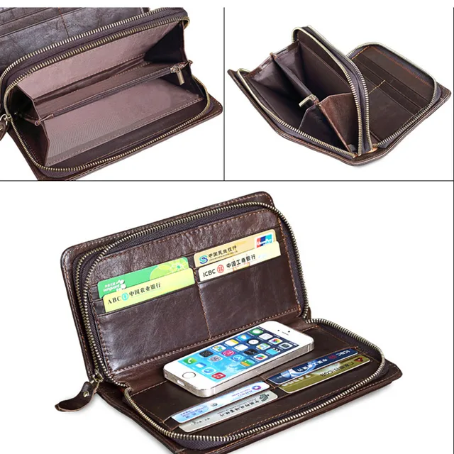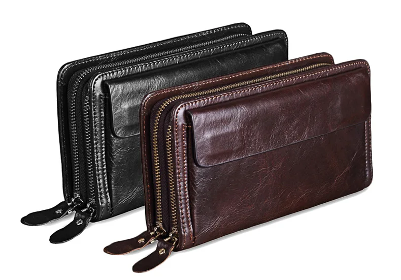 Men's Double Zipper Clutch Wallet Long Genuine Leather Phone Bag Purse Large Size Coin Card Holder Money Wallet