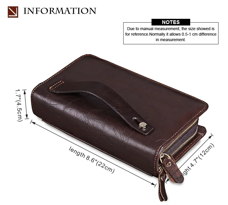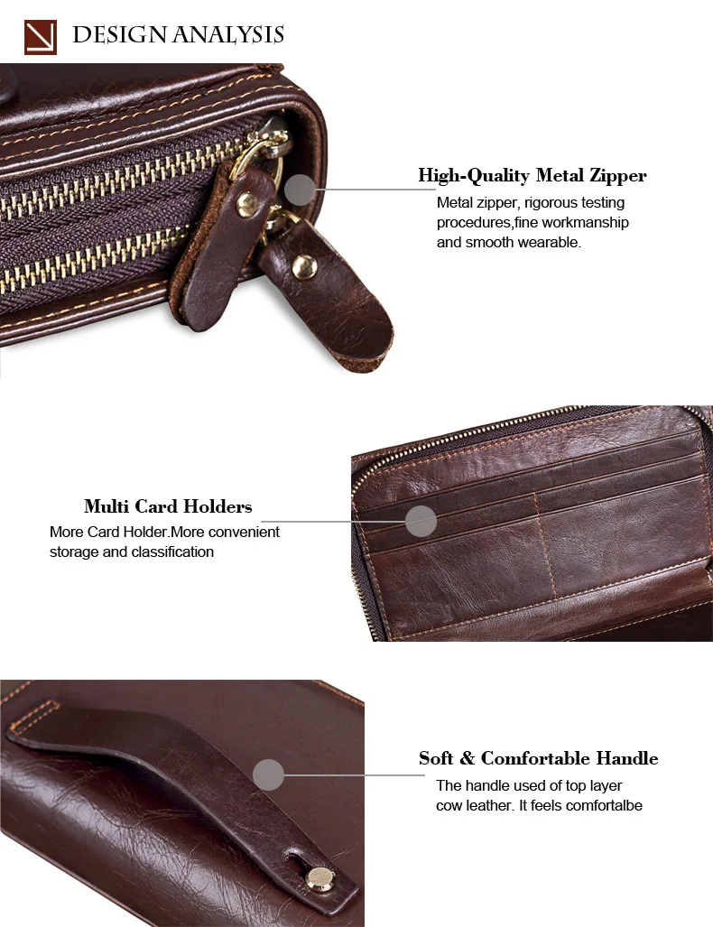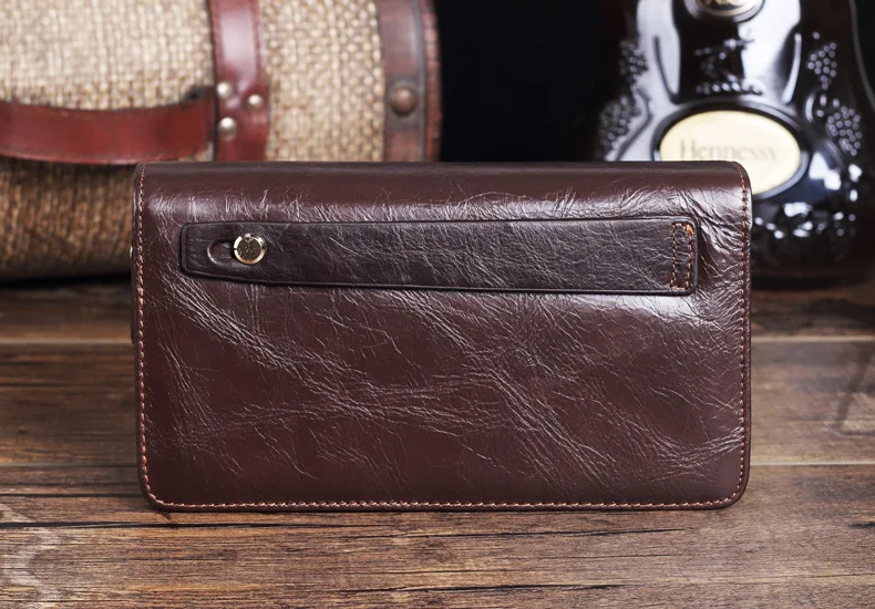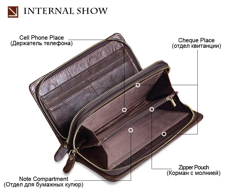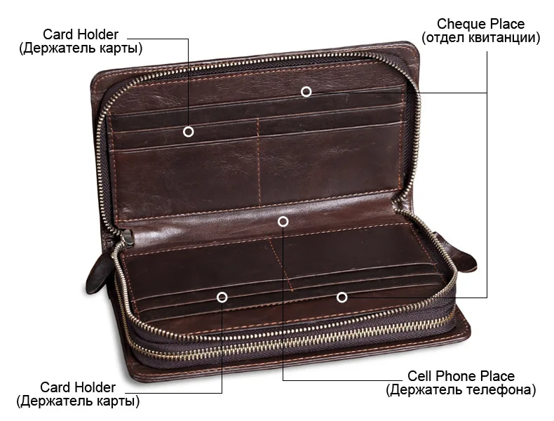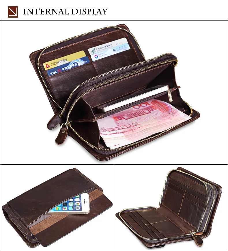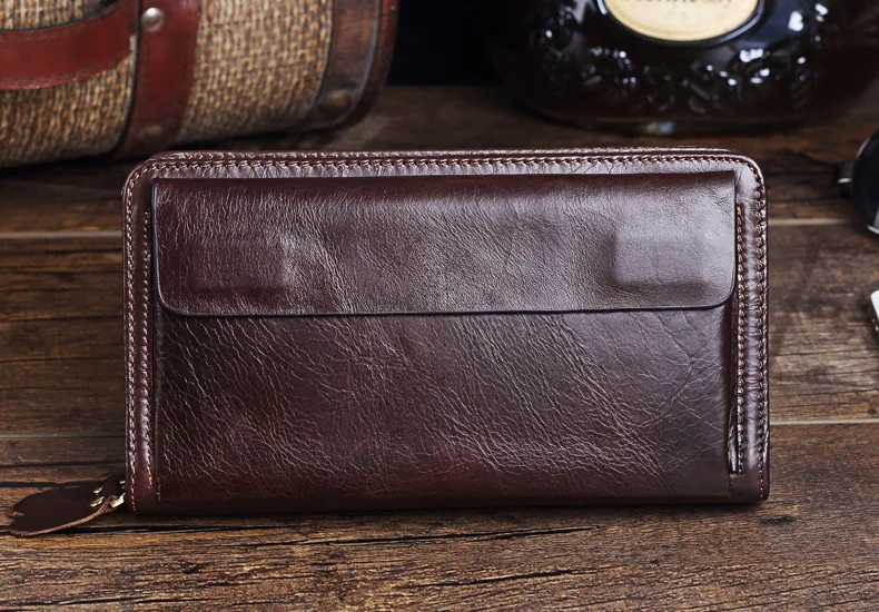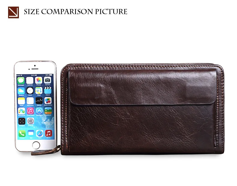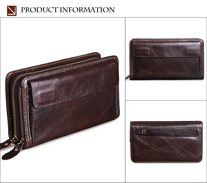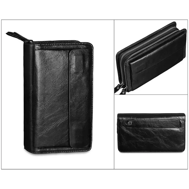 Men's Double Zipper Clutch Wallet Long Genuine Leather Phone Bag Purse Large Size Coin Card Holder Money Wallet