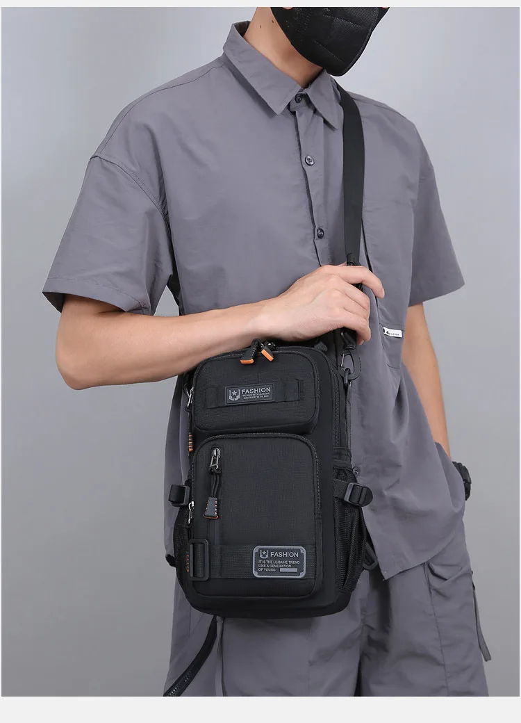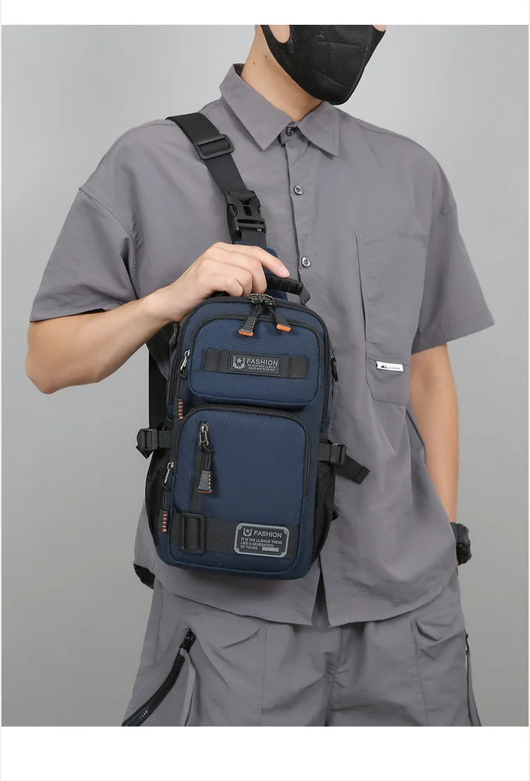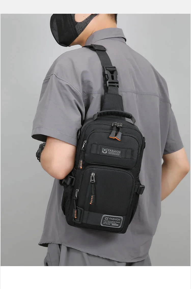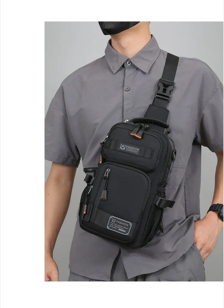 新款男士户外胸包简约百搭单肩斜挎包多功能潮牌大容量单肩包