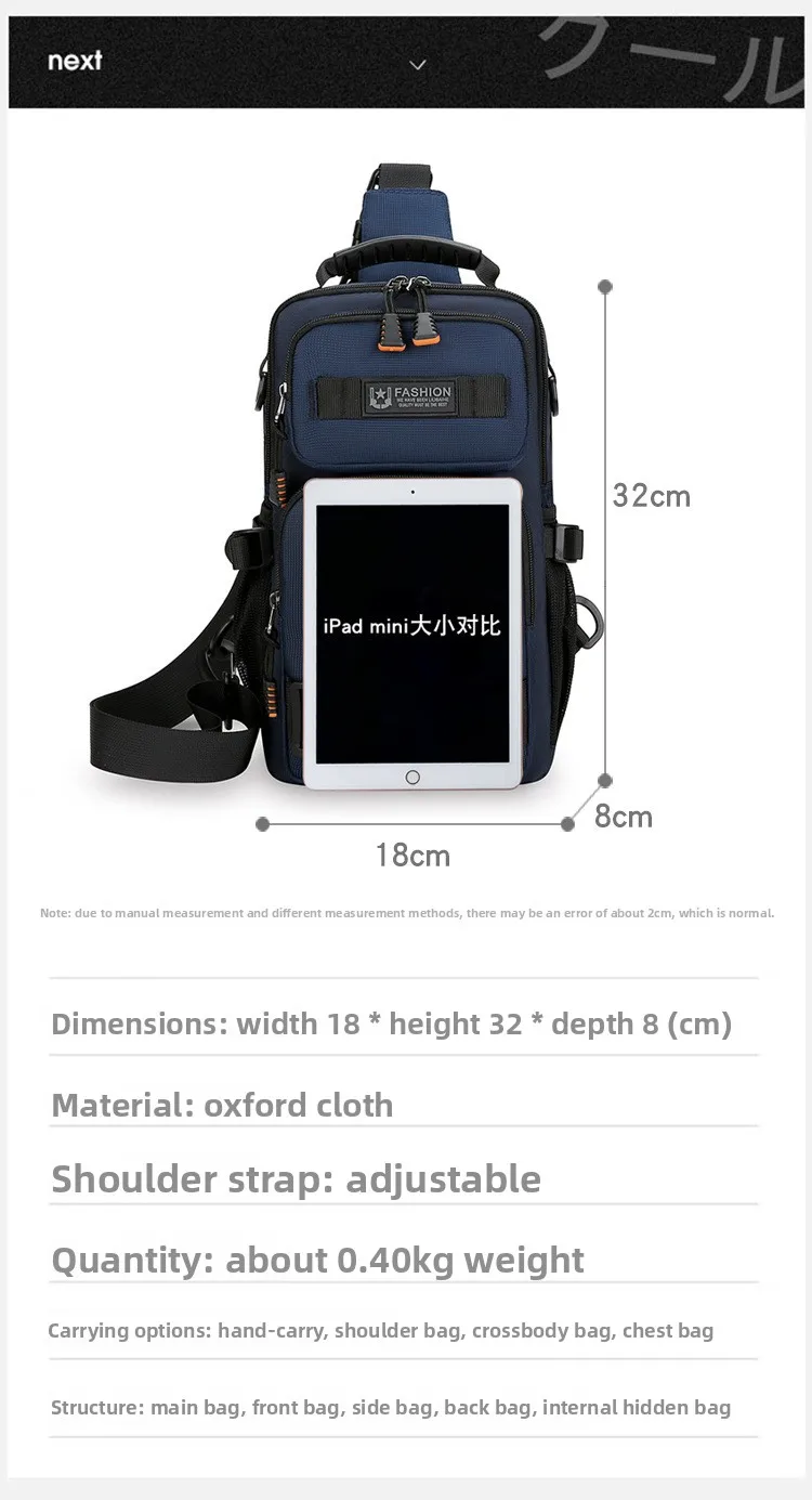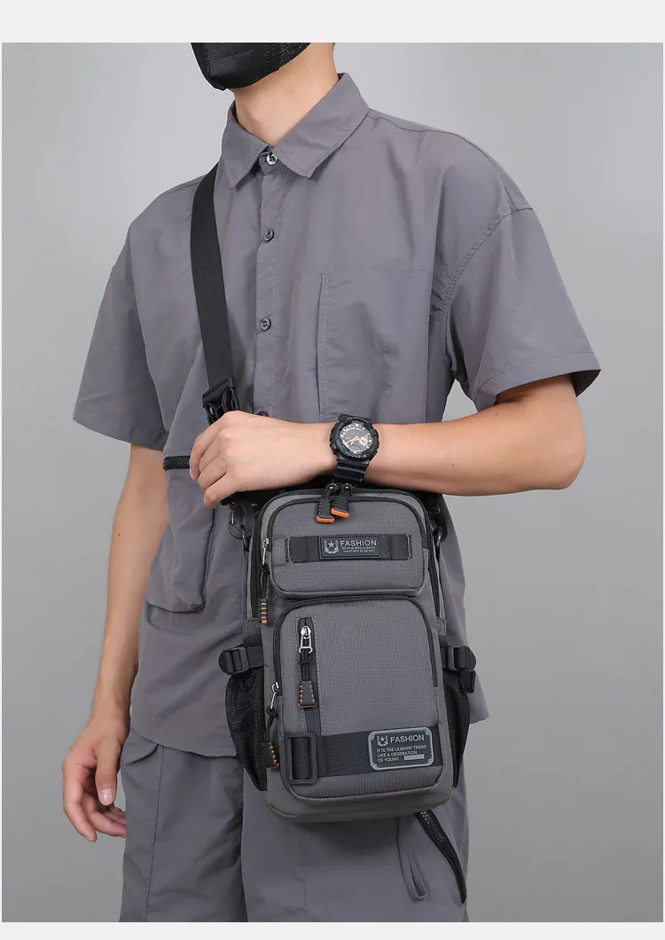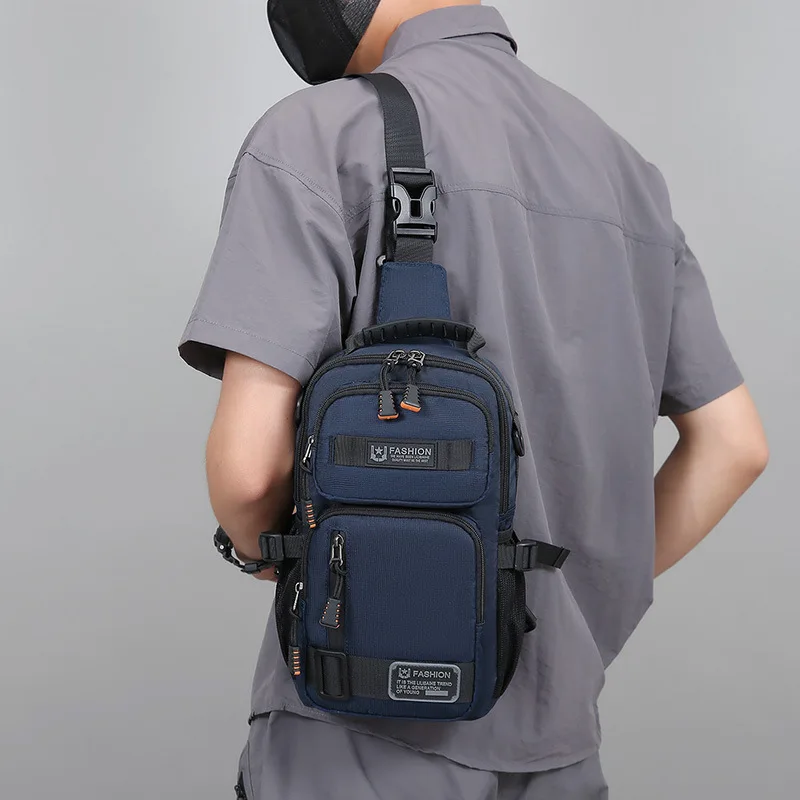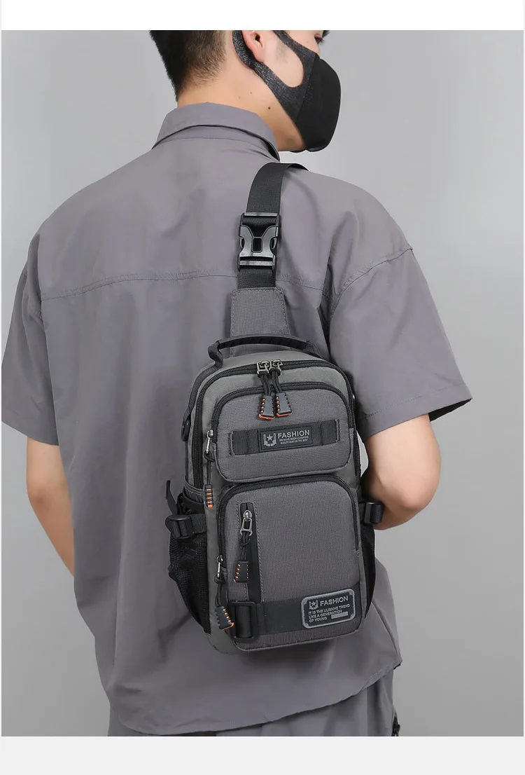 新款男士户外胸包简约百搭单肩斜挎包多功能潮牌大容量单肩包