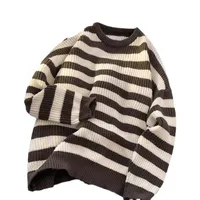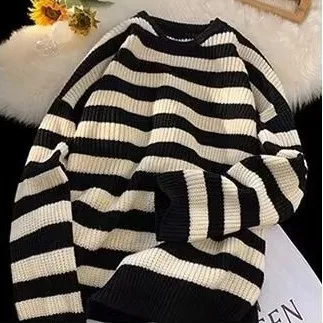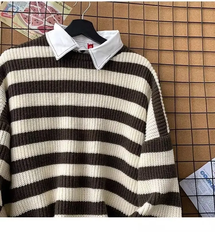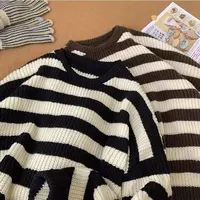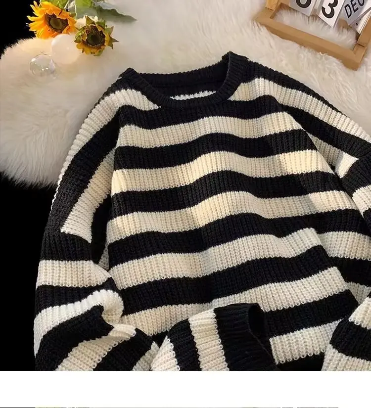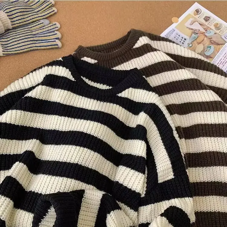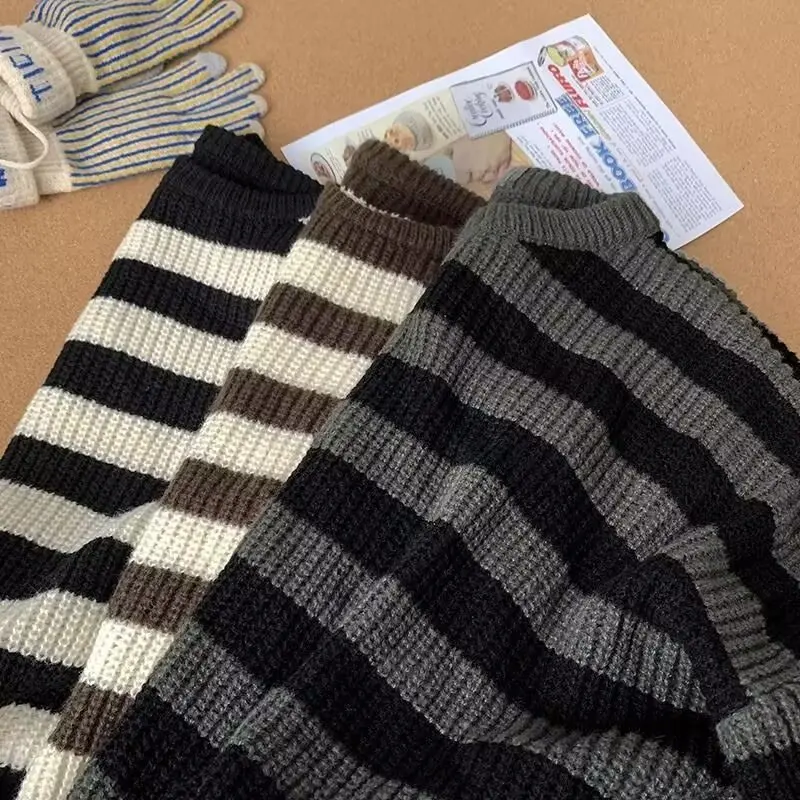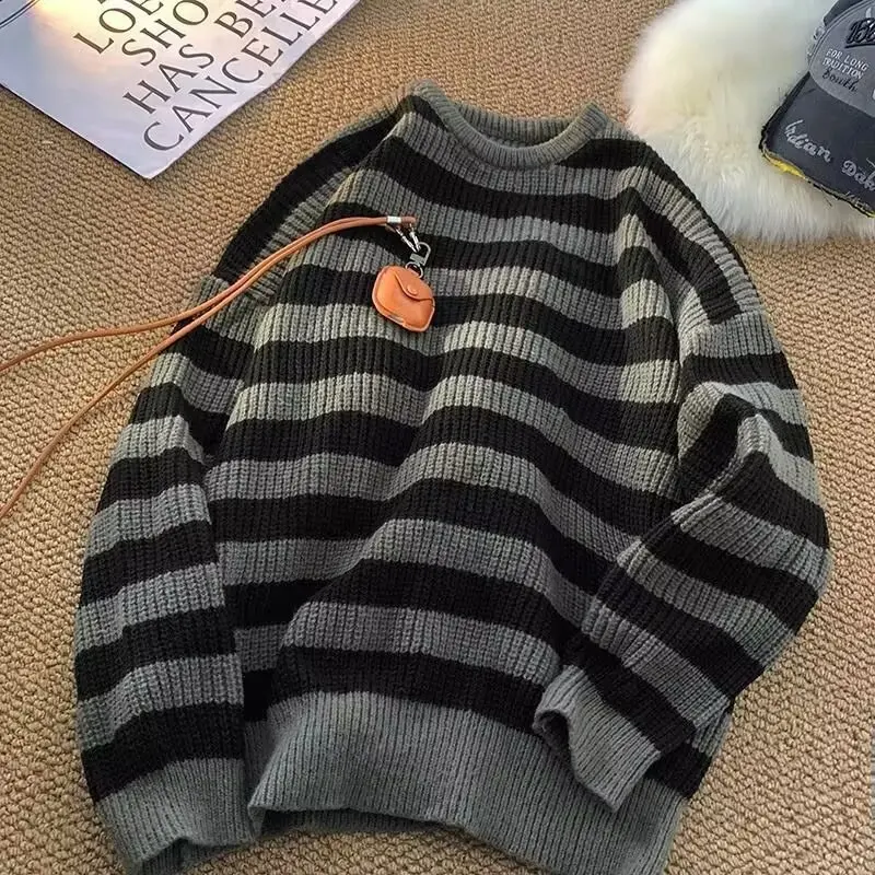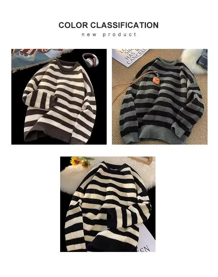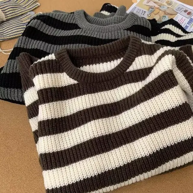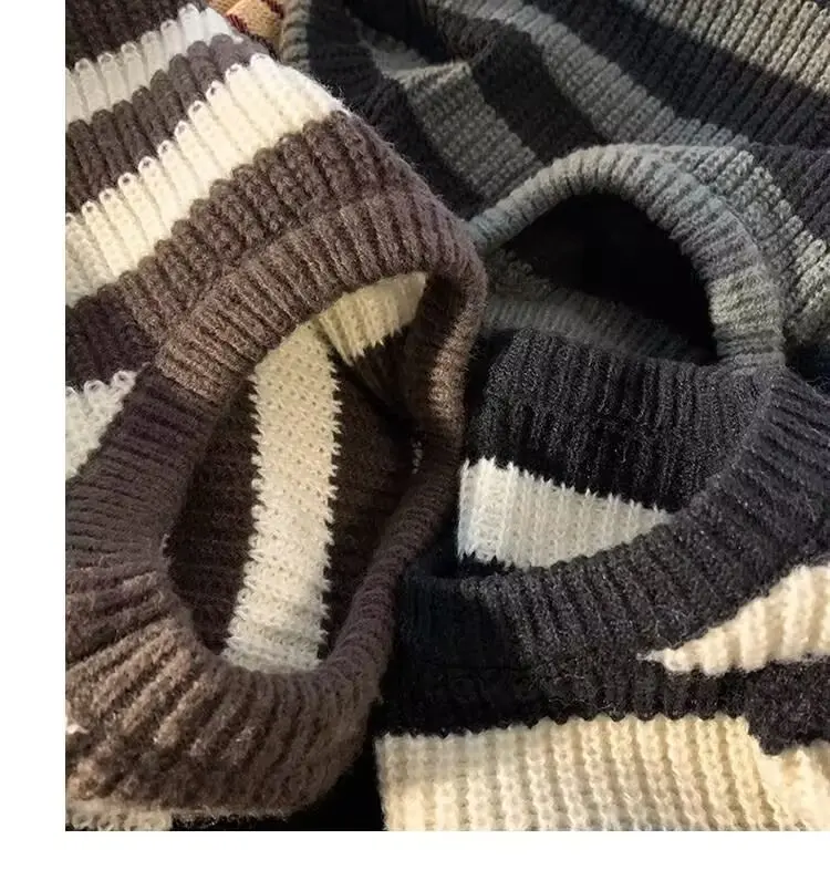 The sweater’s trendy striped pattern and American lazy style make it a fashionable choice for the winter season.