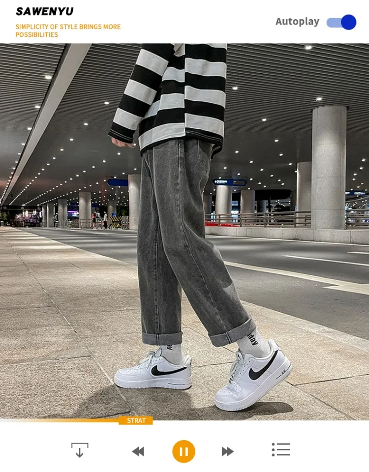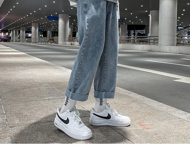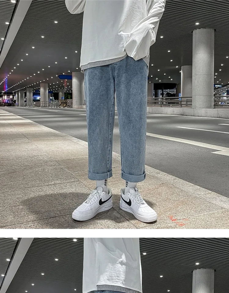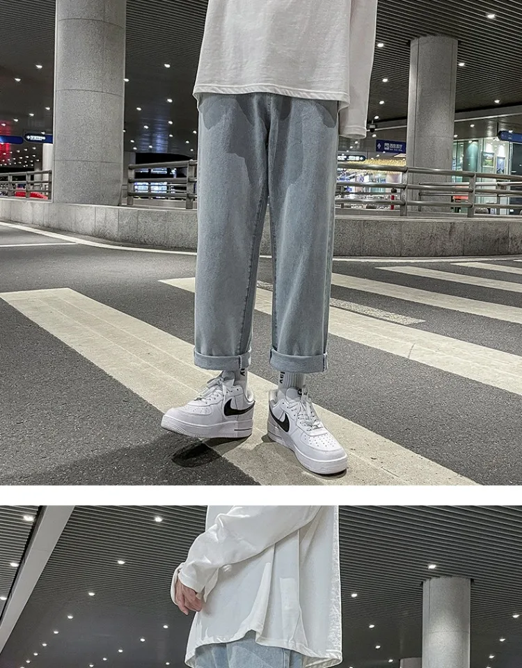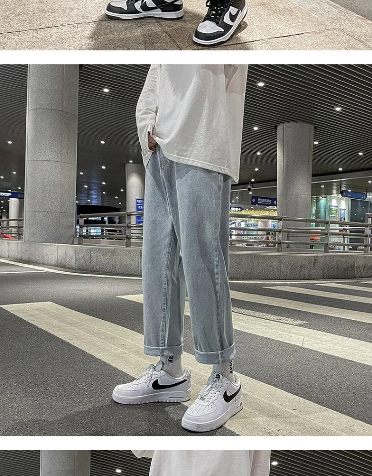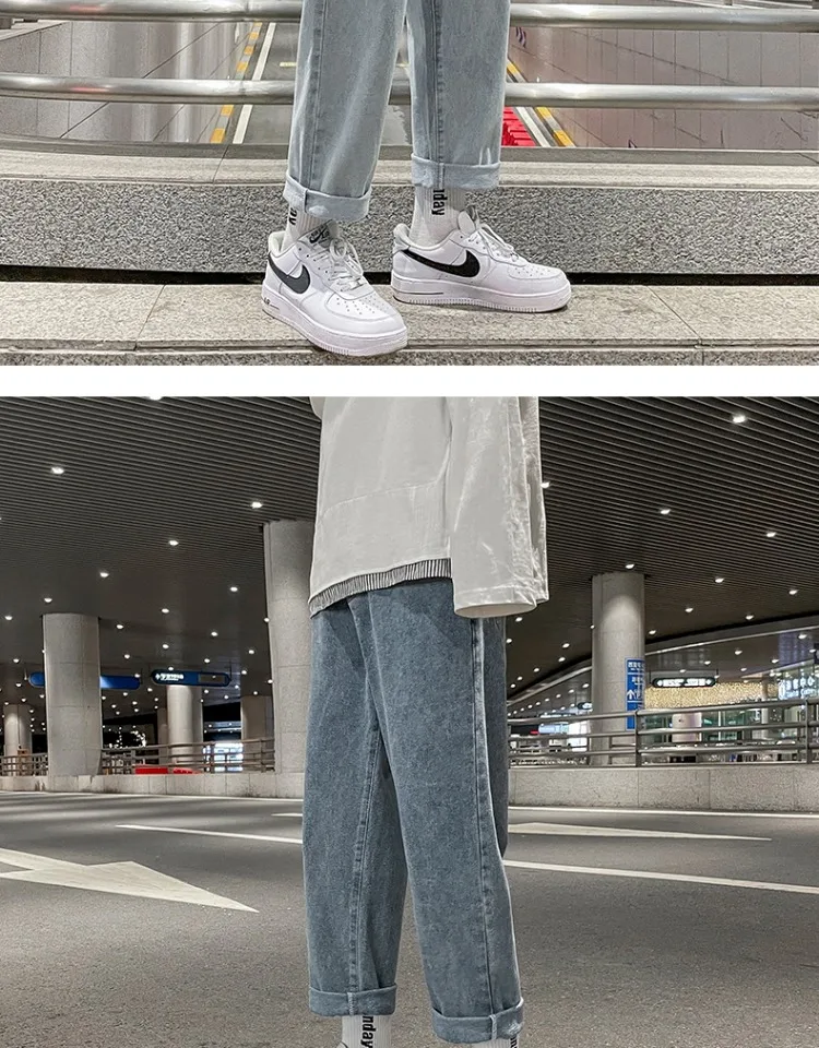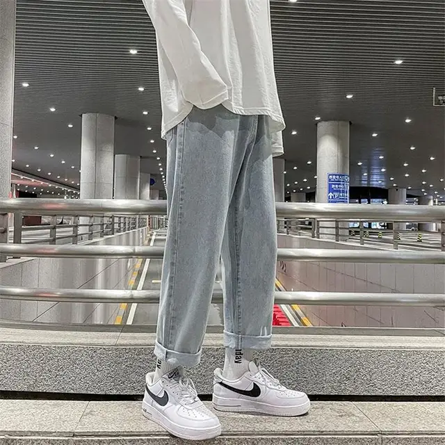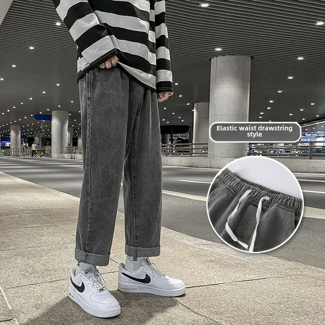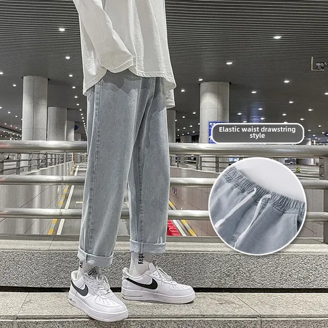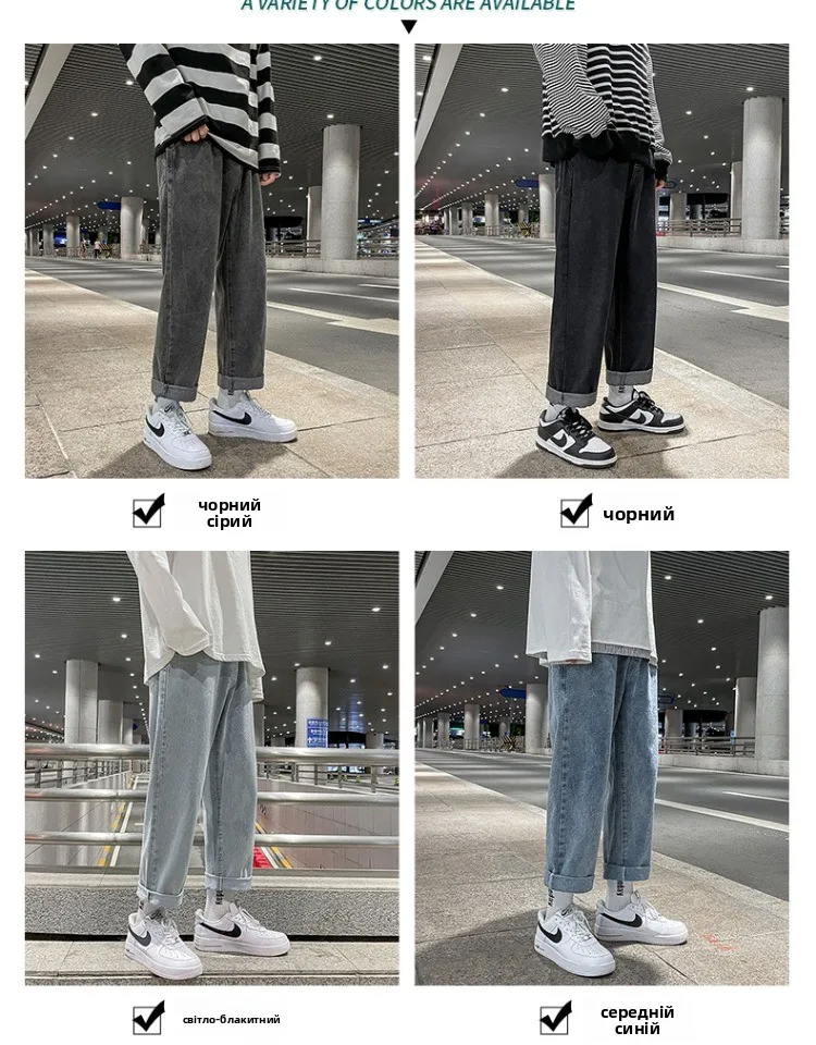 These jeans feature a trendy straight-leg cut and a low-to-medium waist, perfect for the youth’s fashion-forward style.